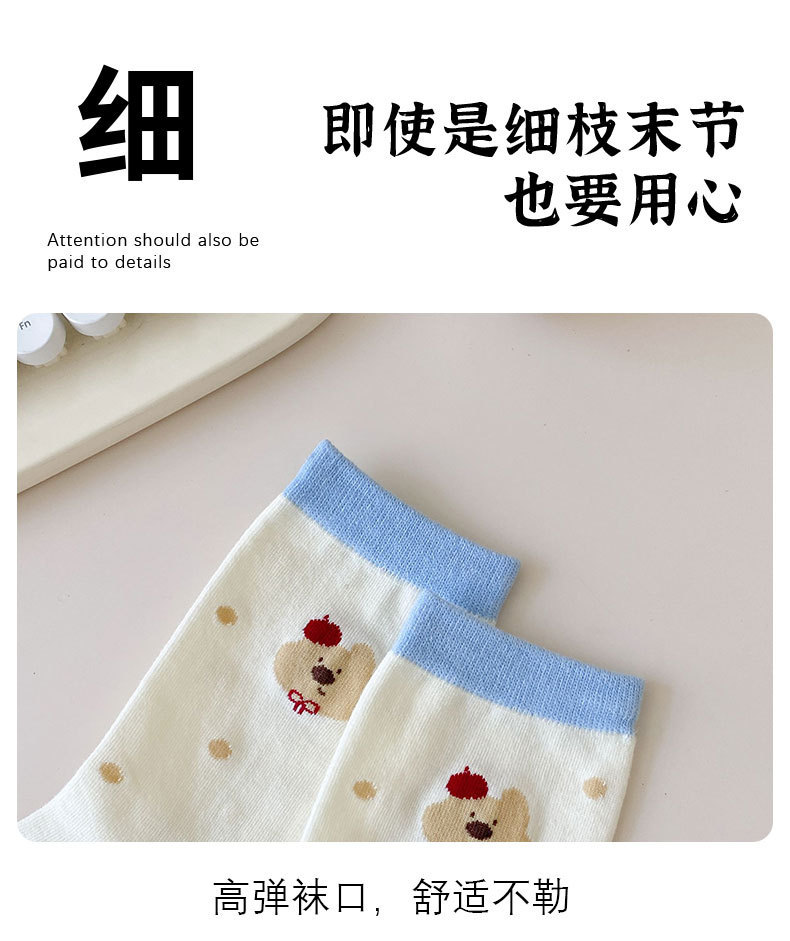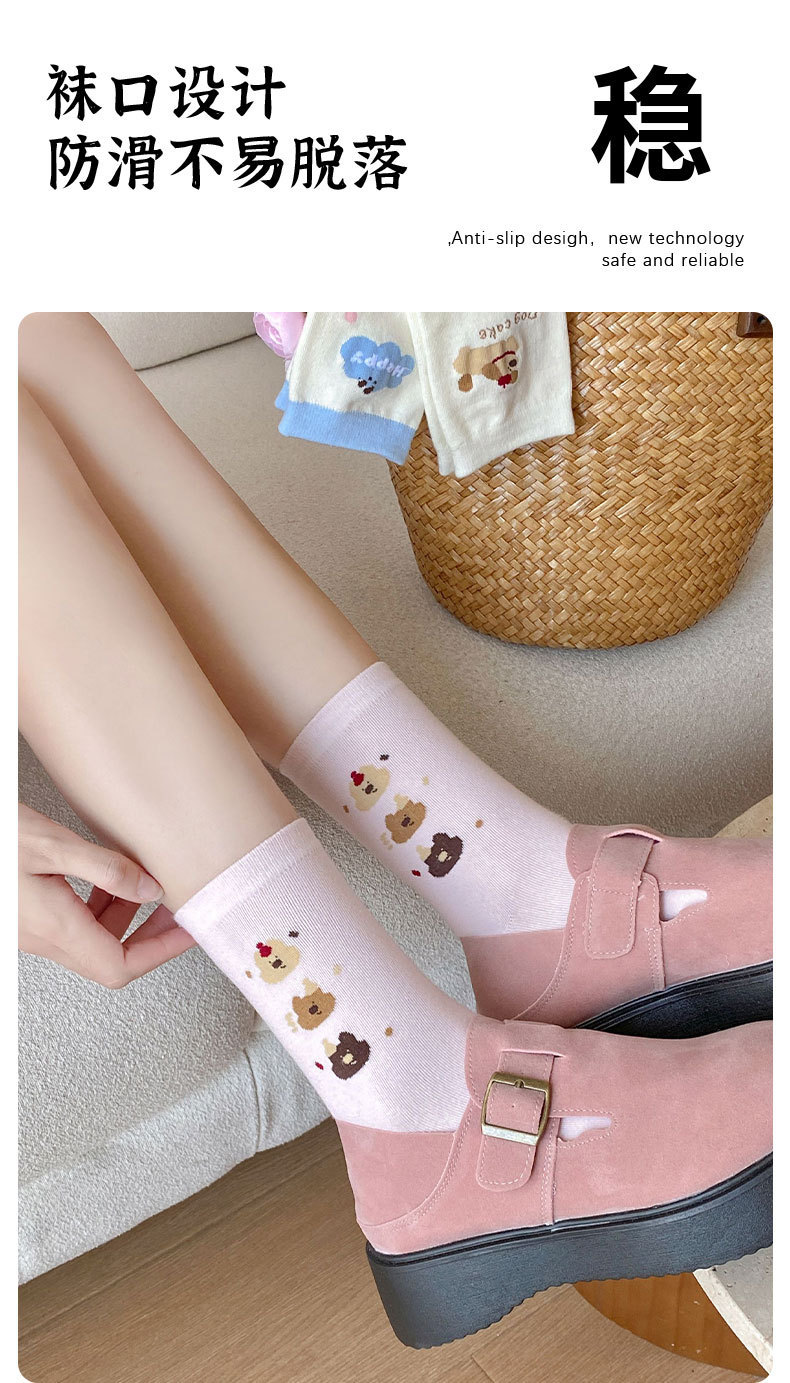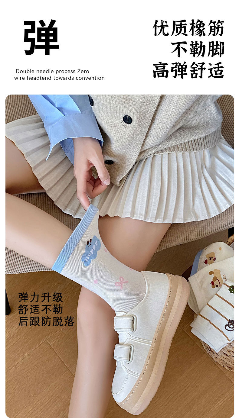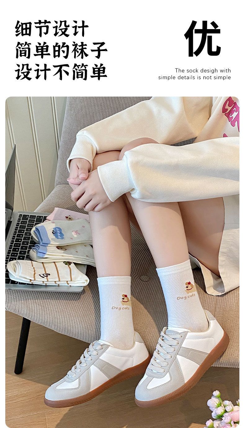 여성용 귀여운 강아지 리본 순면 중목 양말, 봄 여름용 흰색 면 소재, 대학 스타일 만화 여성 양말스토어 가기