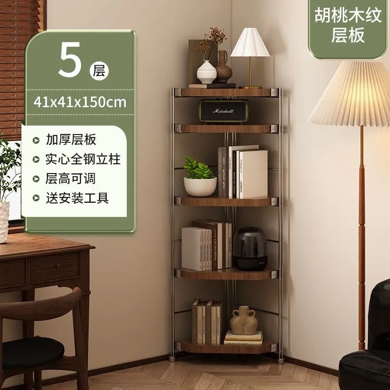 코너 삼각형 스토리지 랙 거실 코너 스토리지 랙 다층 책장 철제 목재 디스플레이 랙 침실 주방 코너 캐비닛