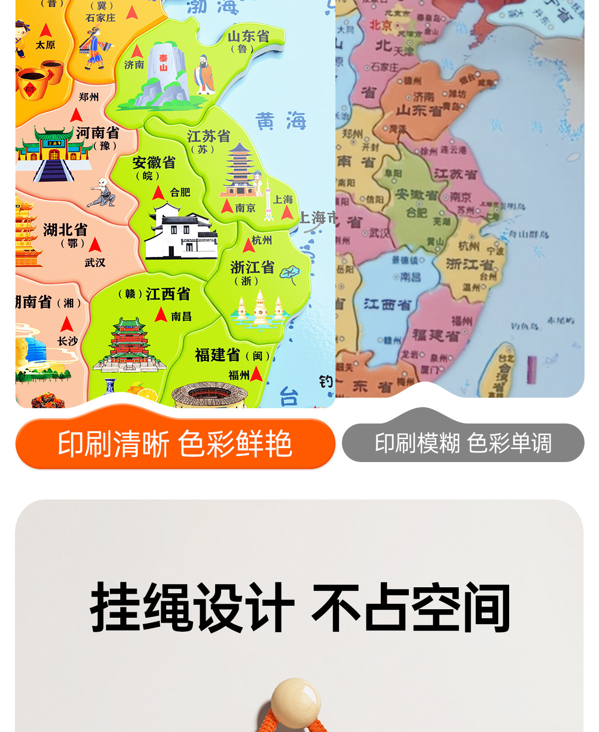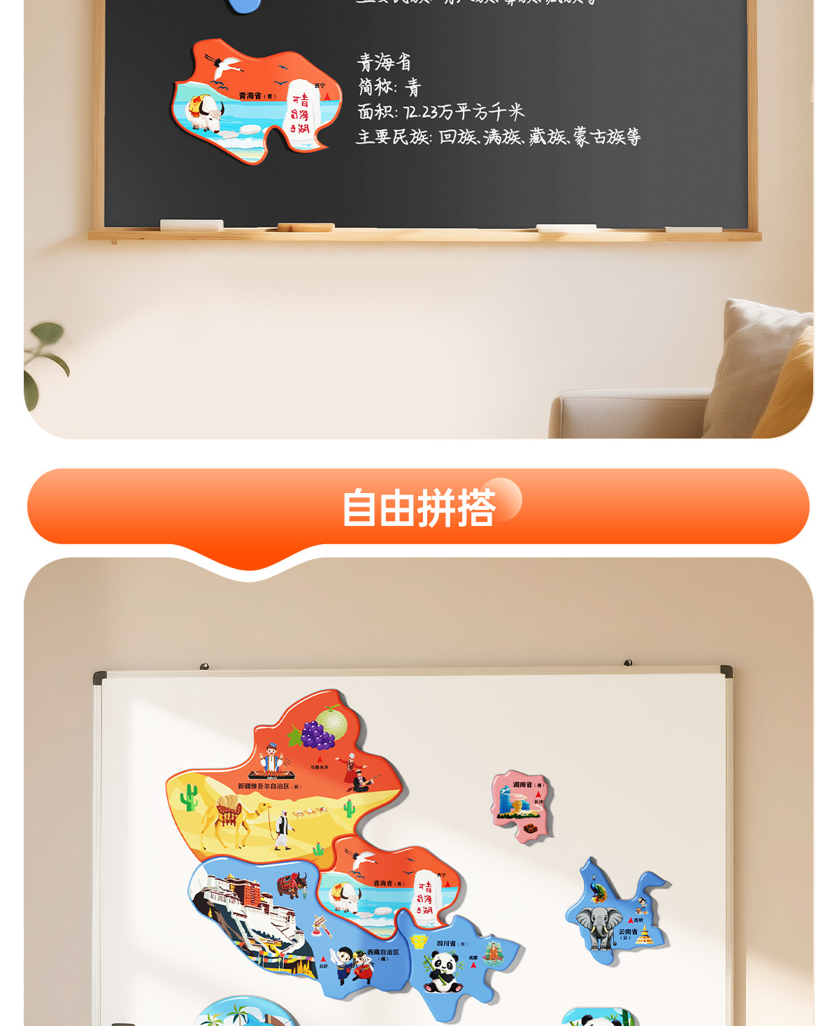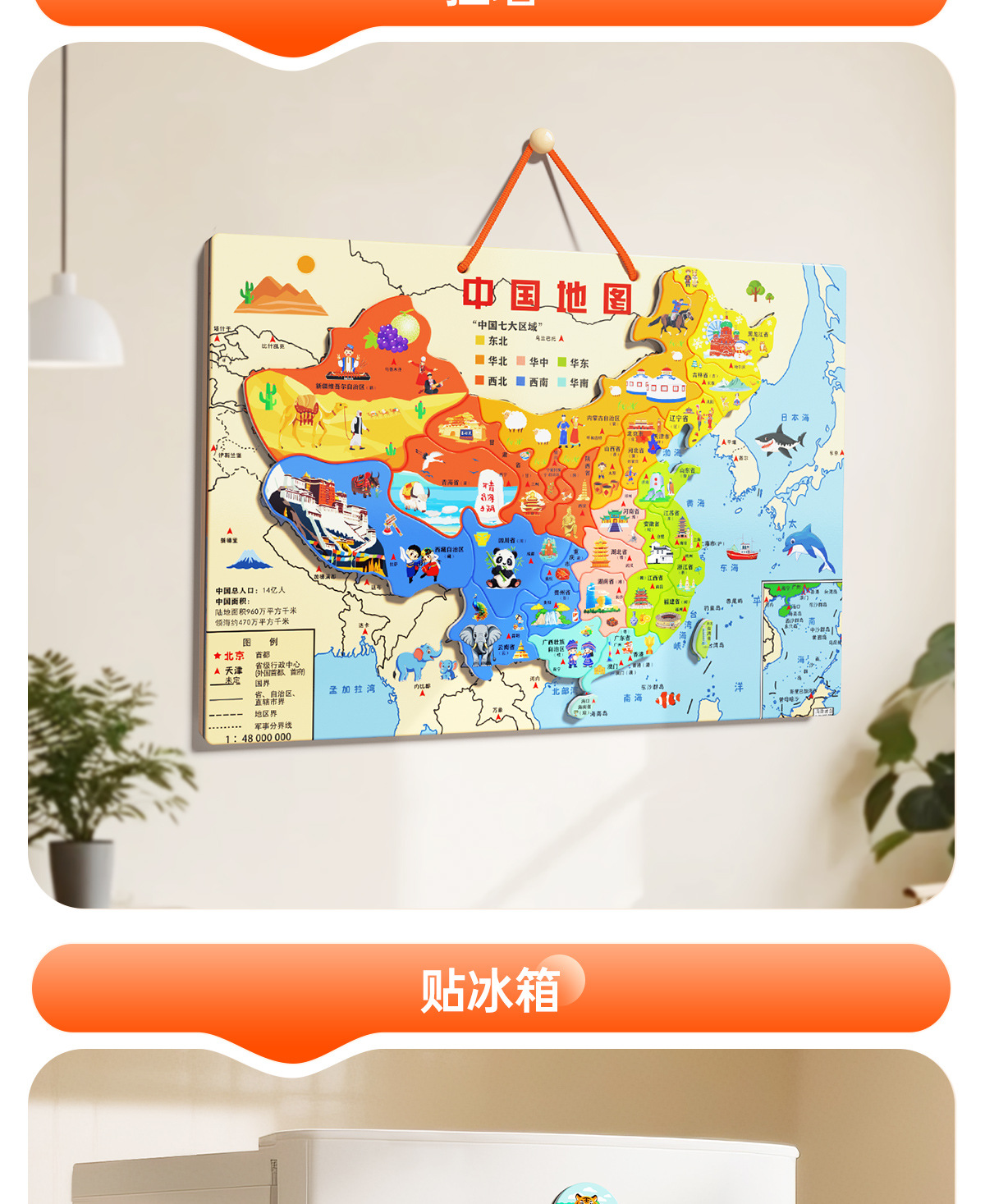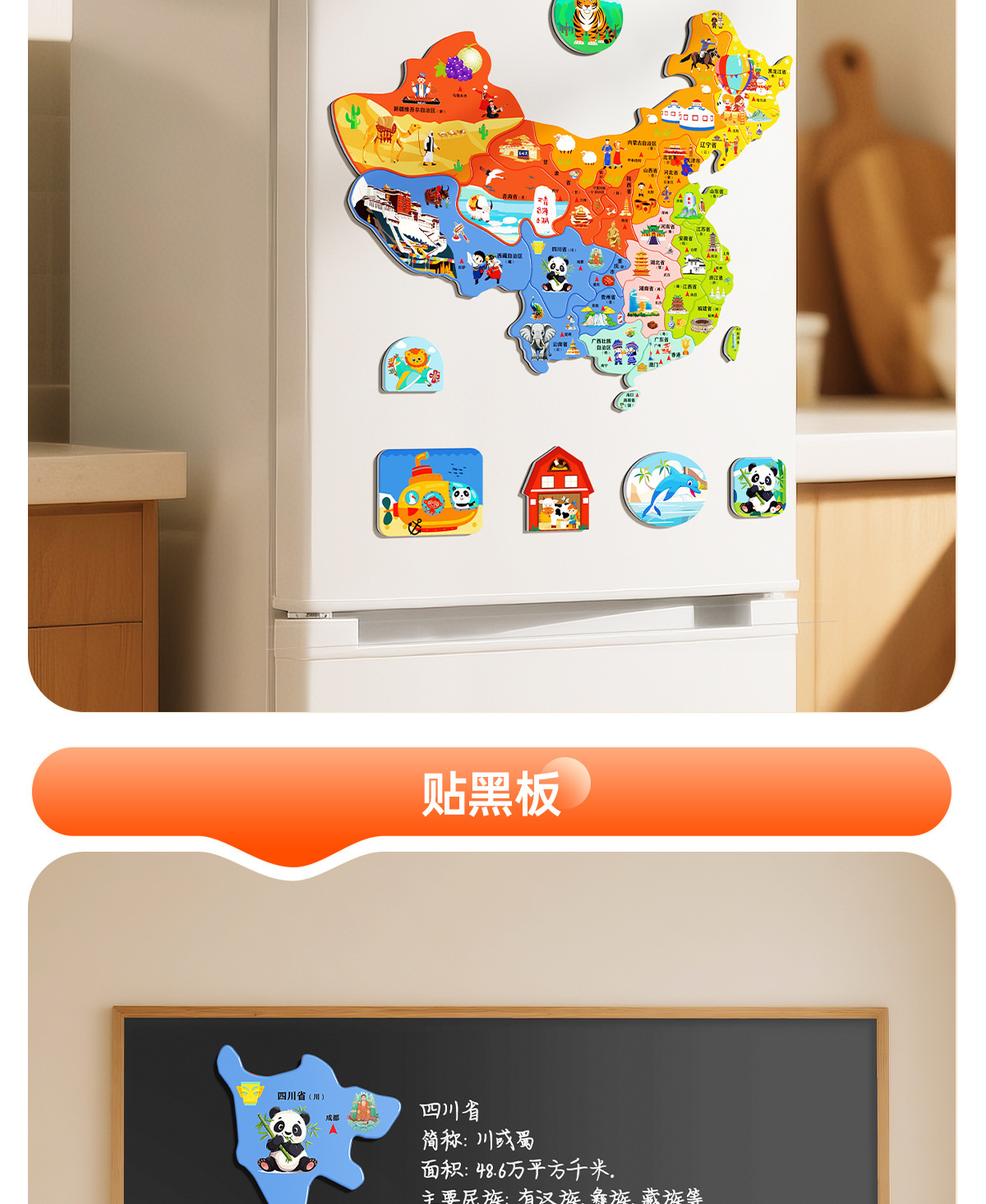중국 지도 자성 소재는 벽에 걸 수 있습니다. 초등학생 및 중학생을 위한 디자인 교육 장난감 자기 흡입 세계 퍼즐 지리스토어 가기
