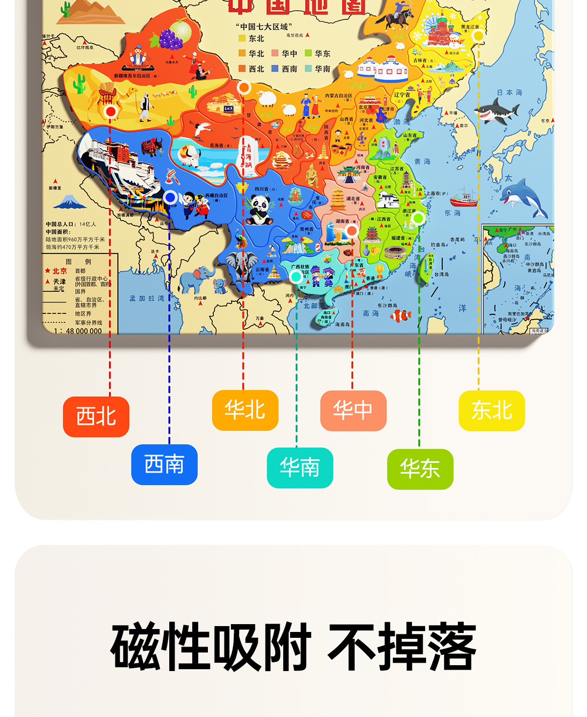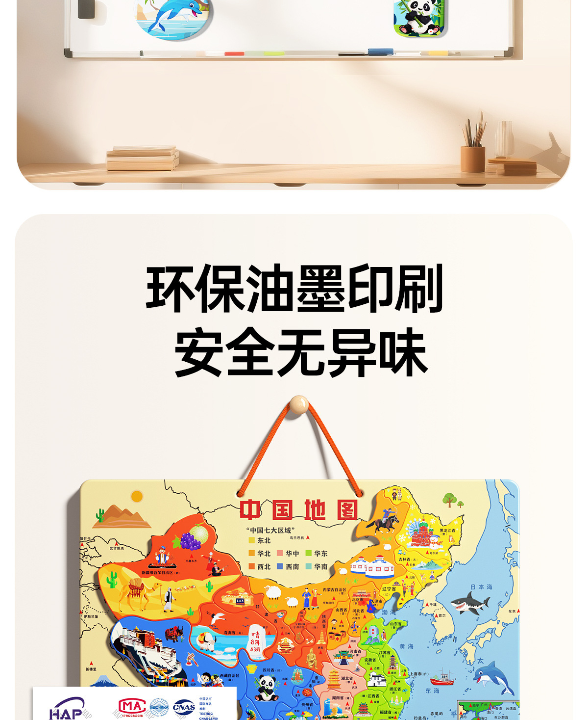 중국 지도 자성 소재는 벽에 걸 수 있습니다. 초등학생 및 중학생을 위한 디자인 교육 장난감 자기 흡입 세계 퍼즐 지리