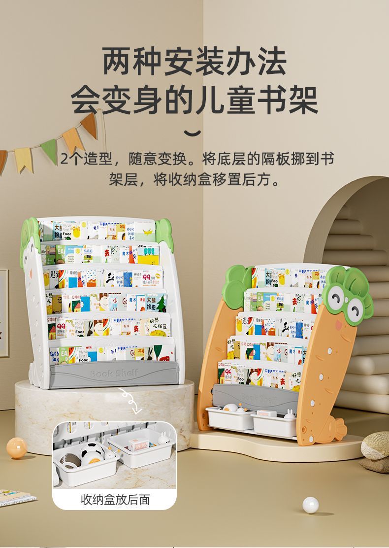 어린이 책장 수납 선반 아기 그림책 선반 바닥 책장 수납 선반 장난감 수납 캐비닛 소형 가정용스토어 가기