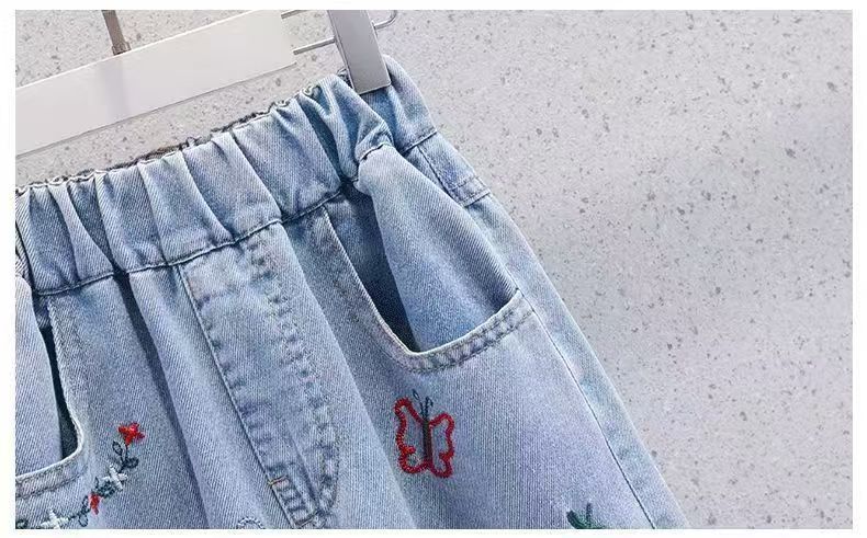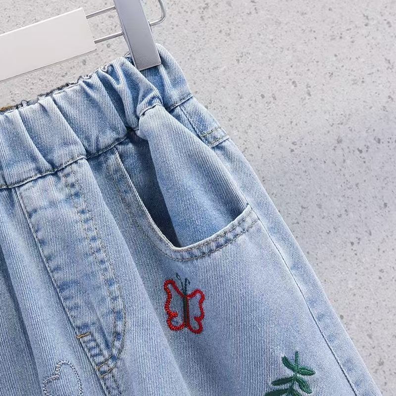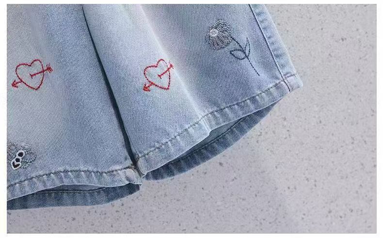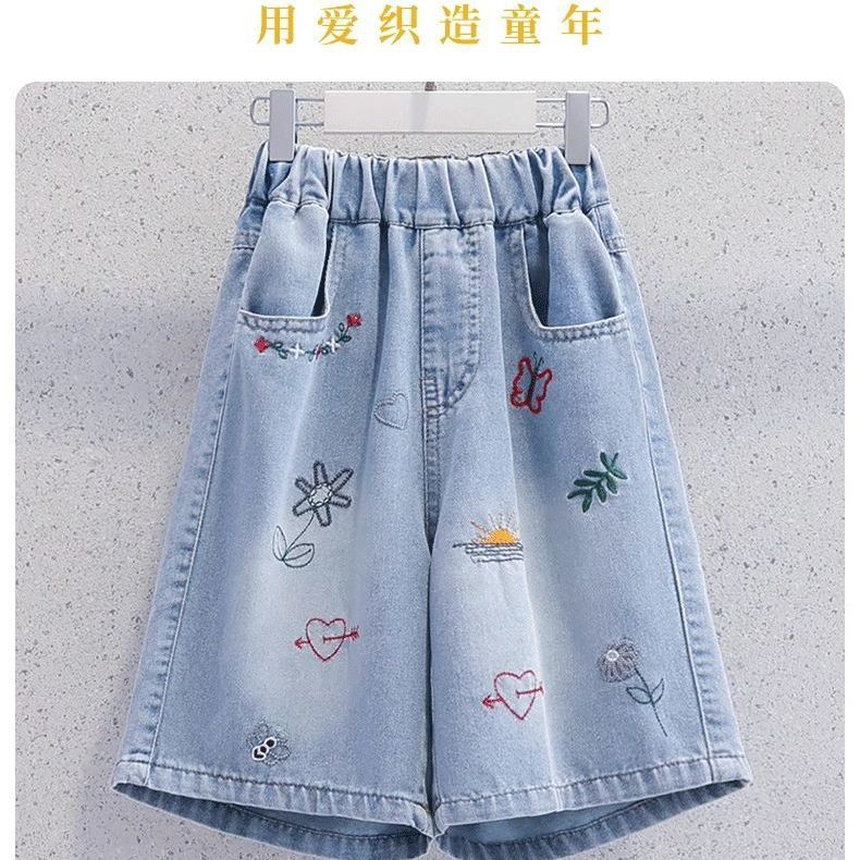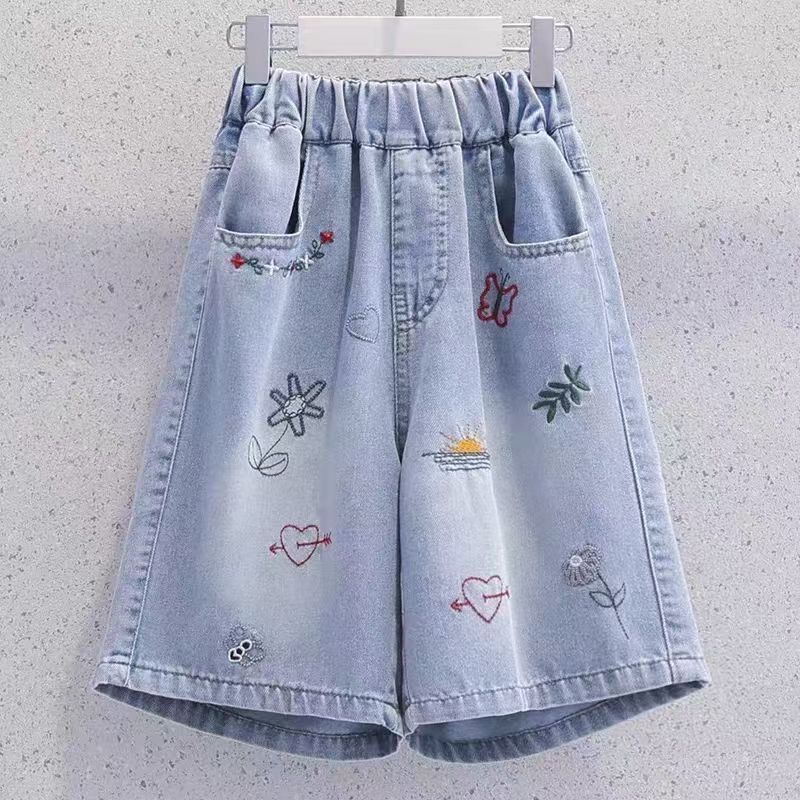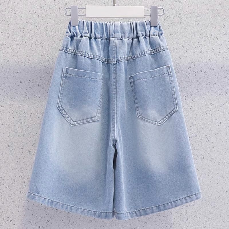Zhongda 여아 여름 얇은 무릎 길이 데님 바지, 루즈하고 편안한 하이 웨이스트 바지, 패셔너블하고 다재다능한 반바지스토어 가기