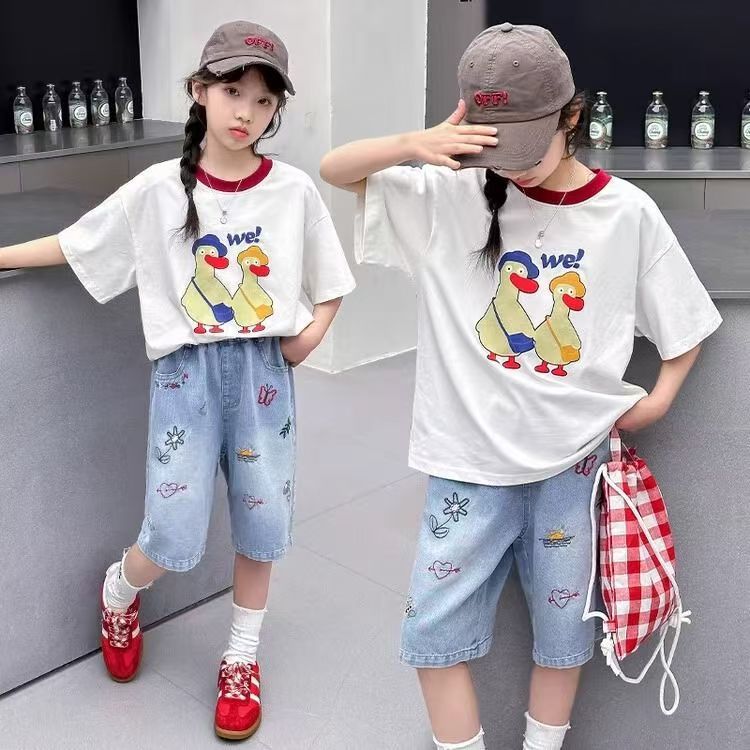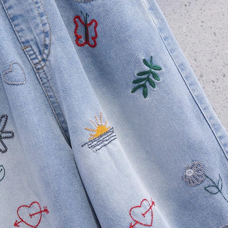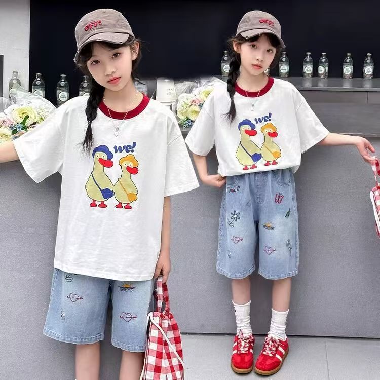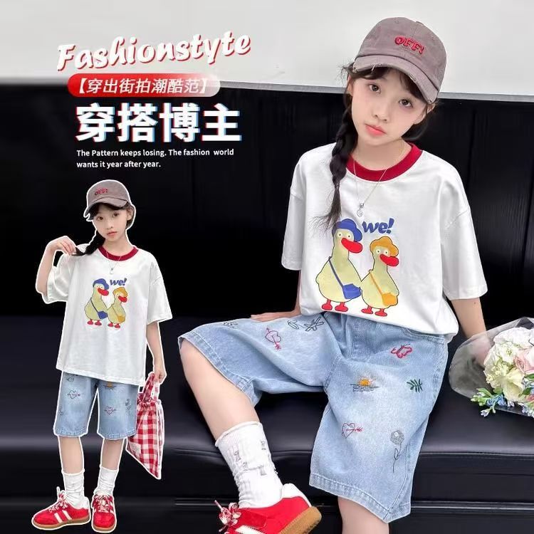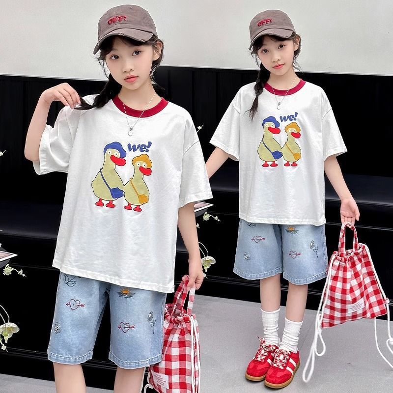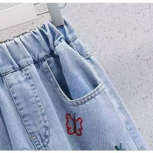 Zhongda 여아 여름 얇은 무릎 길이 데님 바지, 루즈하고 편안한 하이 웨이스트 바지, 패셔너블하고 다재다능한 반바지스토어 가기