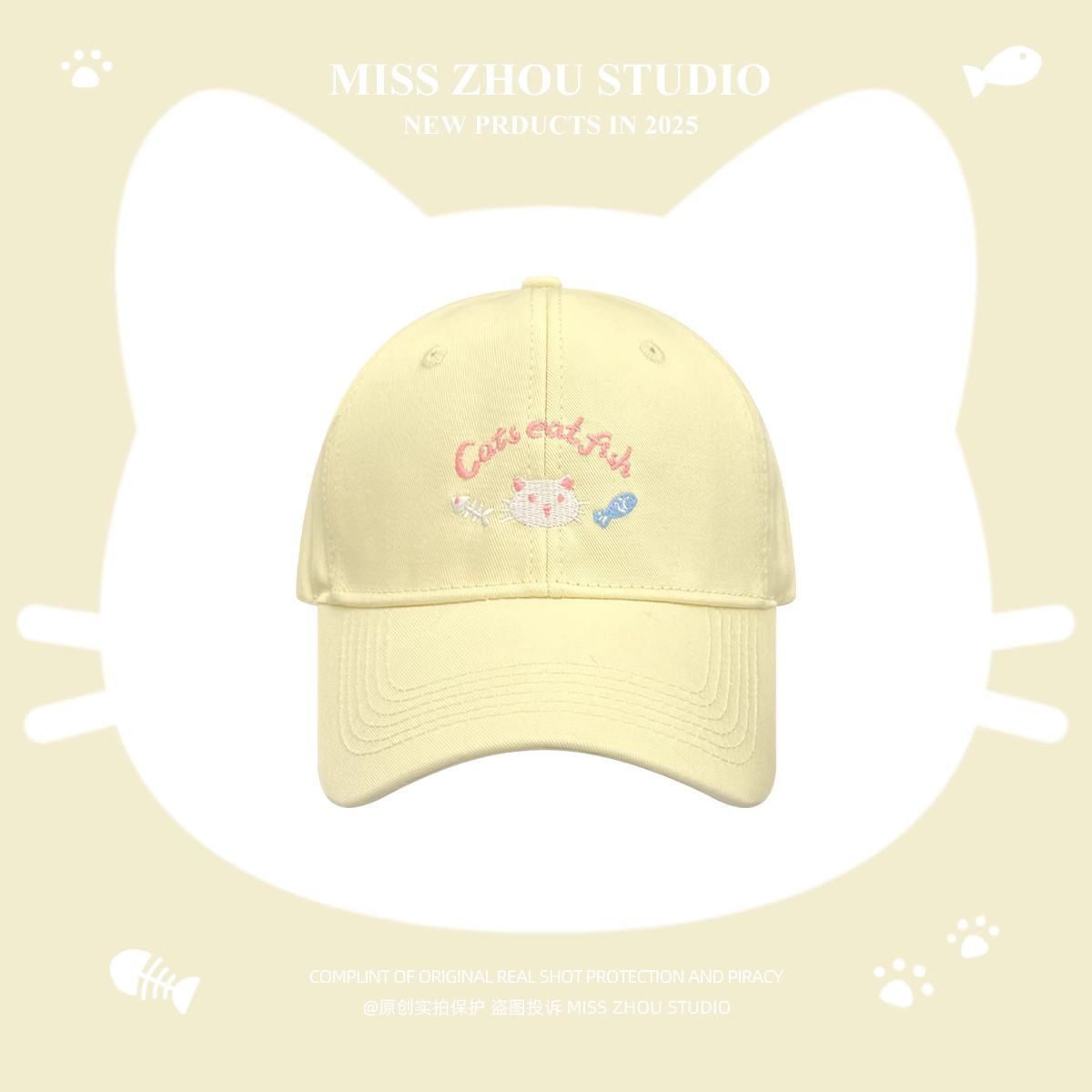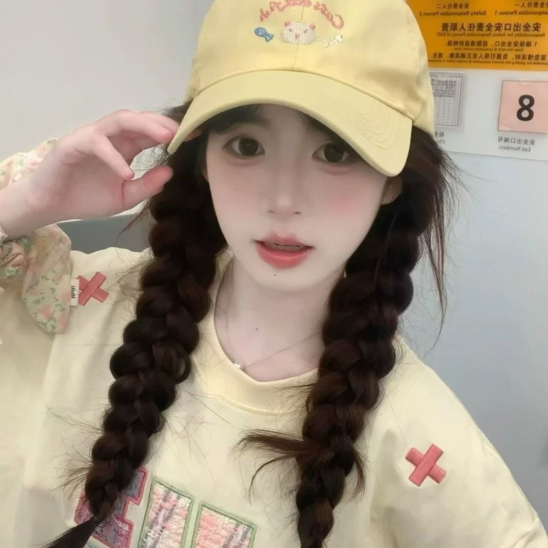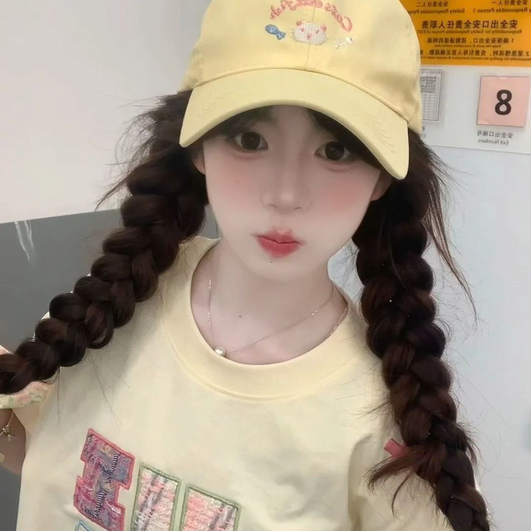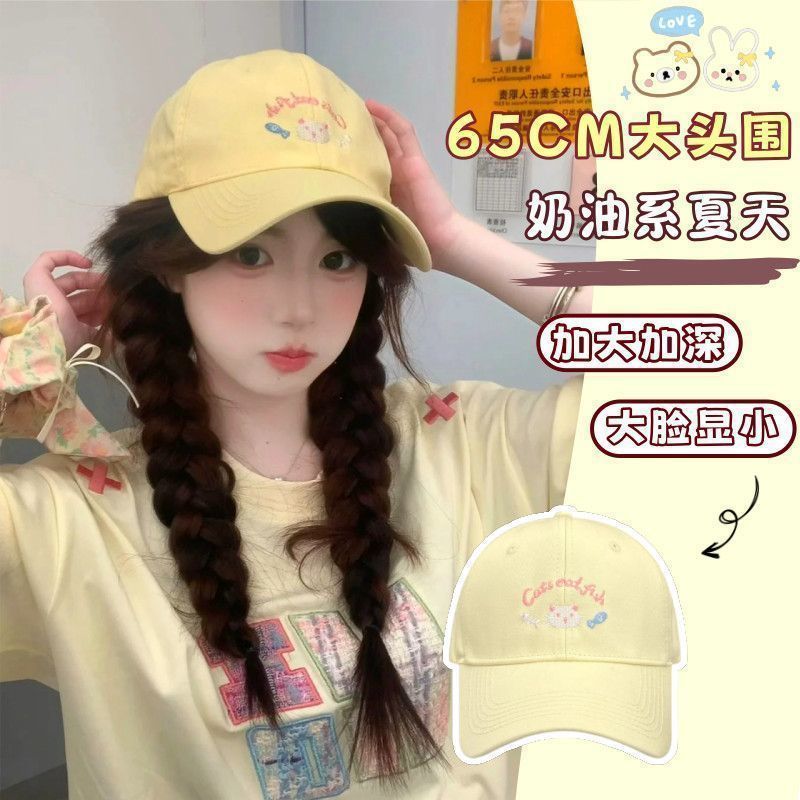 봄 여름 여성용 귀여운 새끼 고양이 자수 야구 모자, 큰 머리 둘레, 챙이 넓고 얼굴이 보이는 작은 오리 모자, 한국식 다용도 모자스토어 가기