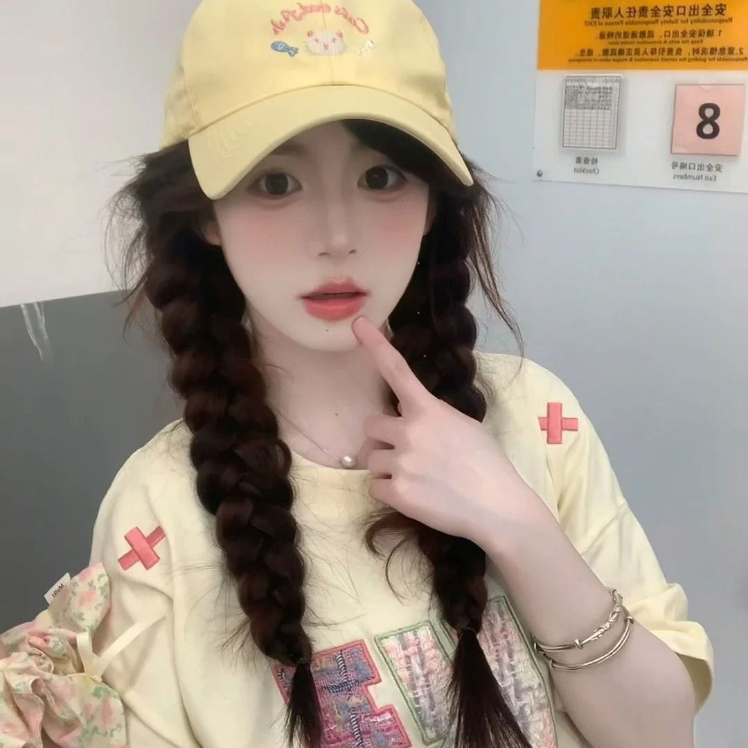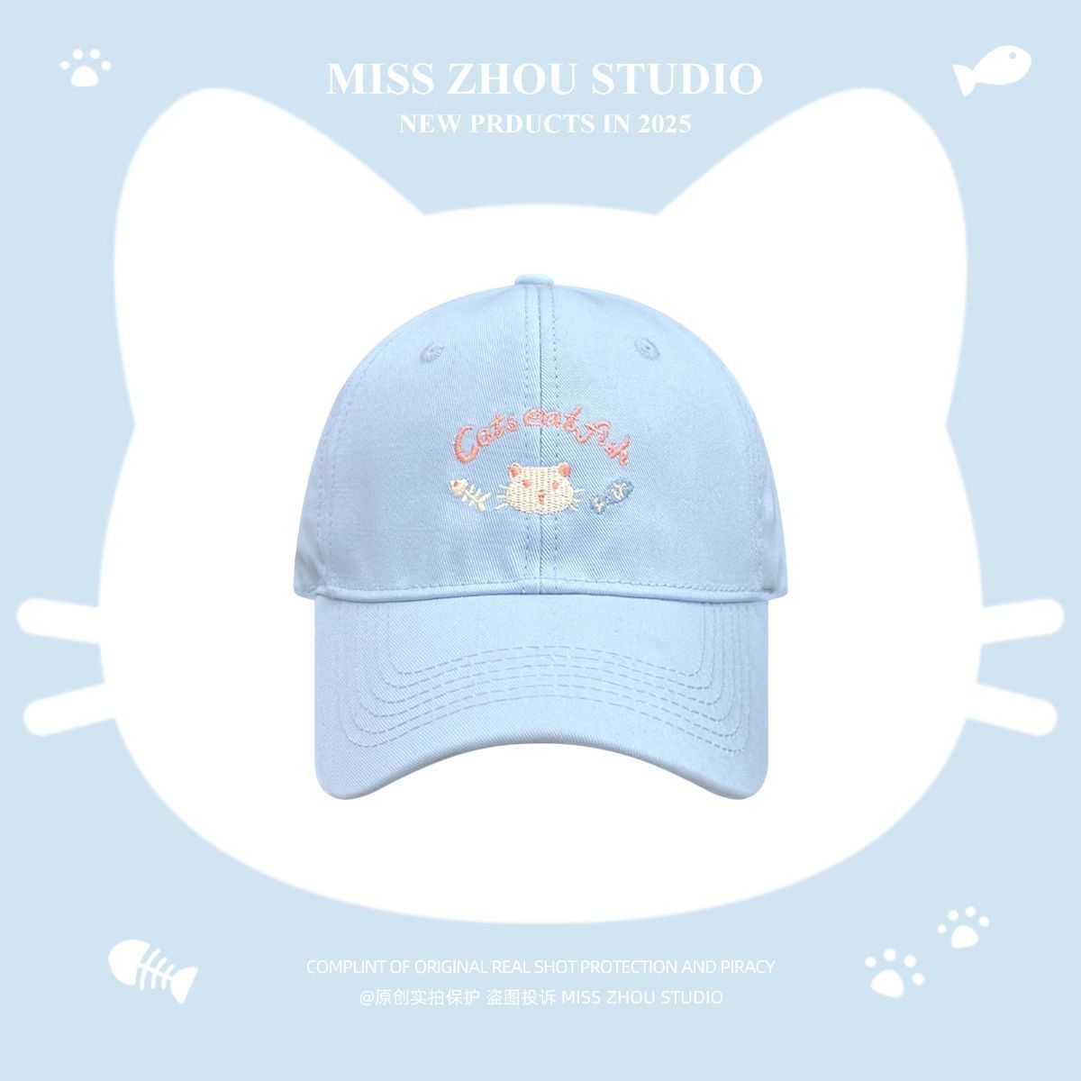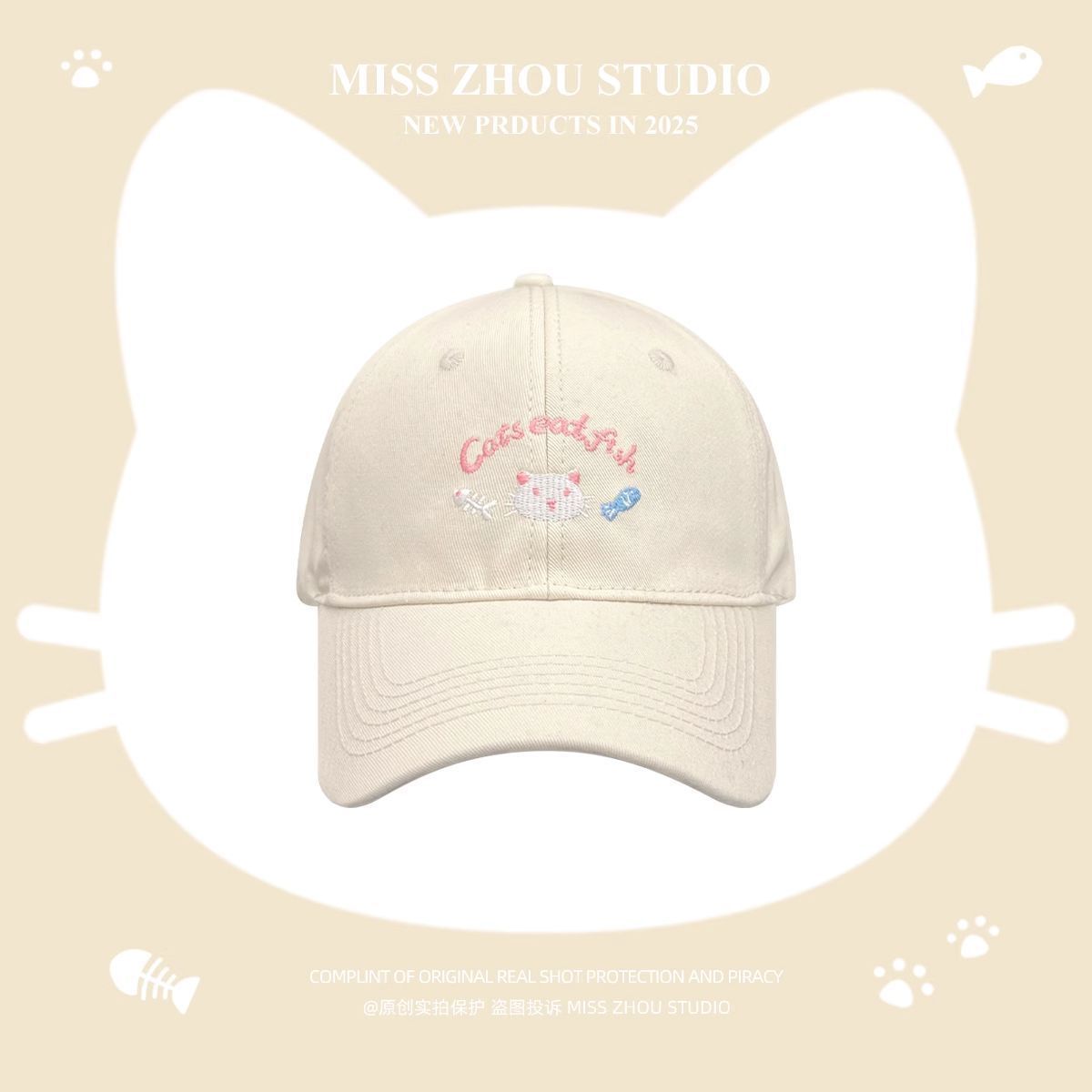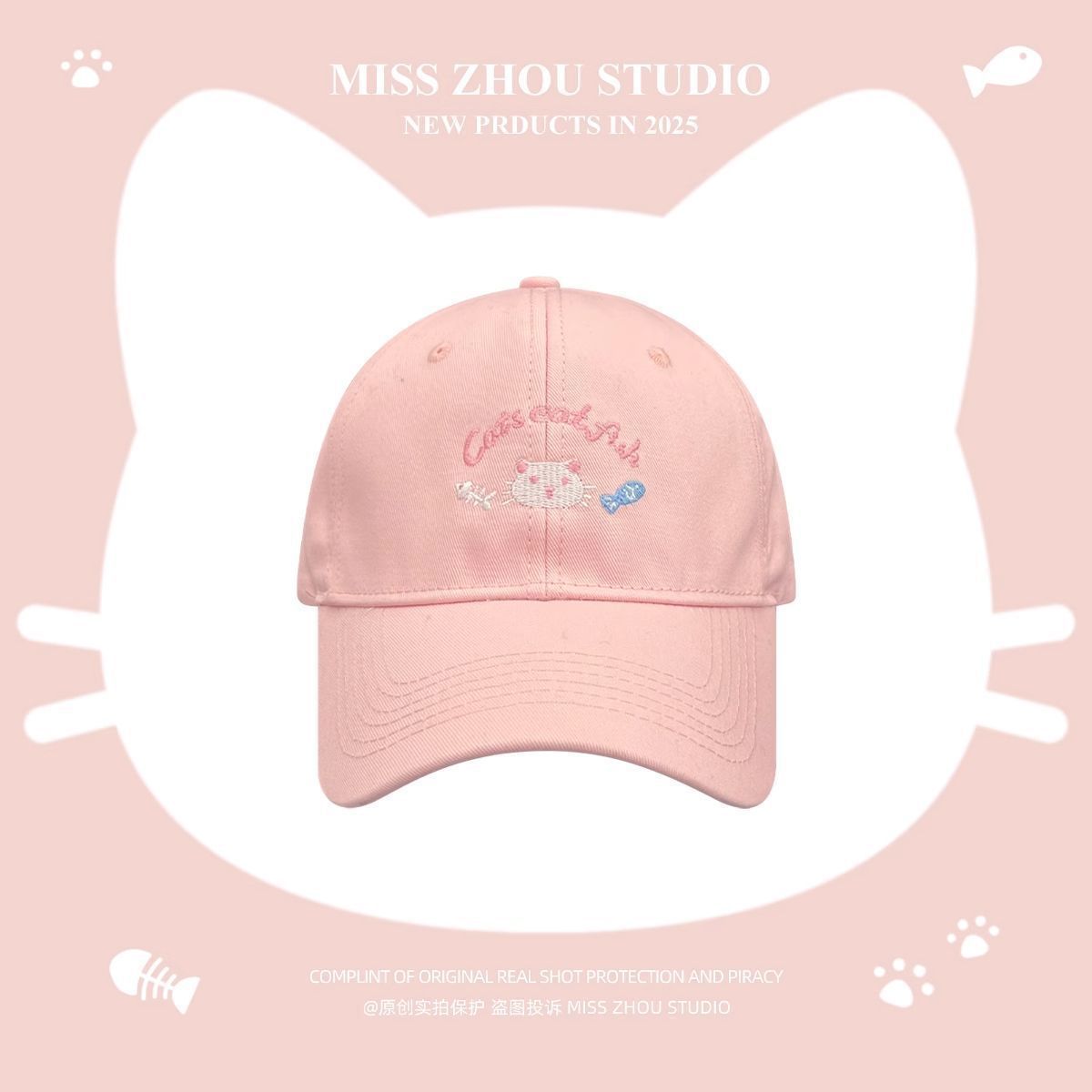 봄 여름 여성용 귀여운 새끼 고양이 자수 야구 모자, 큰 머리 둘레, 챙이 넓고 얼굴이 보이는 작은 오리 모자, 한국식 다용도 모자스토어 가기