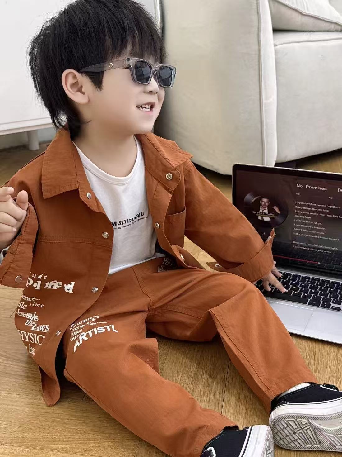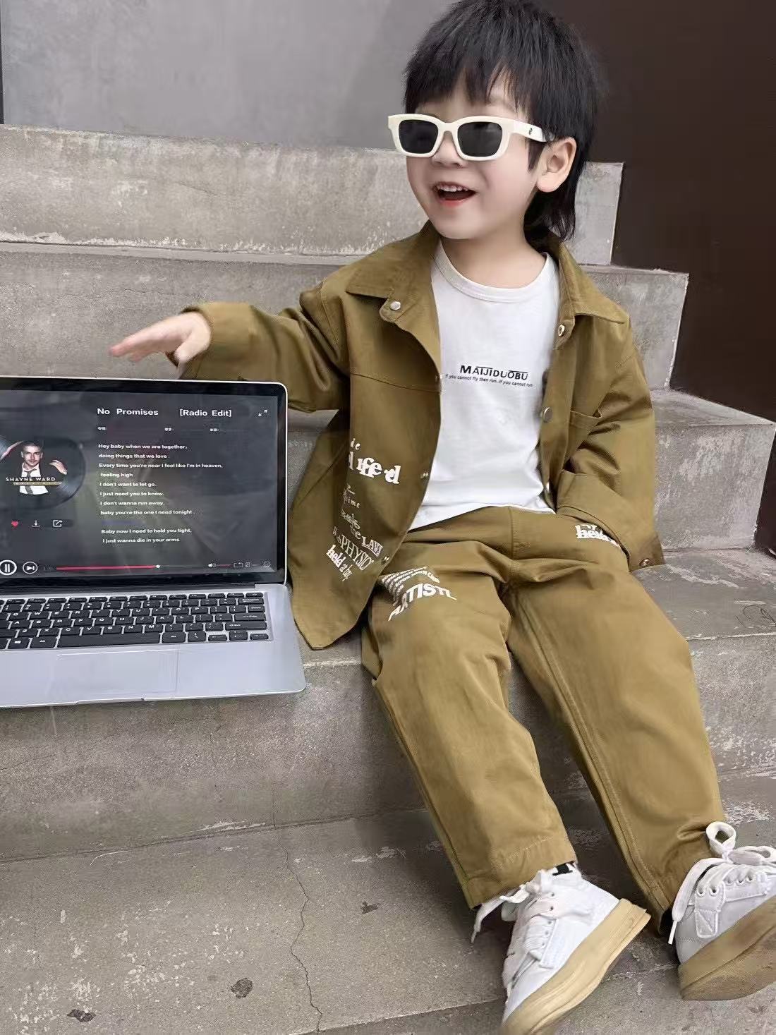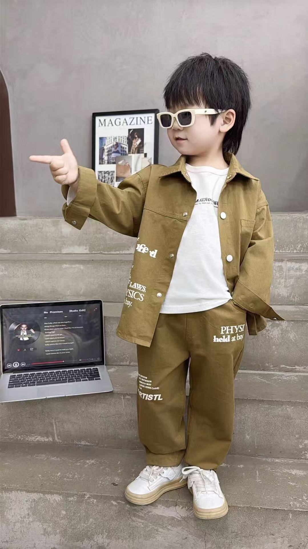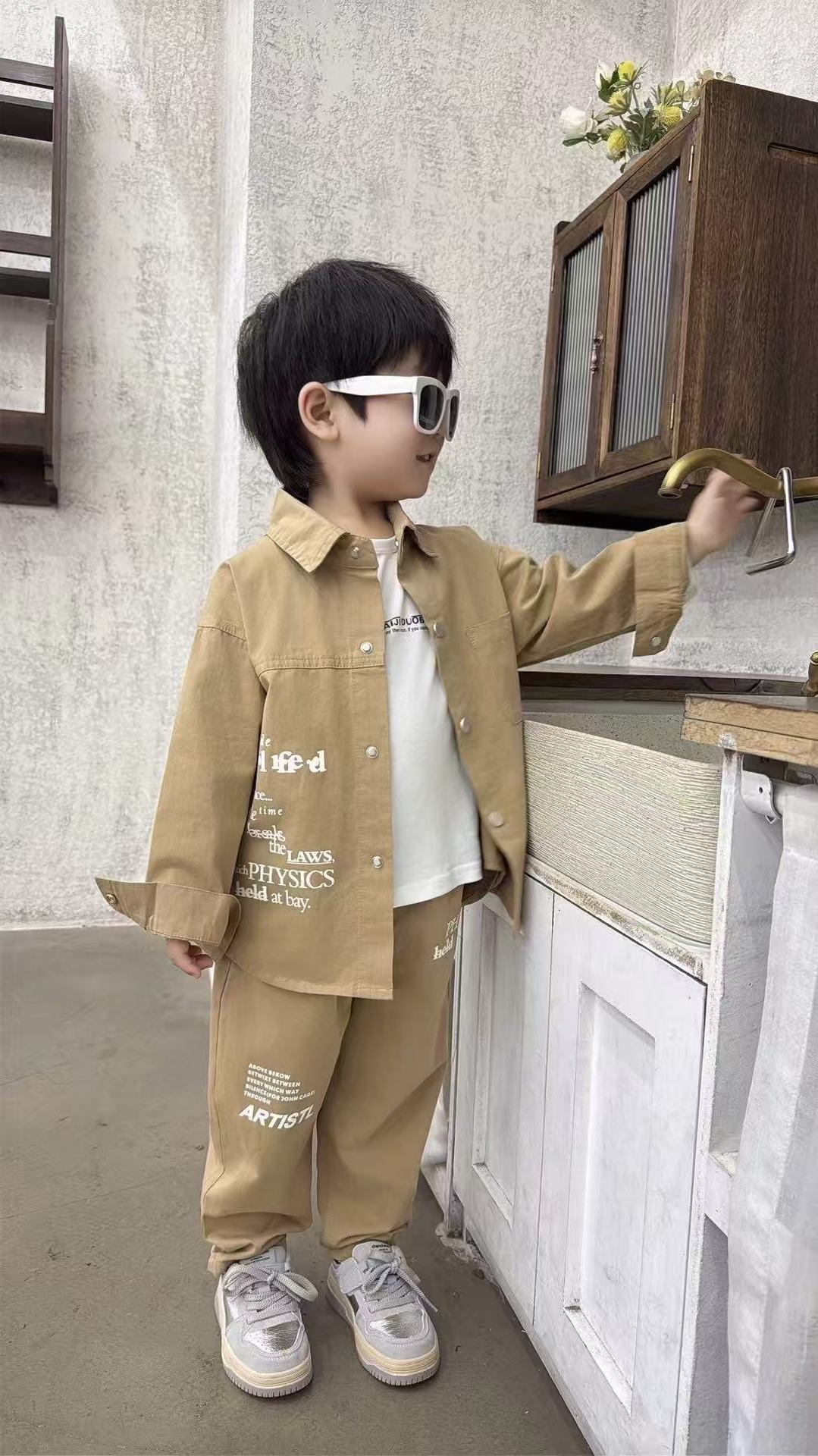 소년 셔츠 봄, 가을 2025 새로운 소년 봄, 가을 대외 무역 크로스 보더 새로운 슬림 투피스 세트 어린이를위한스토어 가기