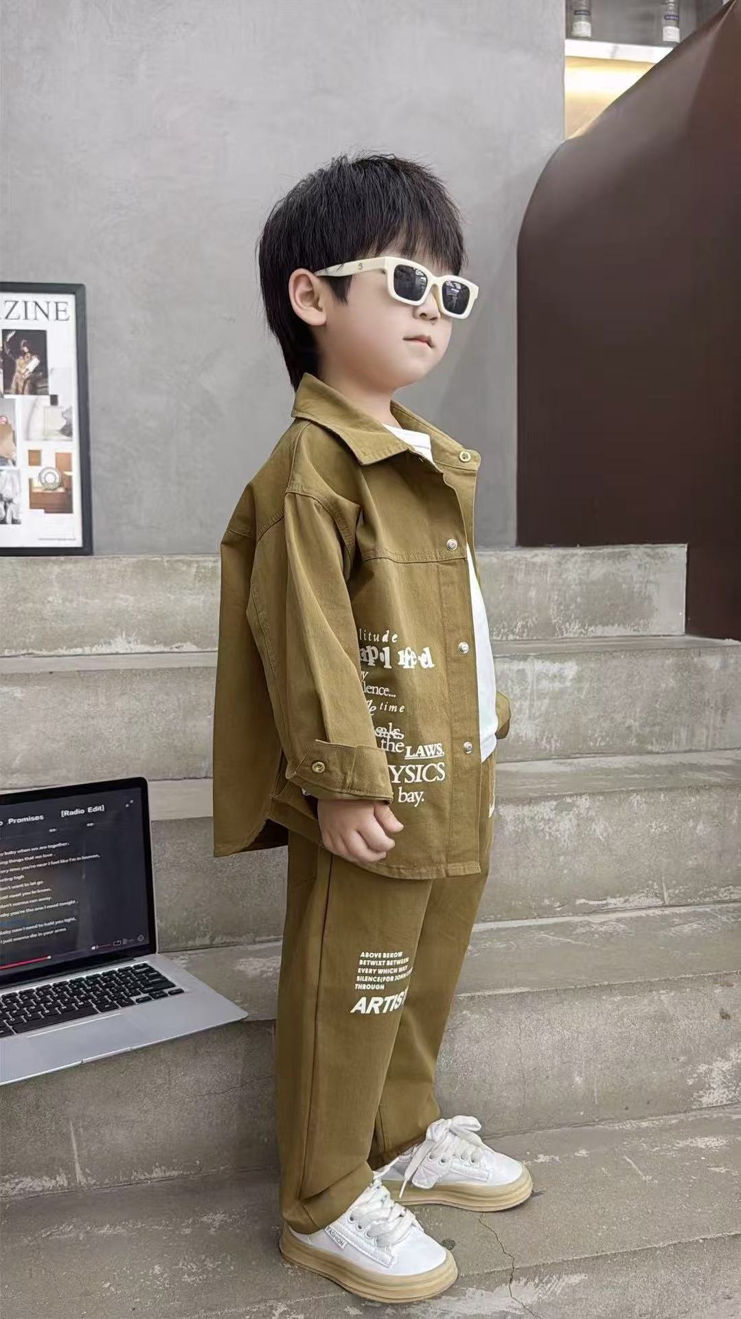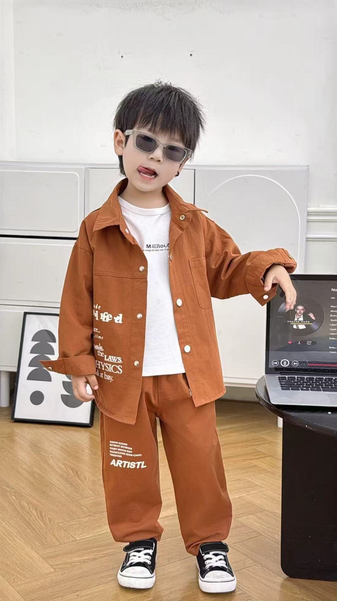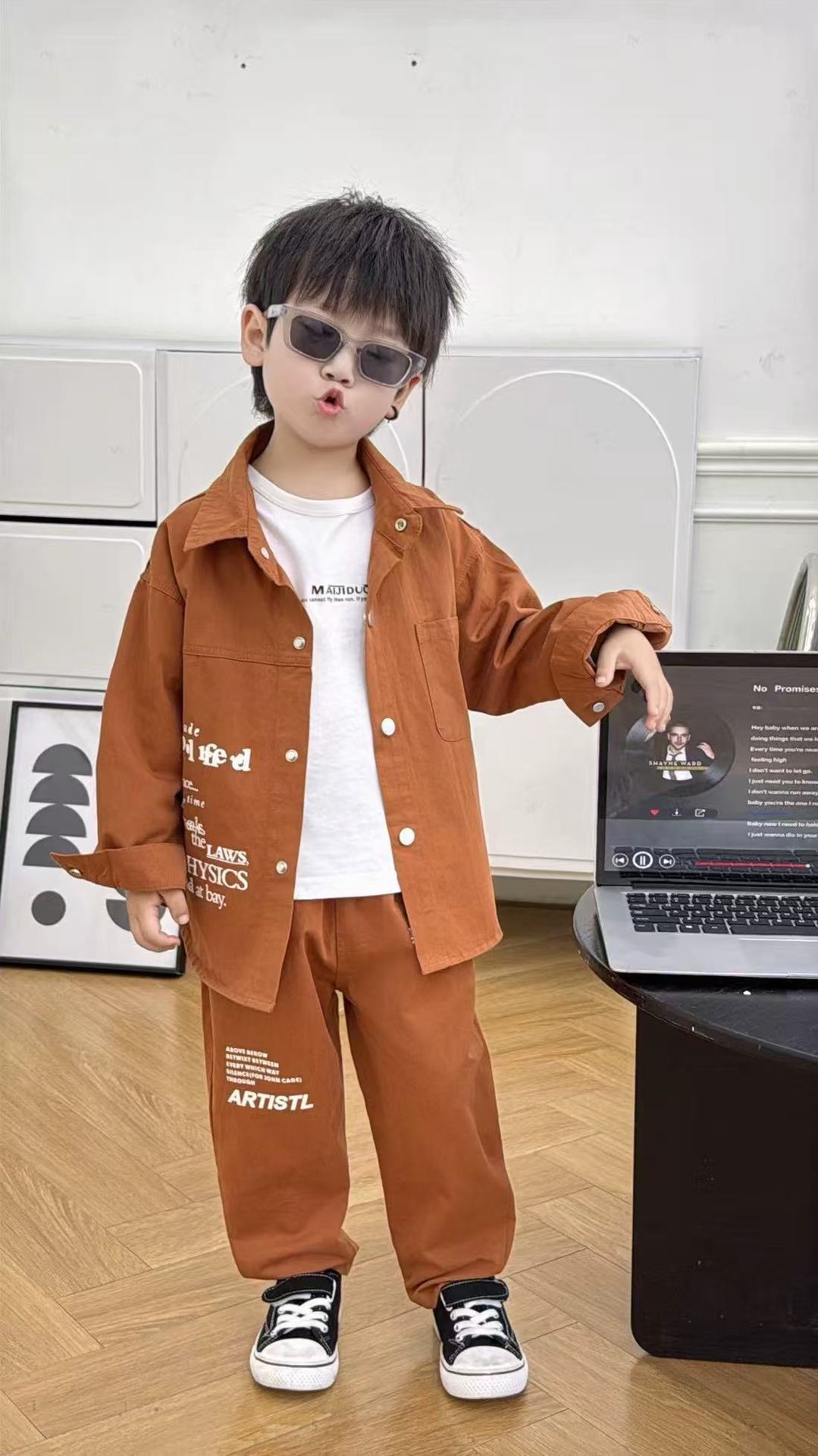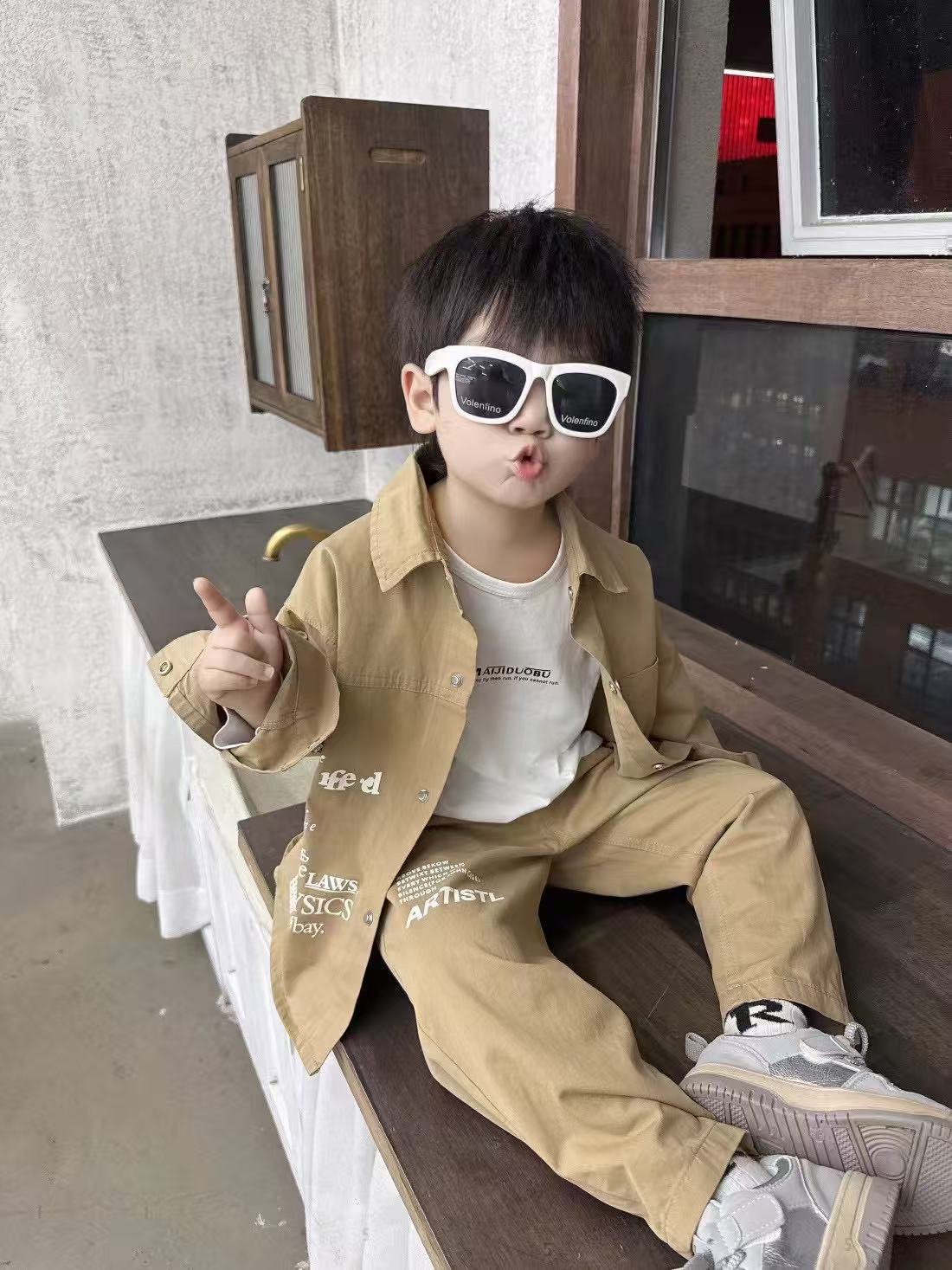 소년 셔츠 봄, 가을 2025 새로운 소년 봄, 가을 대외 무역 크로스 보더 새로운 슬림 투피스 세트 어린이를위한스토어 가기