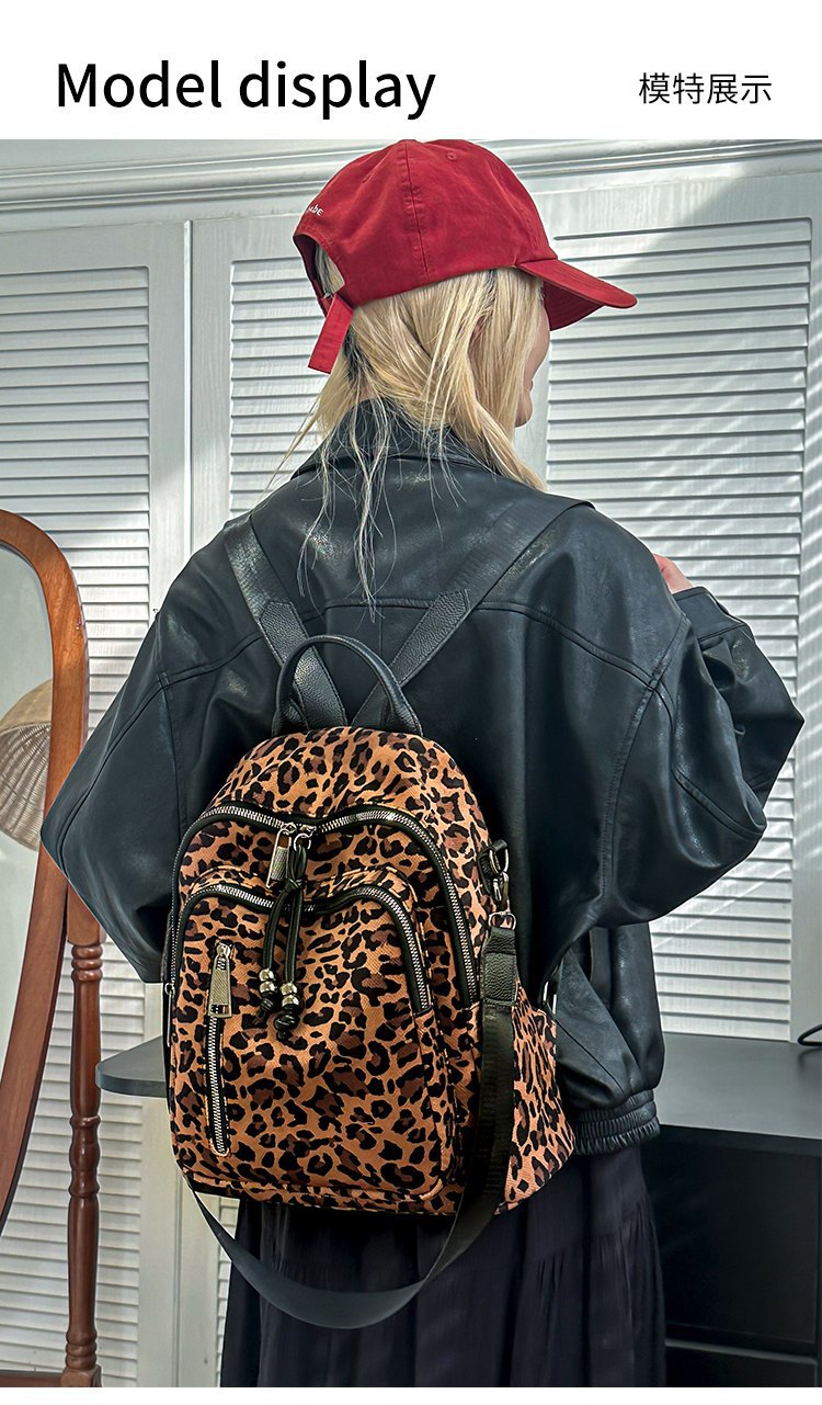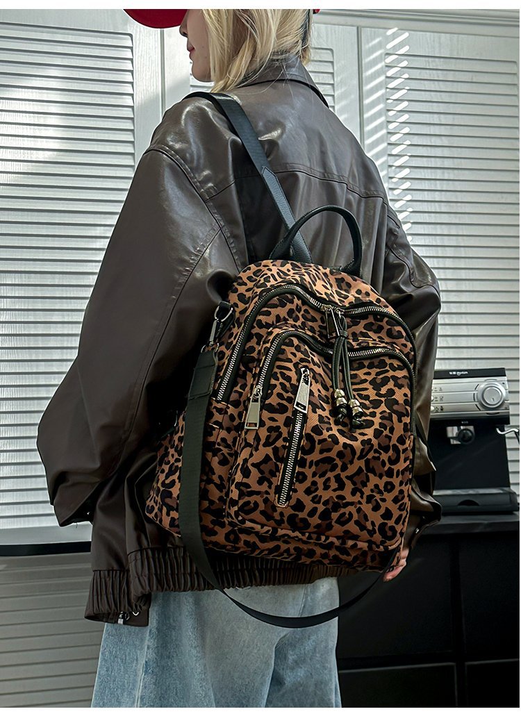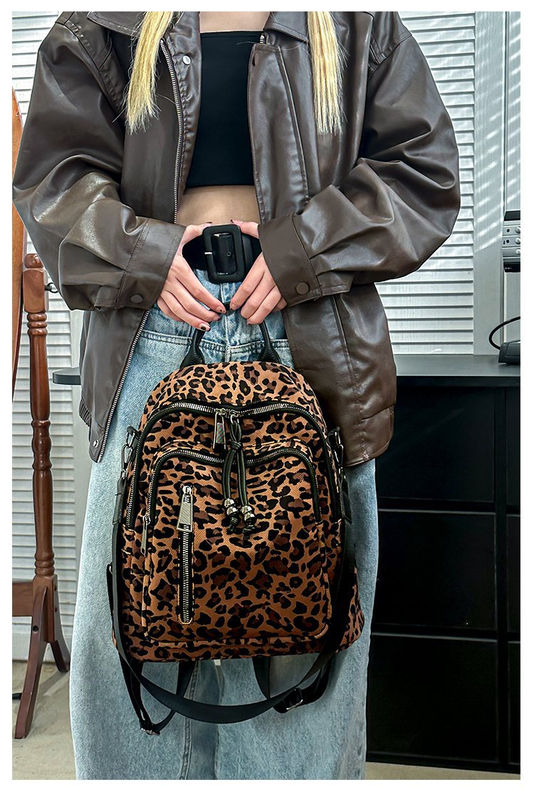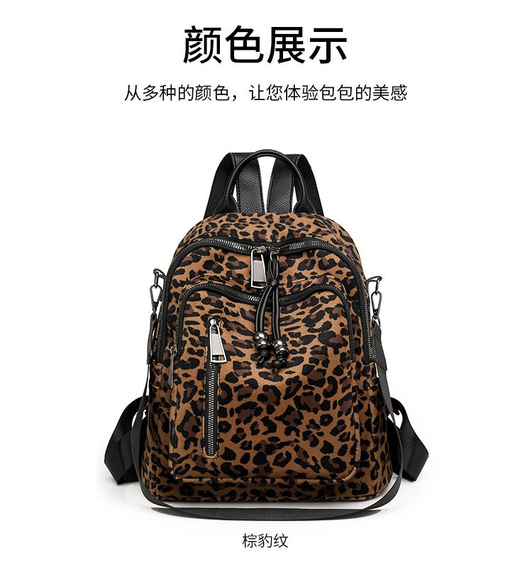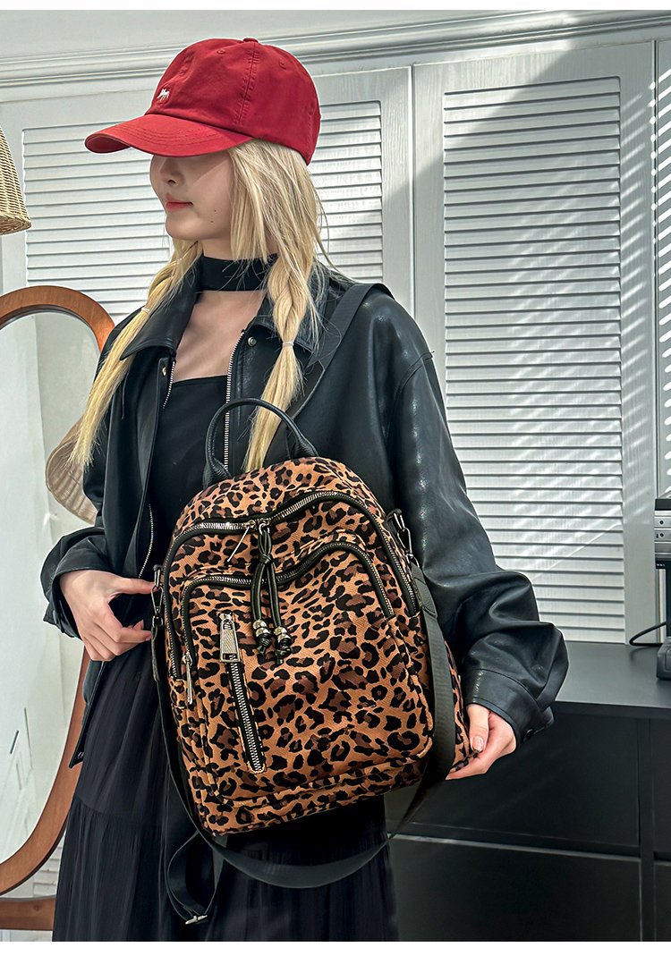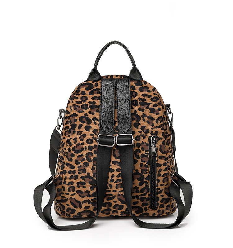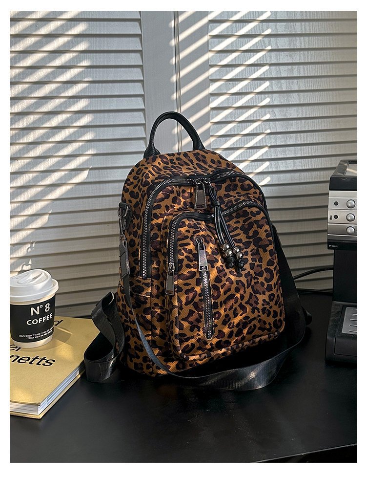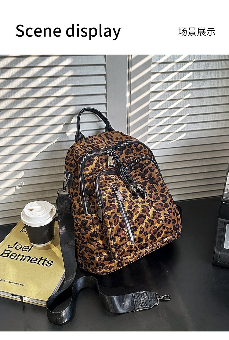 레트로 문학 표범 인쇄 배낭 여성의 새로운 다목적 대용량 캔버스 싱글 숄더 더블 숄더 여행 배낭