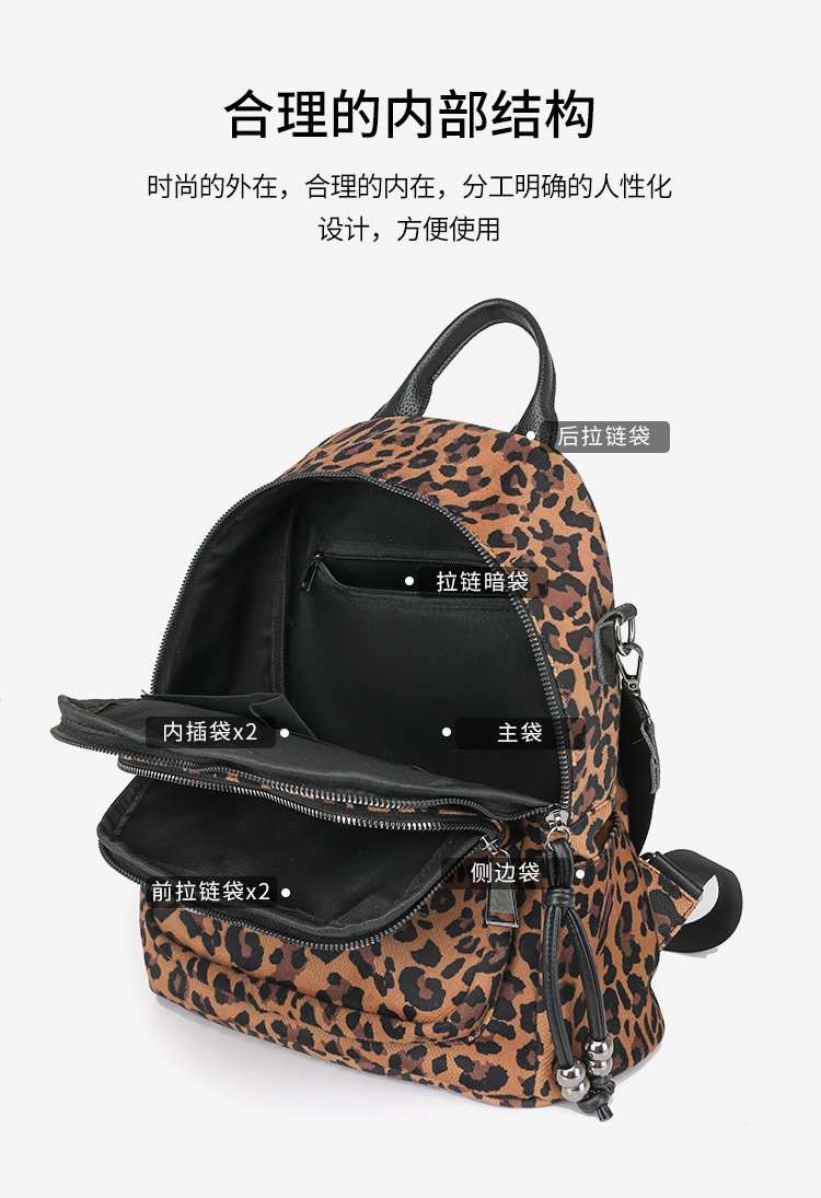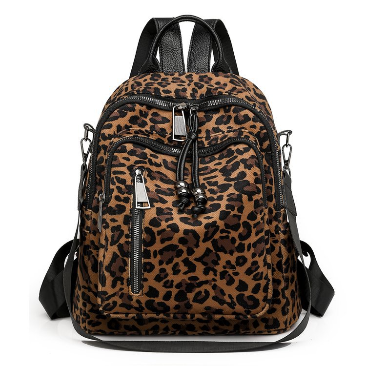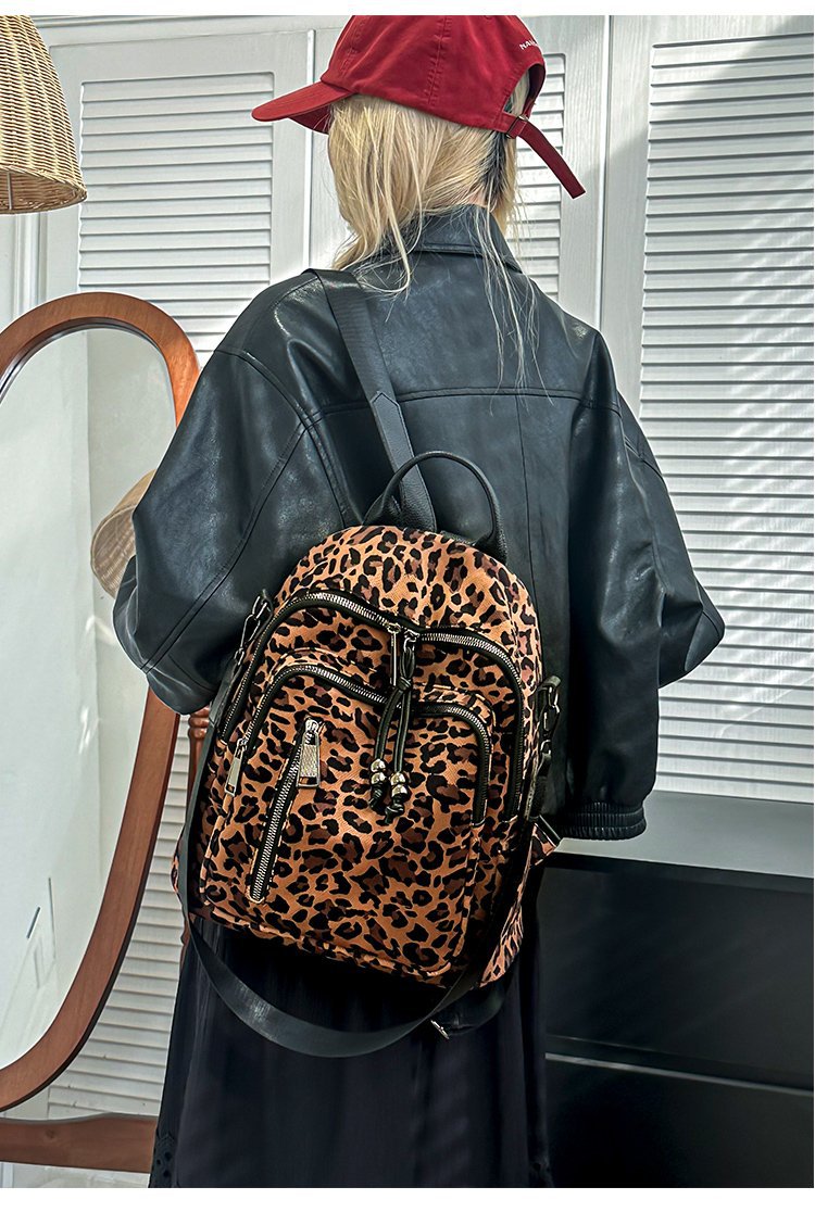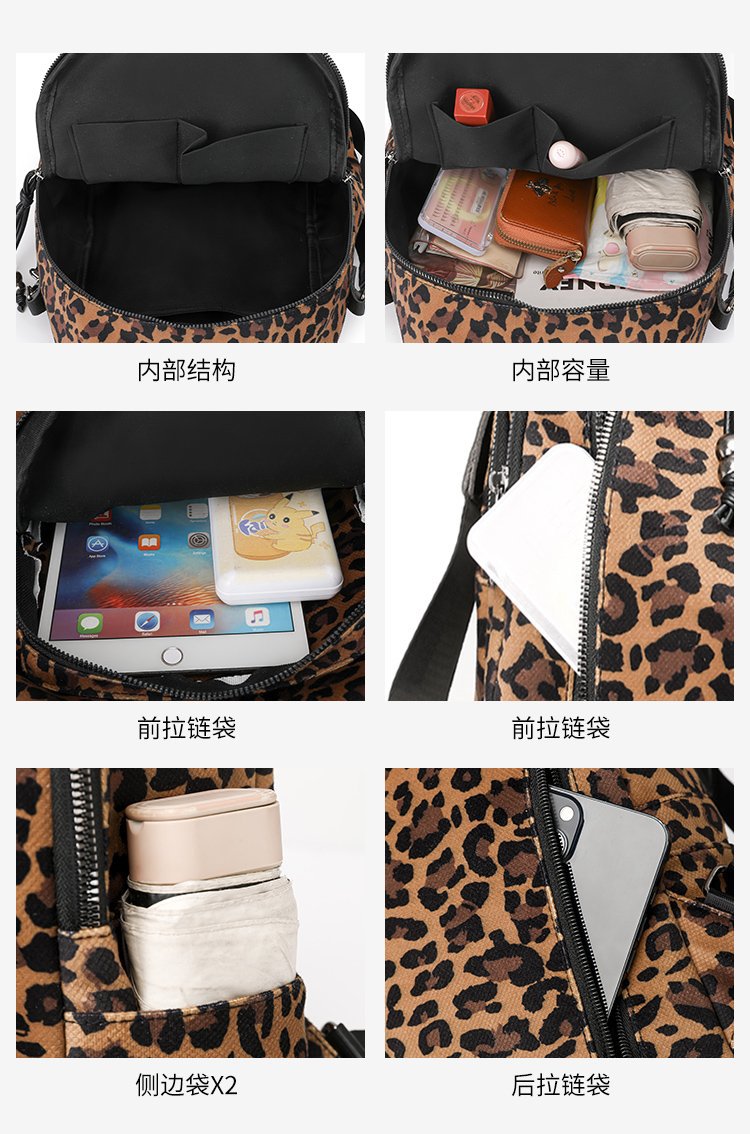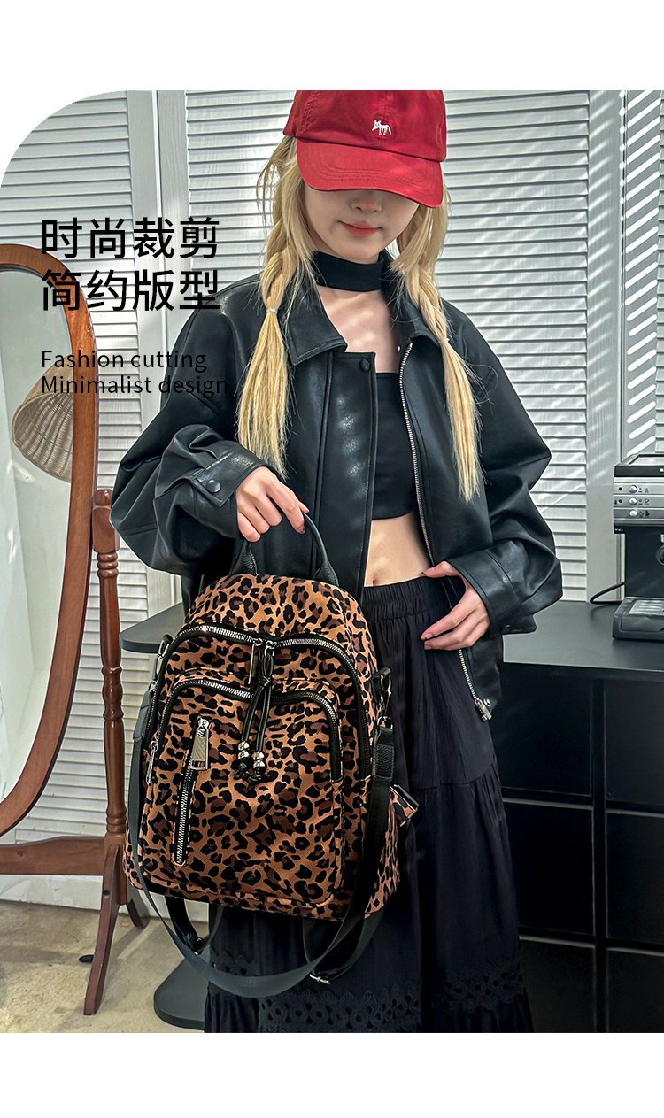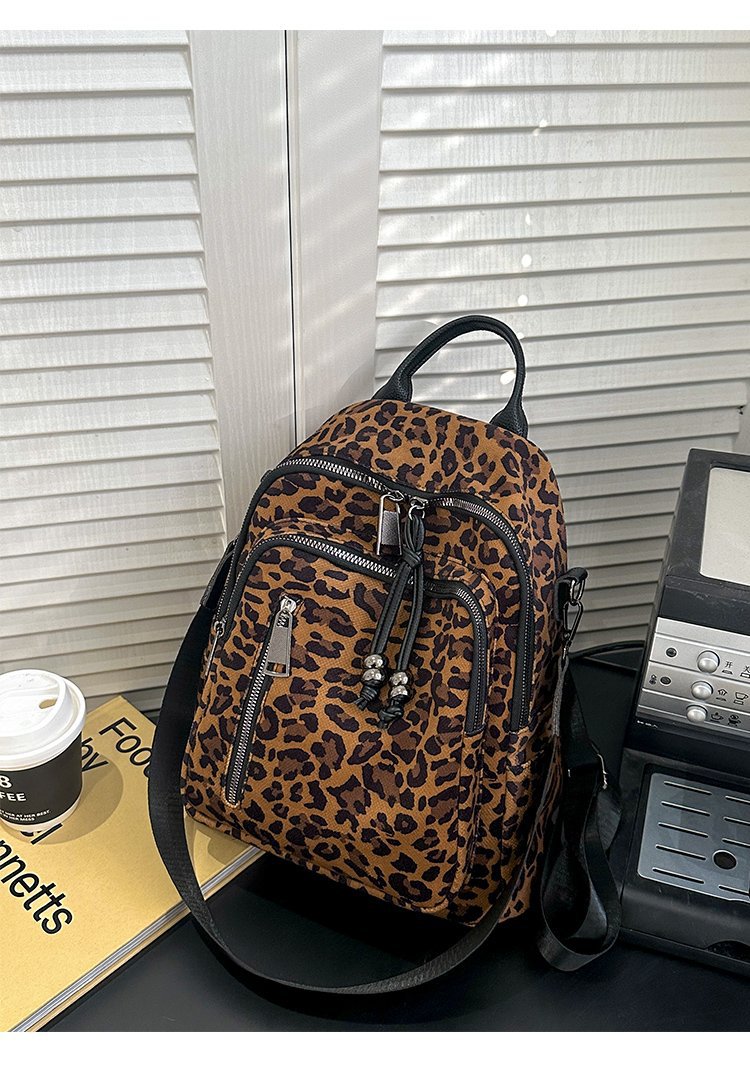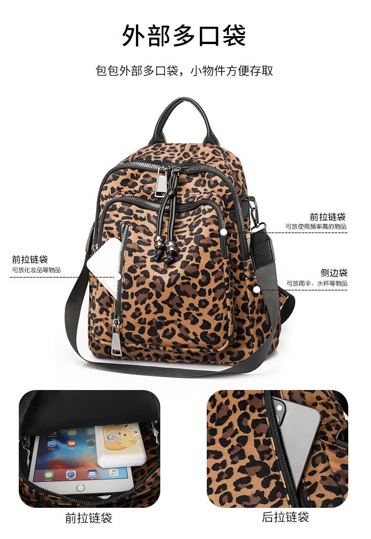 레트로 문학 표범 인쇄 배낭 여성의 새로운 다목적 대용량 캔버스 싱글 숄더 더블 숄더 여행 배낭