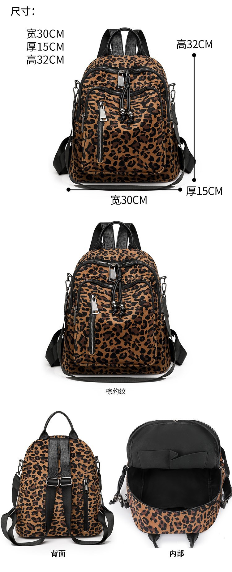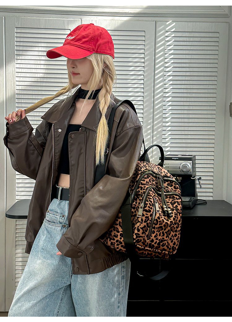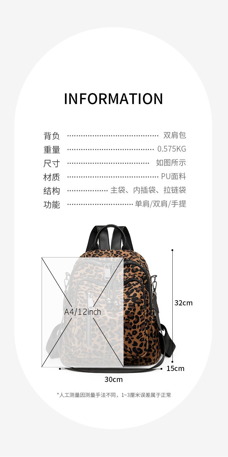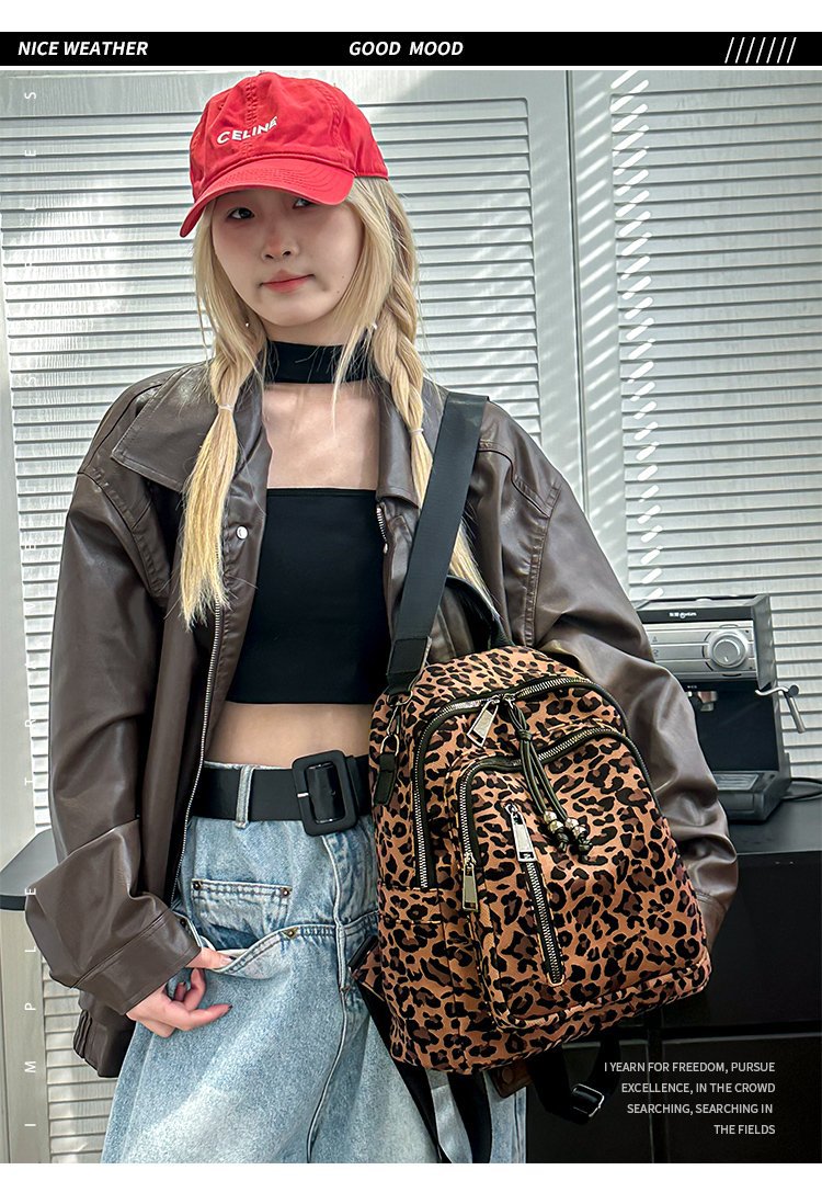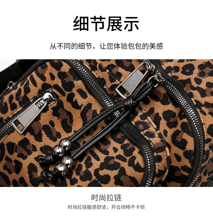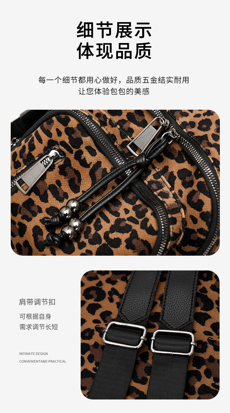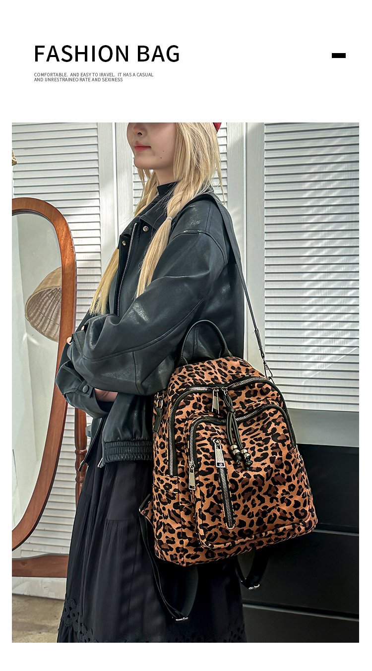 레트로 문학 표범 인쇄 배낭 여성의 새로운 다목적 대용량 캔버스 싱글 숄더 더블 숄더 여행 배낭