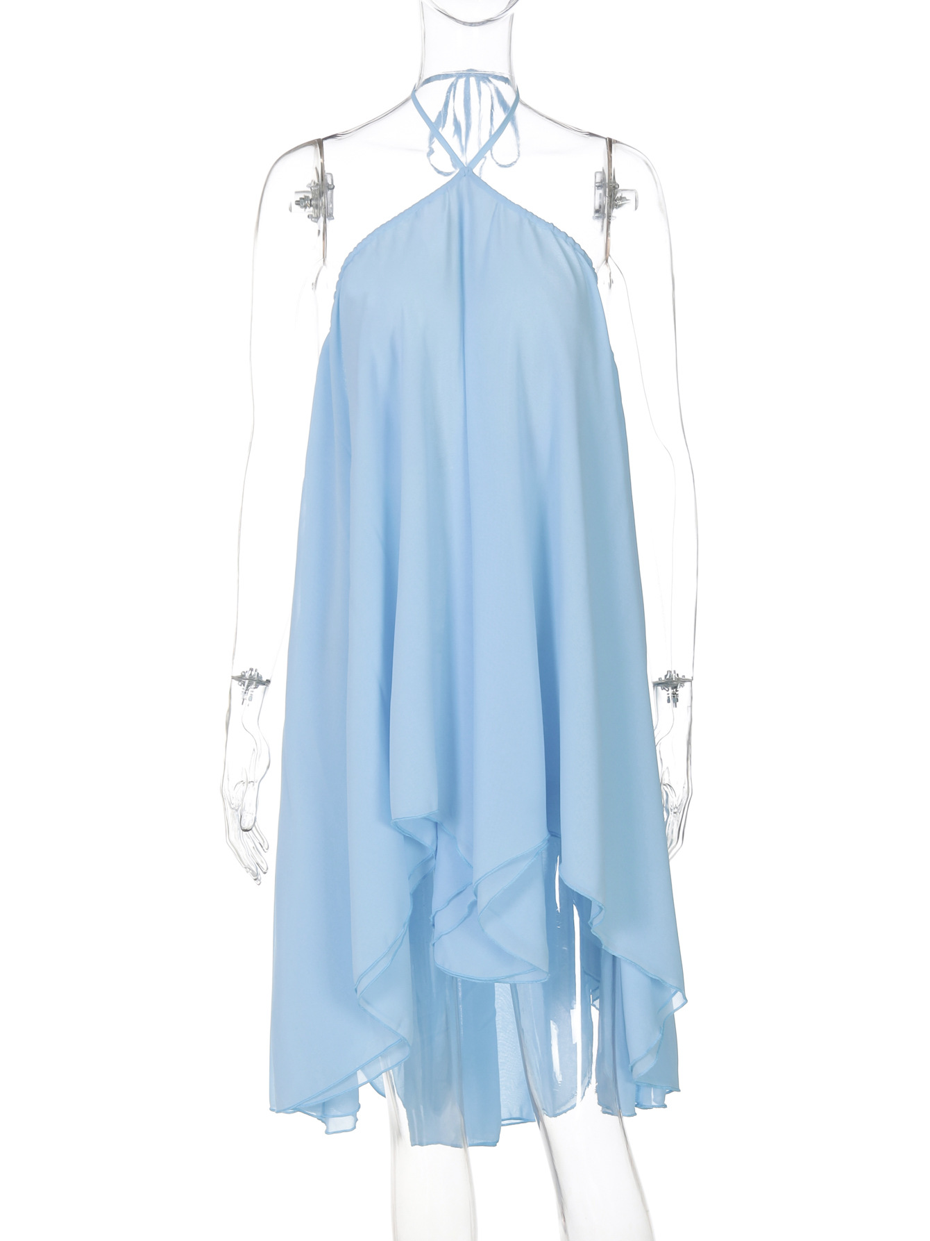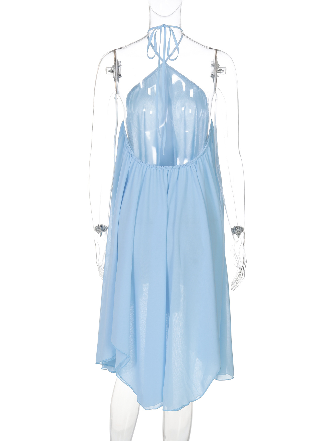 유럽 및 미국 여성복 2025 여름 신상품 순수하고 섹시한 백리스 로우컷 레이스업 망사 통기성 루즈핏 슬립 원피스 여성용