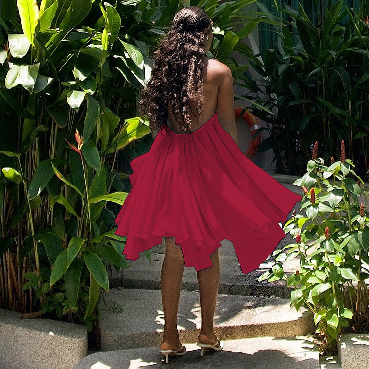 유럽 및 미국 여성복 2025 여름 신상품 순수하고 섹시한 백리스 로우컷 레이스업 망사 통기성 루즈핏 슬립 원피스 여성용스토어 가기
