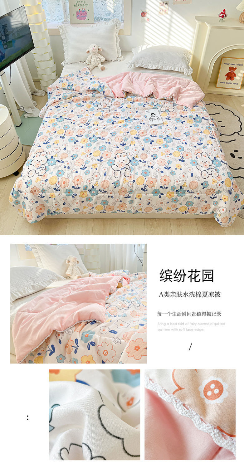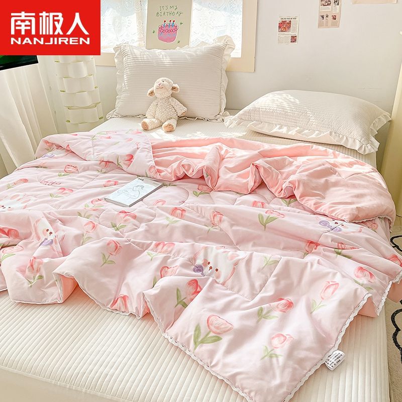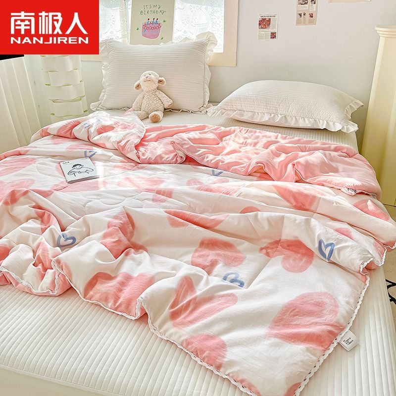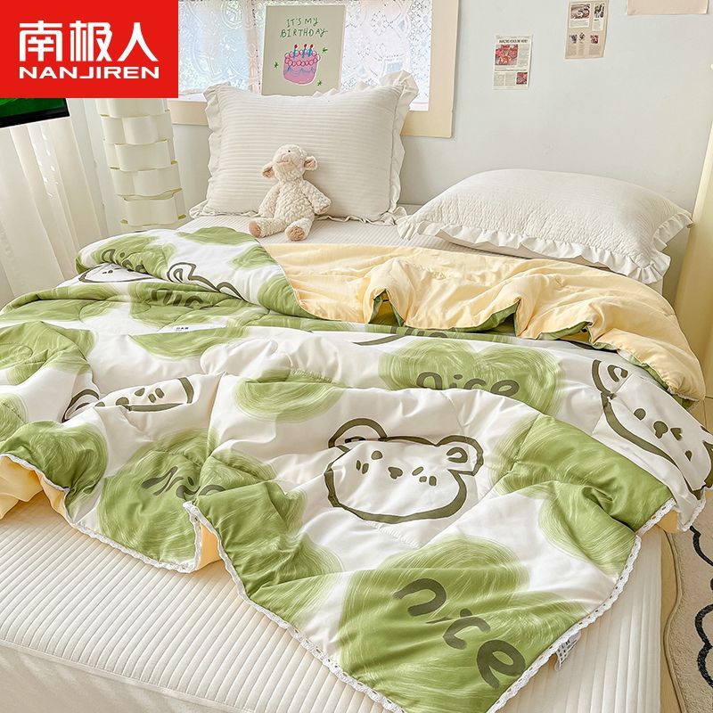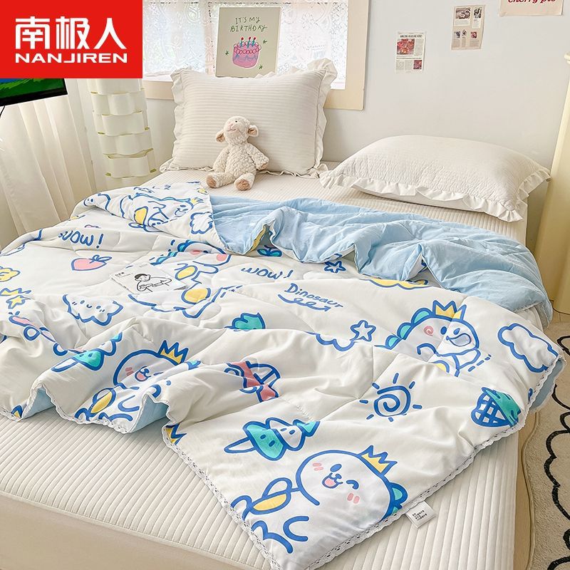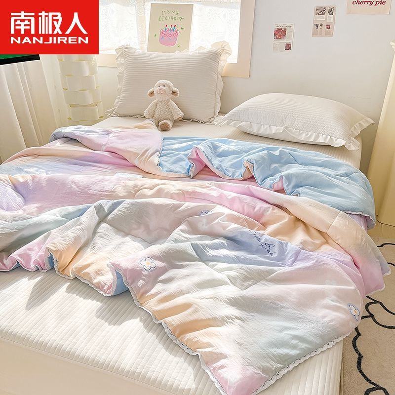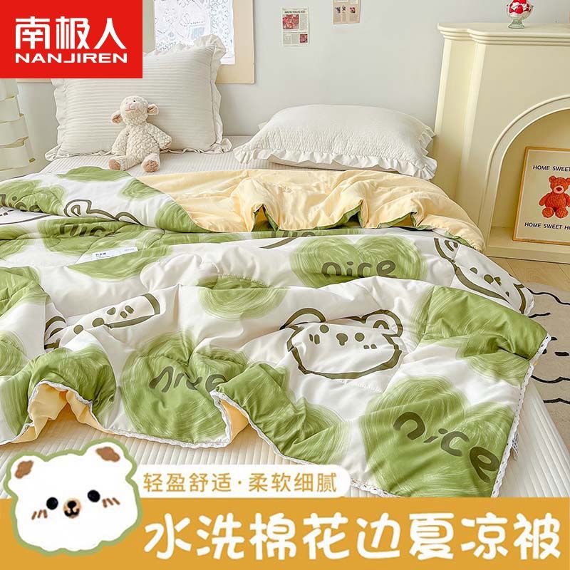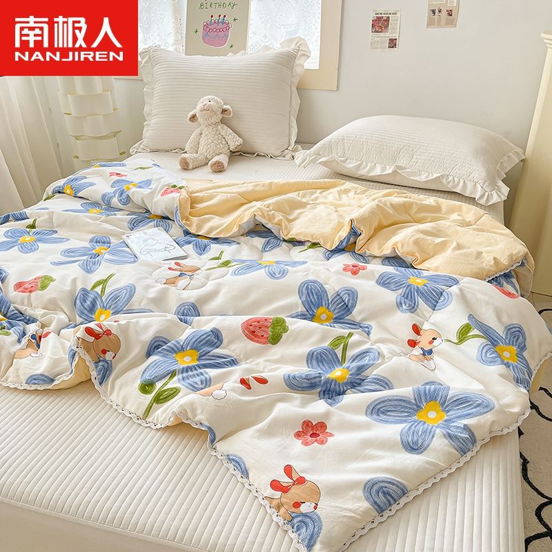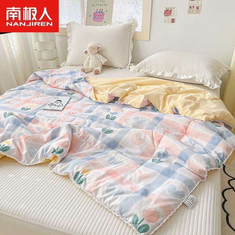 Nanjiren 여름 시원한 이불 여름 이불 가정용 세탁 가능한 면 여름 이불 기계 세탁 가능한 에어컨 이불 학생 기숙사 점심 시간 이불스토어 가기
