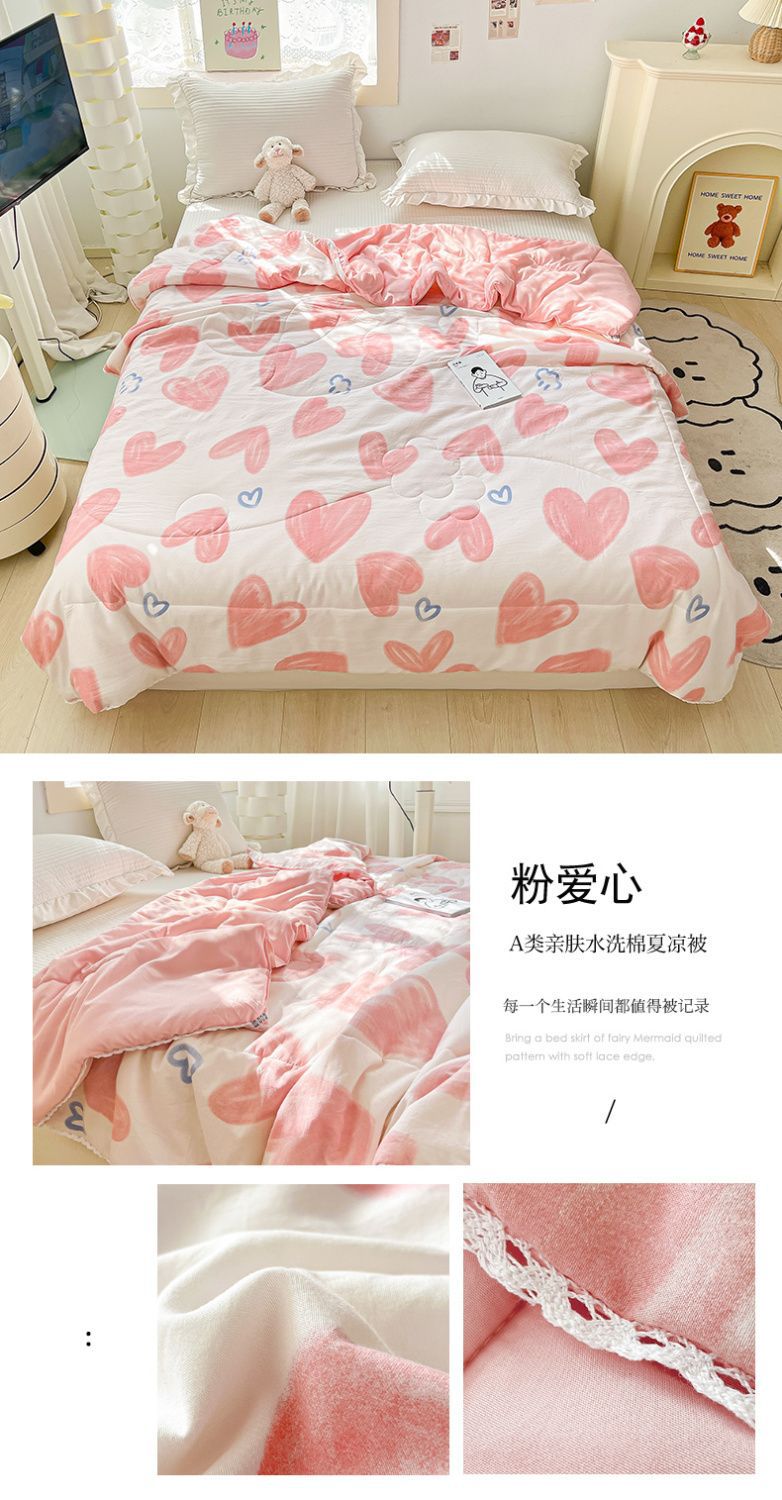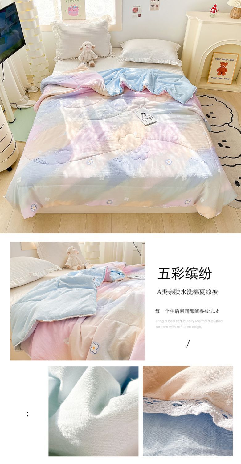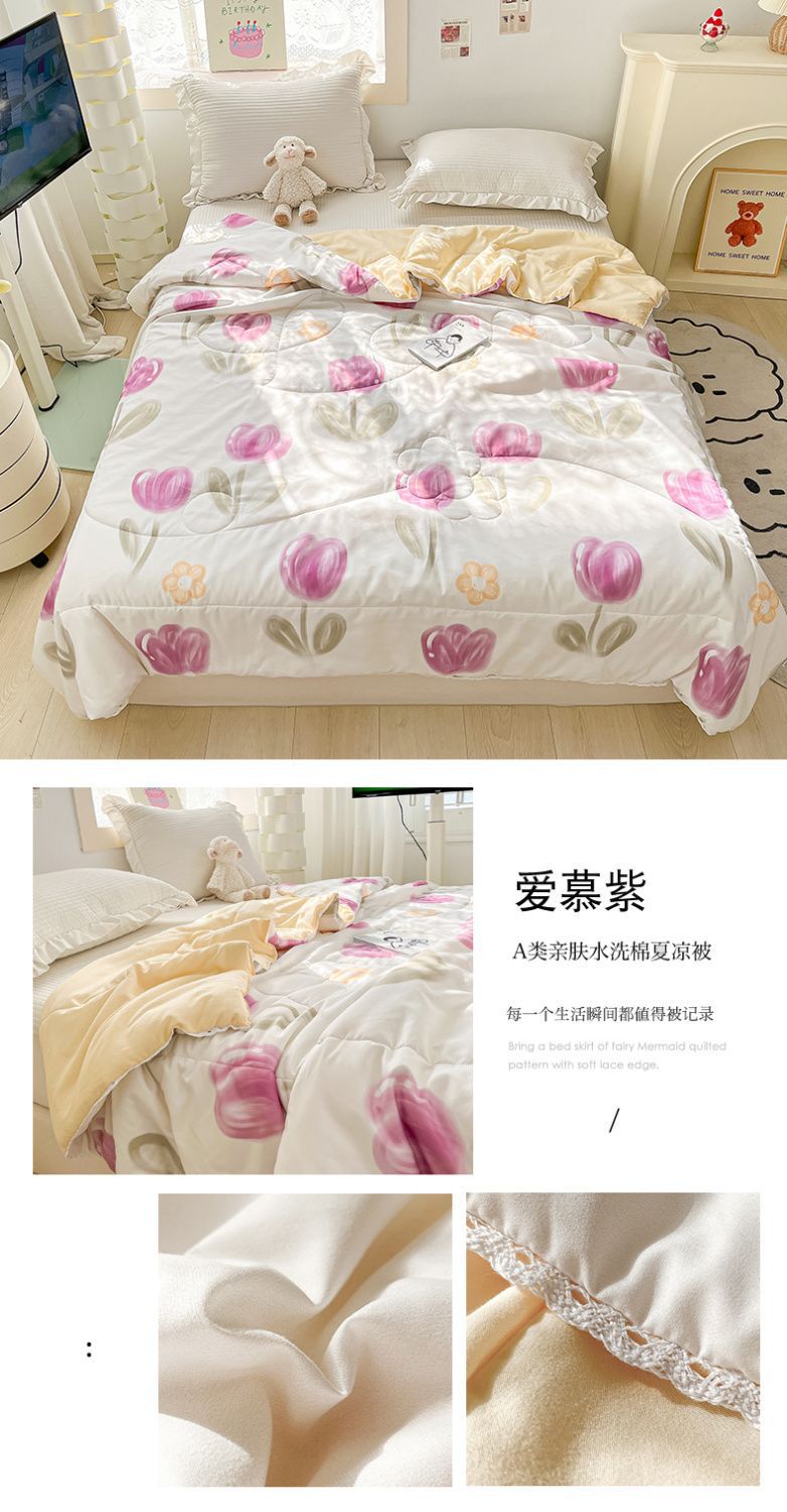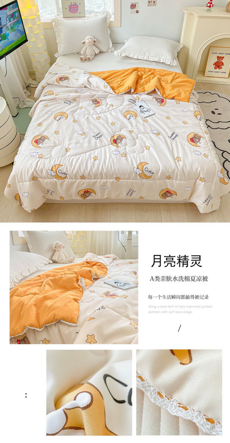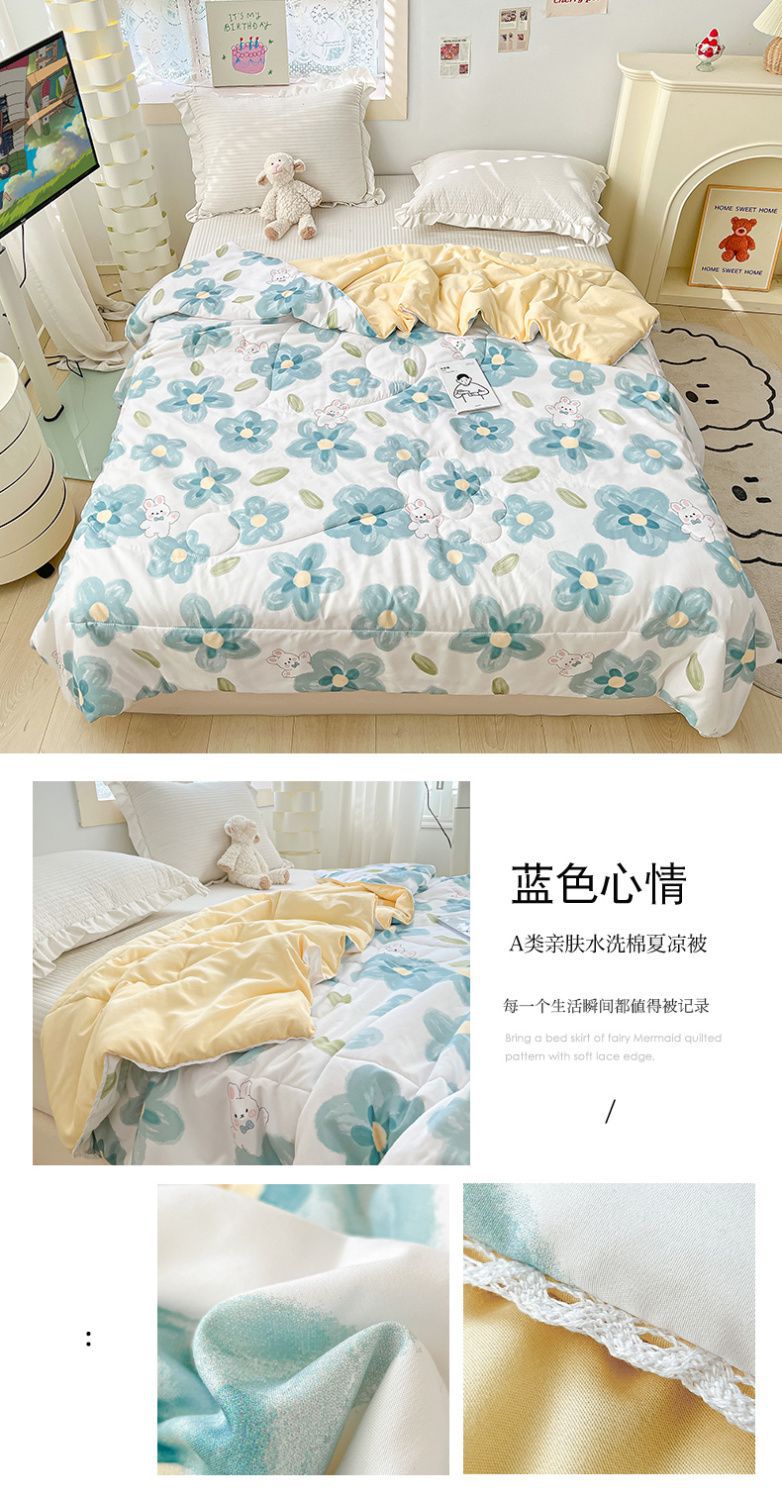 Nanjiren 여름 시원한 이불 여름 이불 가정용 세탁 가능한 면 여름 이불 기계 세탁 가능한 에어컨 이불 학생 기숙사 점심 시간 이불스토어 가기