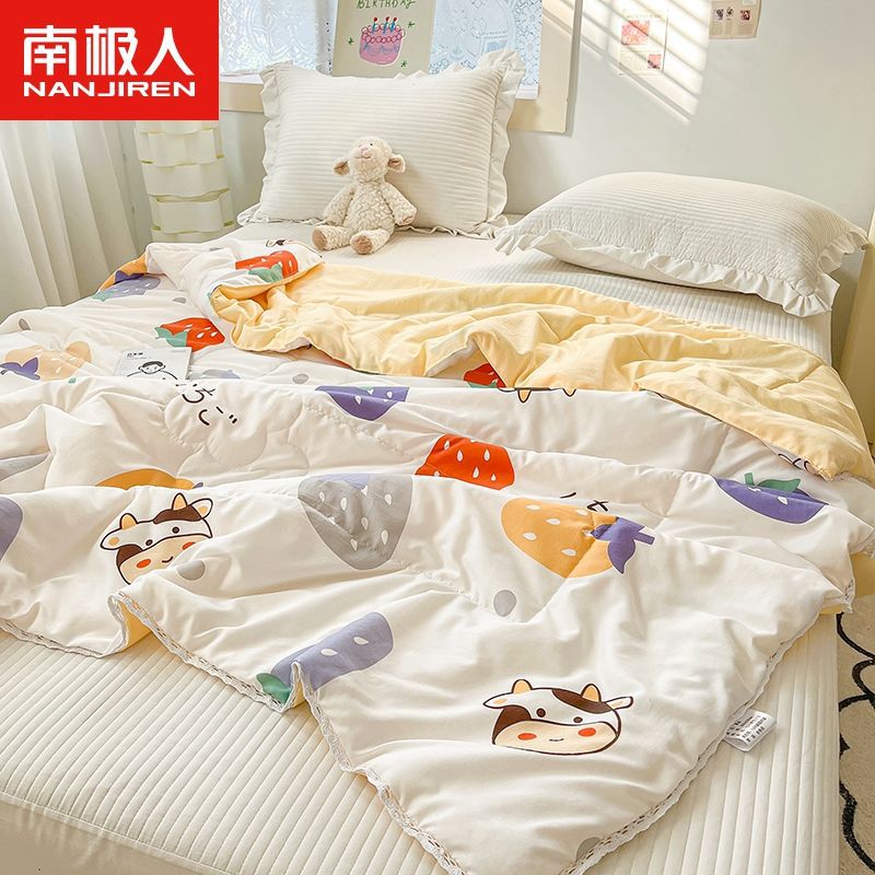 Nanjiren 여름 시원한 이불 여름 이불 가정용 세탁 가능한 면 여름 이불 기계 세탁 가능한 에어컨 이불 학생 기숙사 점심 시간 이불