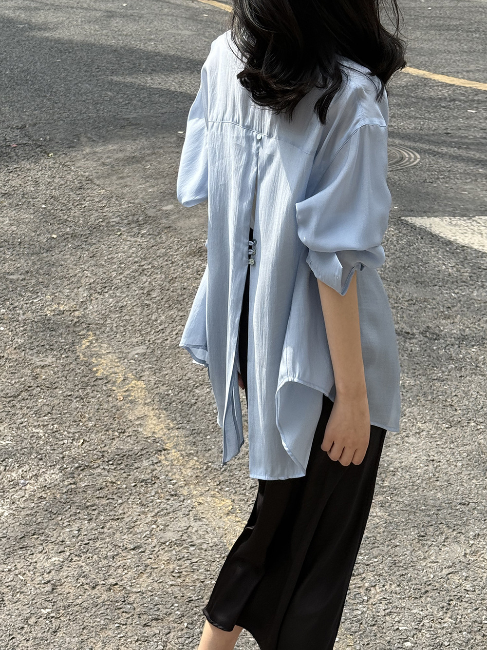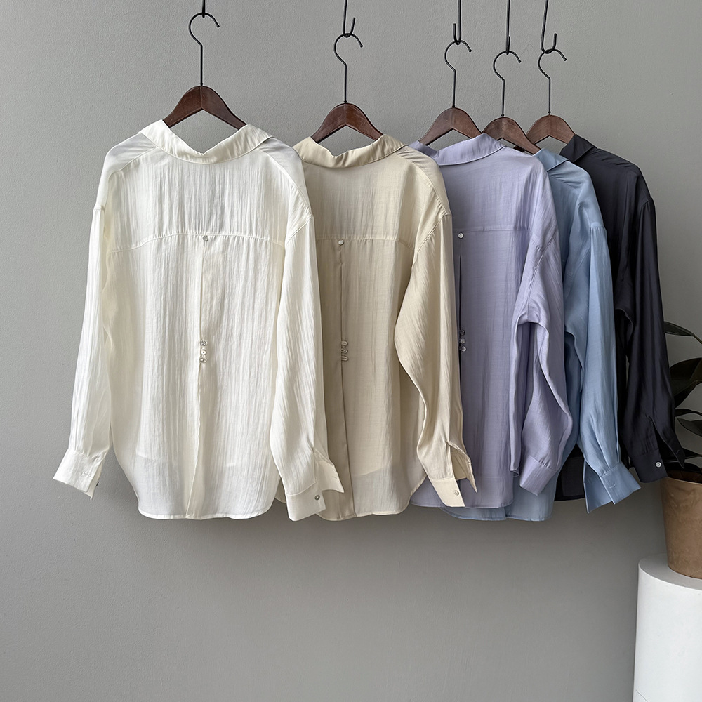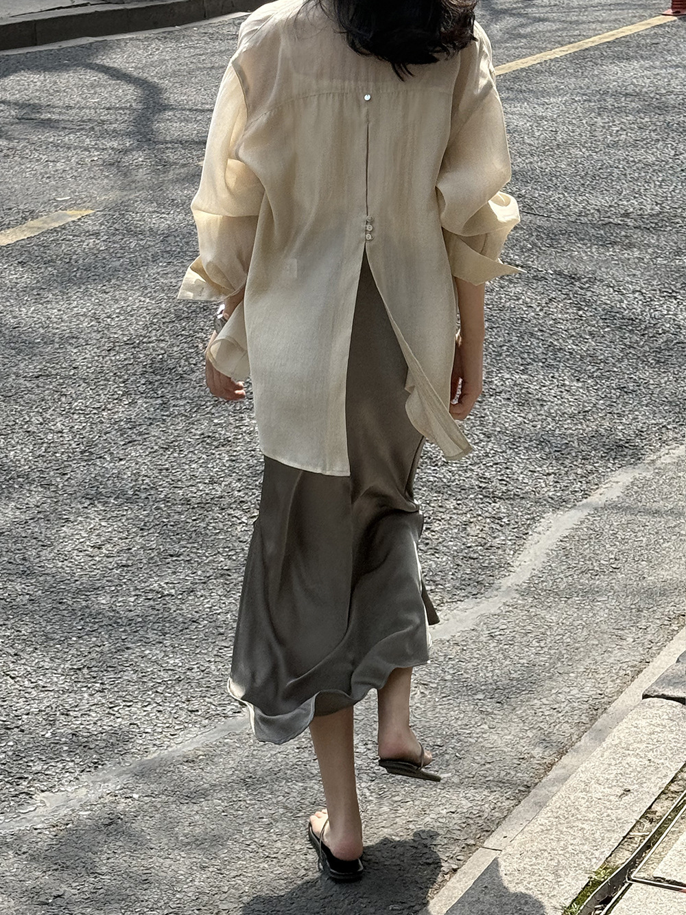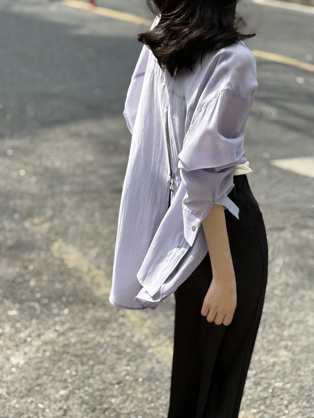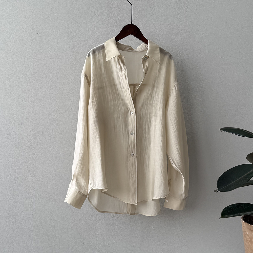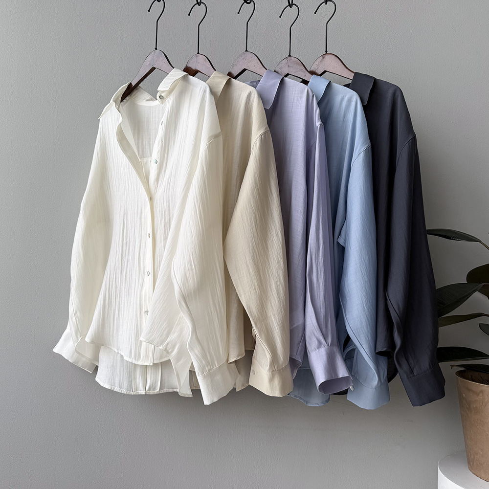 여성용 백 슬릿 텐셀 셔츠 여름 얇은 디자인 틈새 아우터 블라우스 탑 루즈한 자외선 차단 재킷