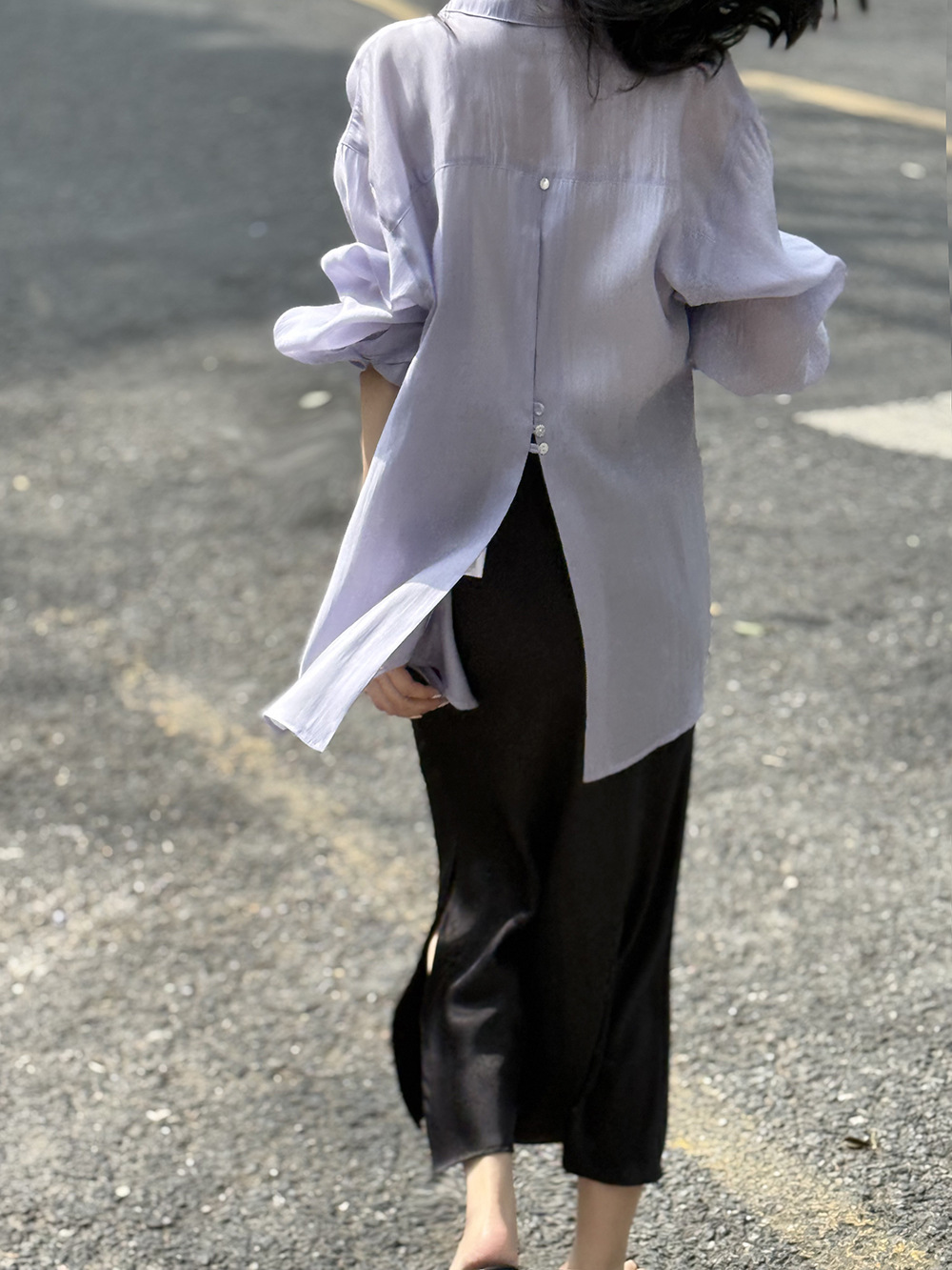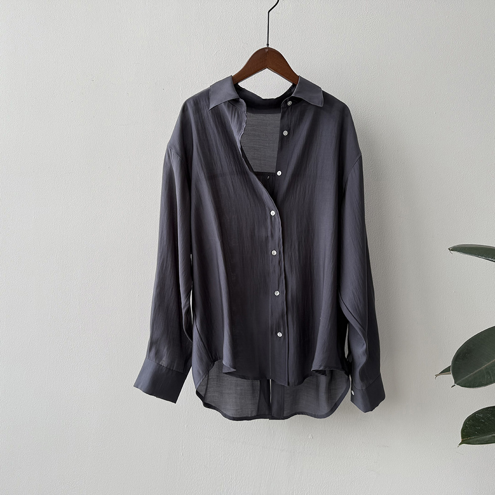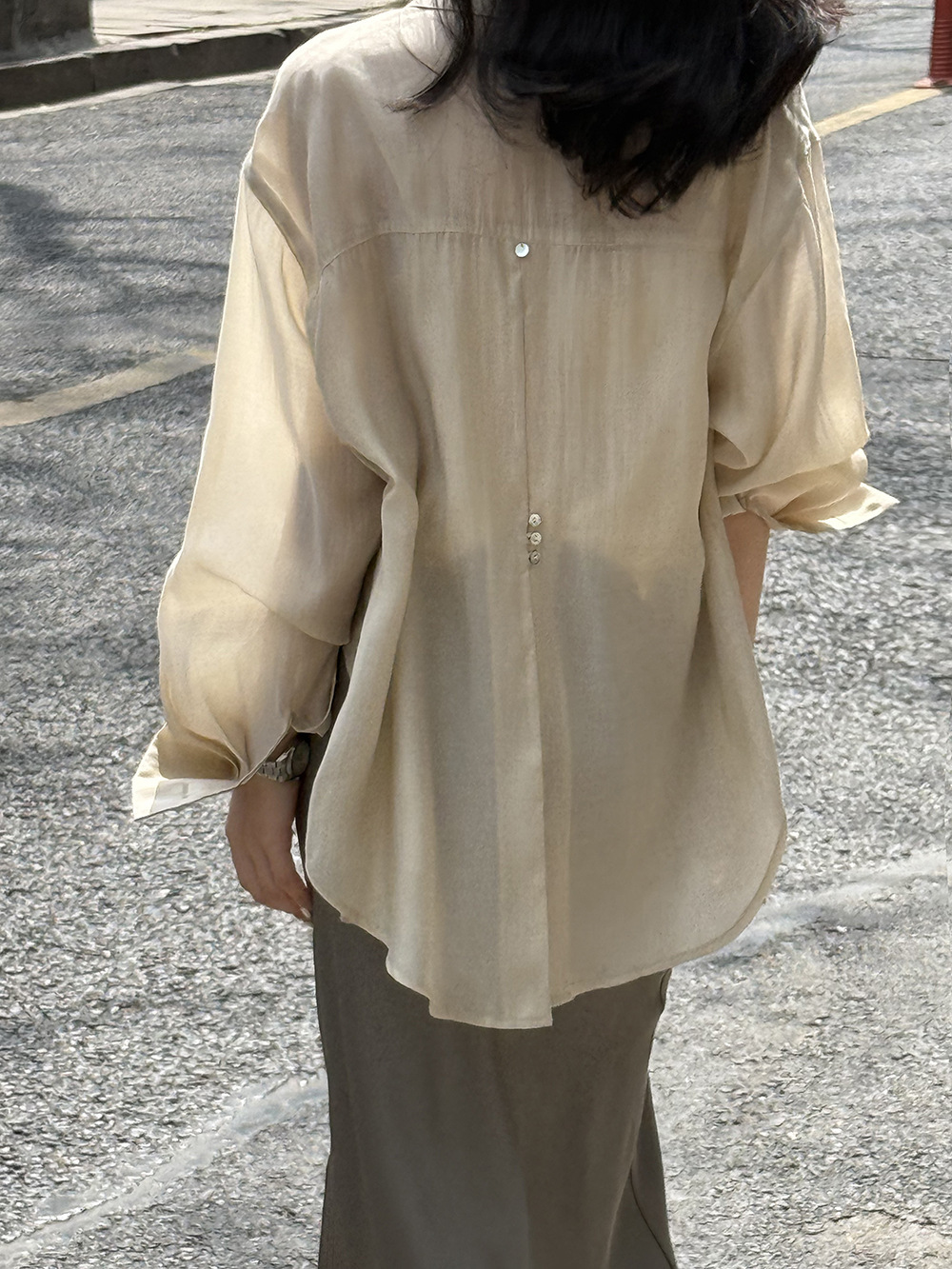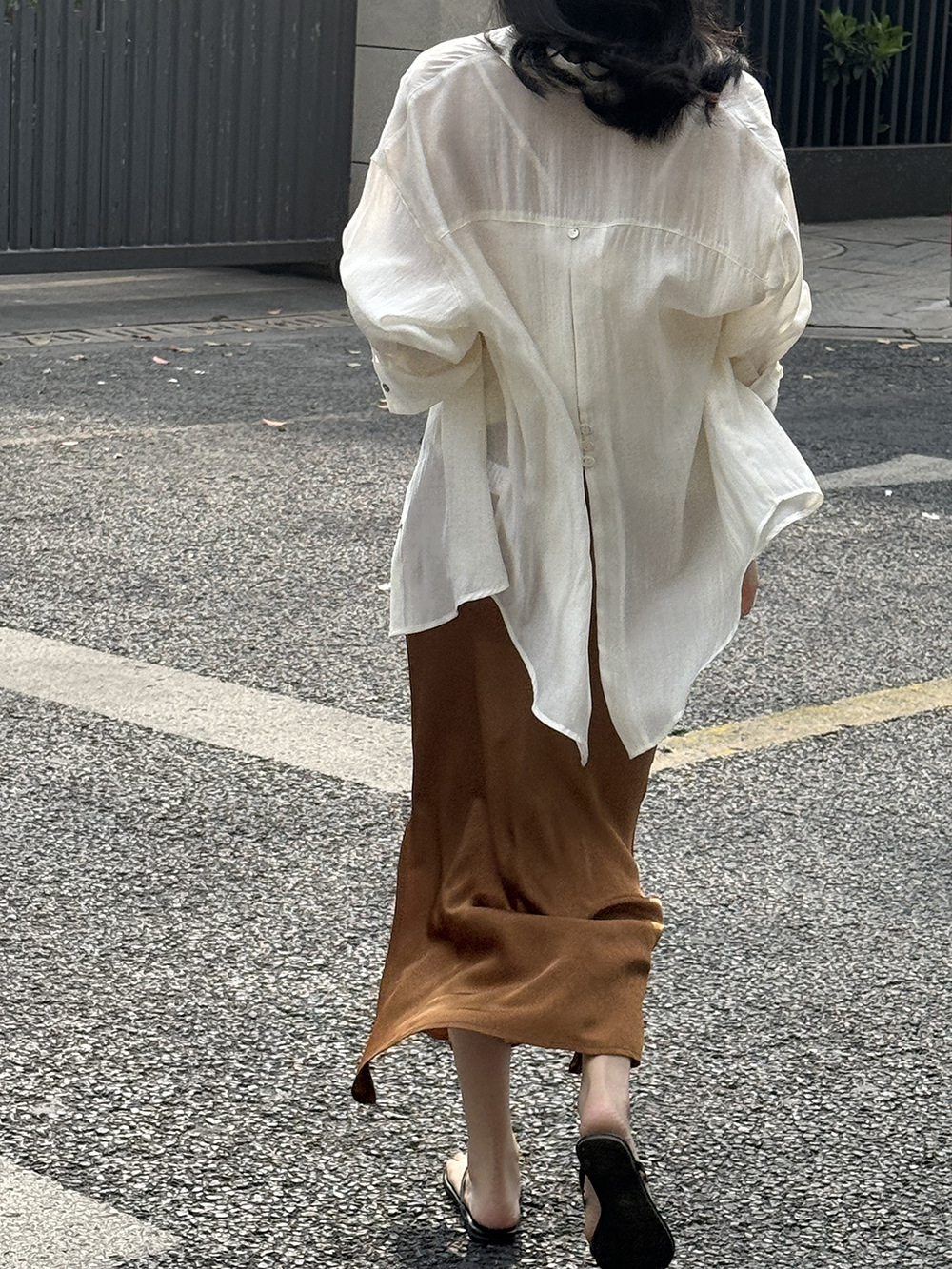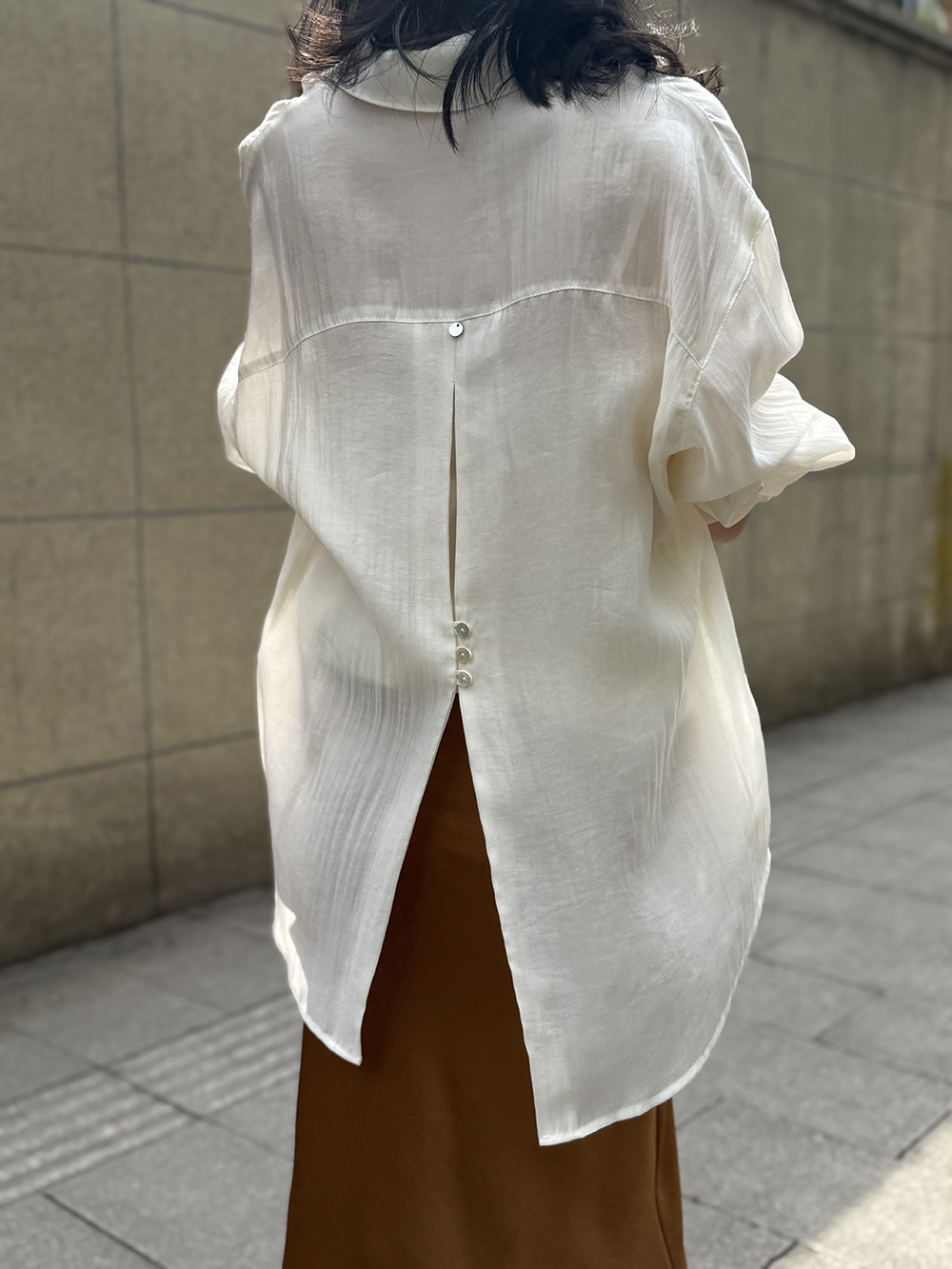 여성용 백 슬릿 텐셀 셔츠 여름 얇은 디자인 틈새 아우터 블라우스 탑 루즈한 자외선 차단 재킷