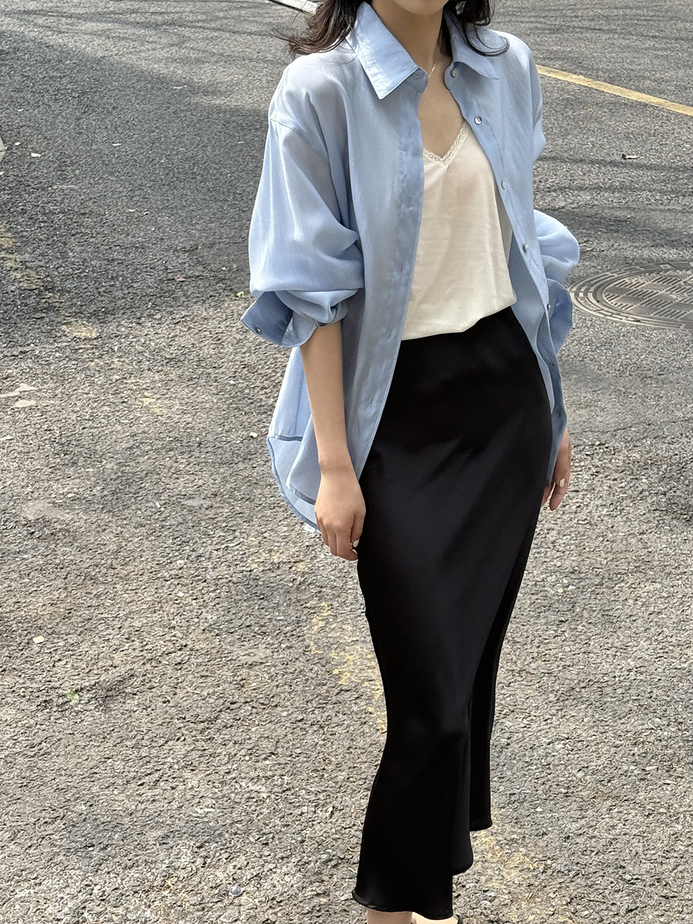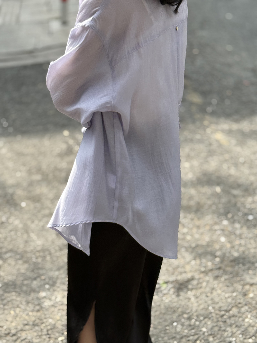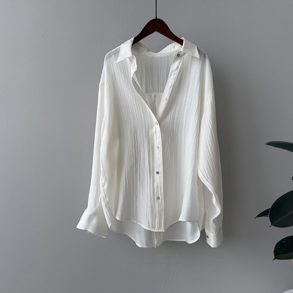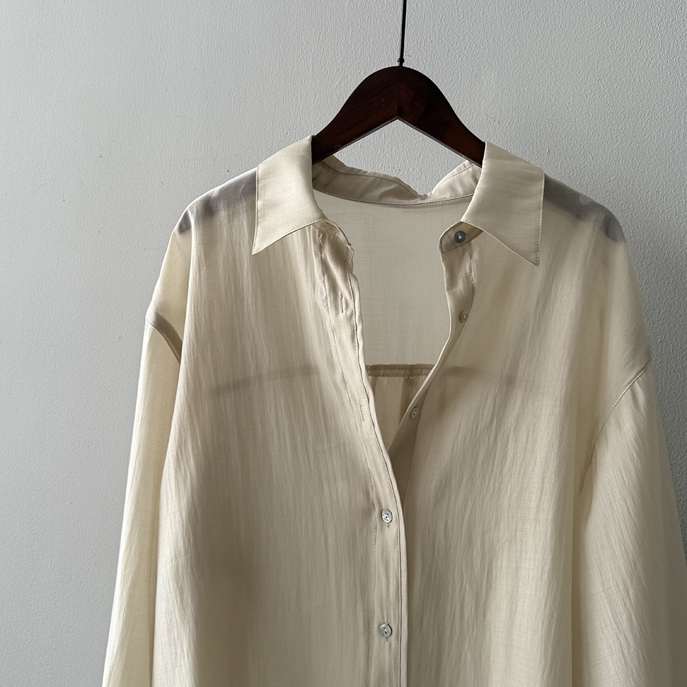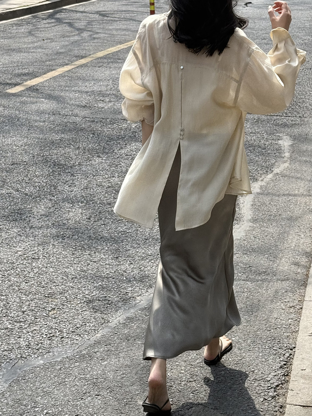 여성용 백 슬릿 텐셀 셔츠 여름 얇은 디자인 틈새 아우터 블라우스 탑 루즈한 자외선 차단 재킷