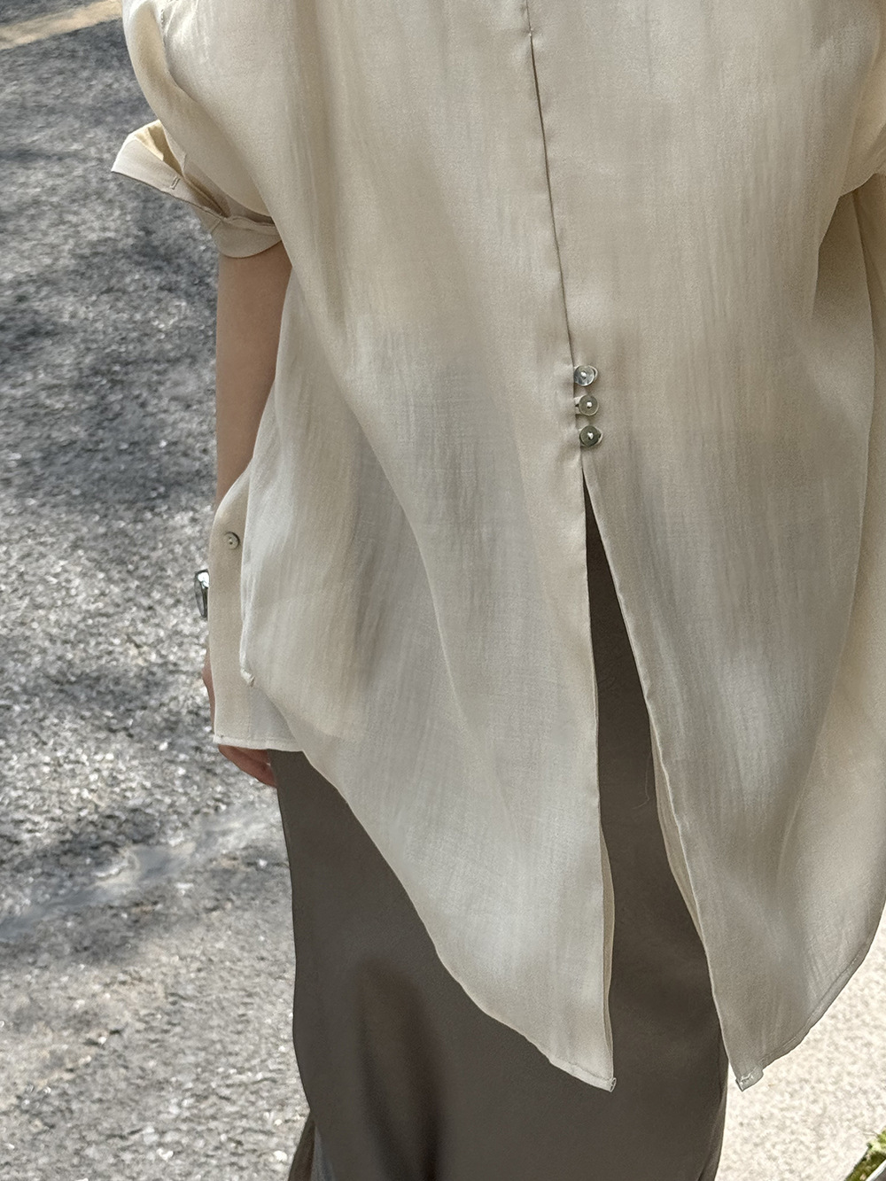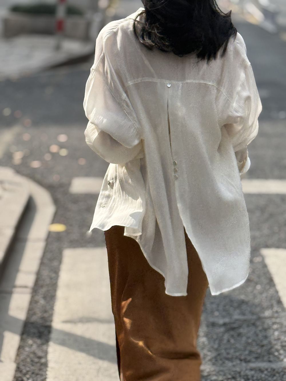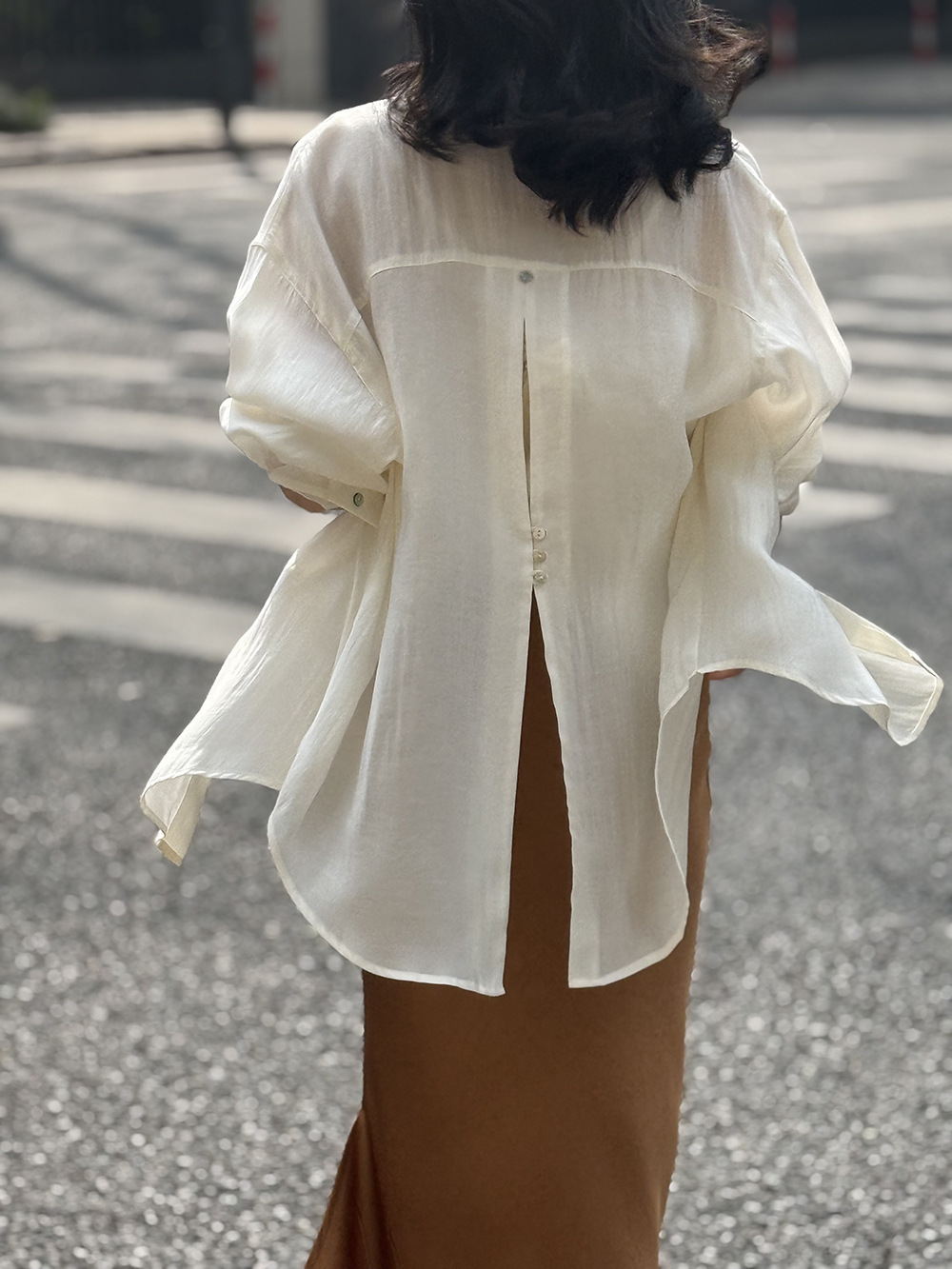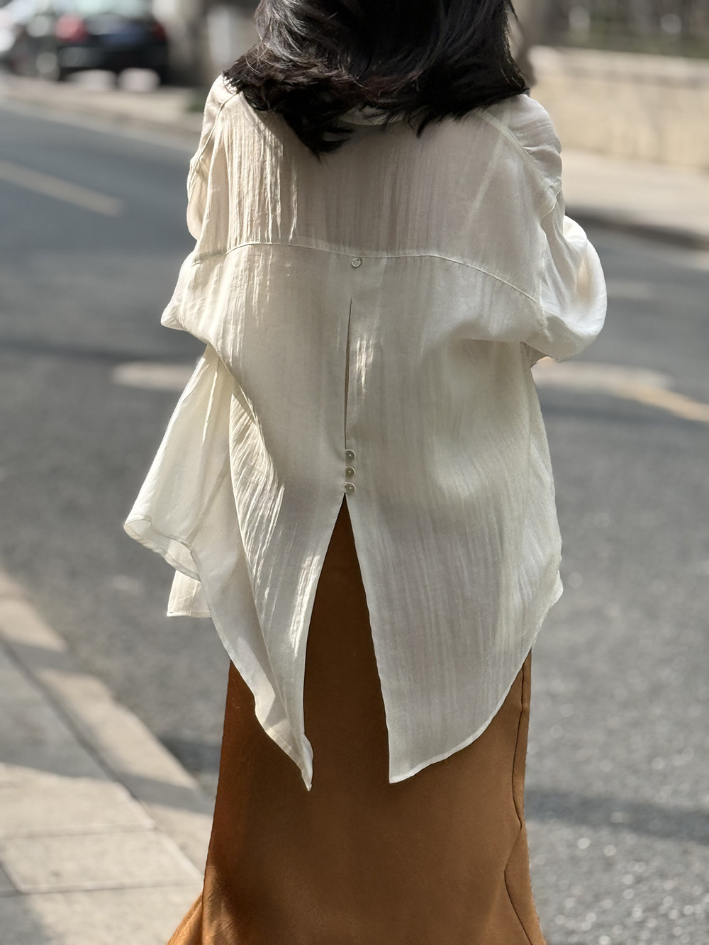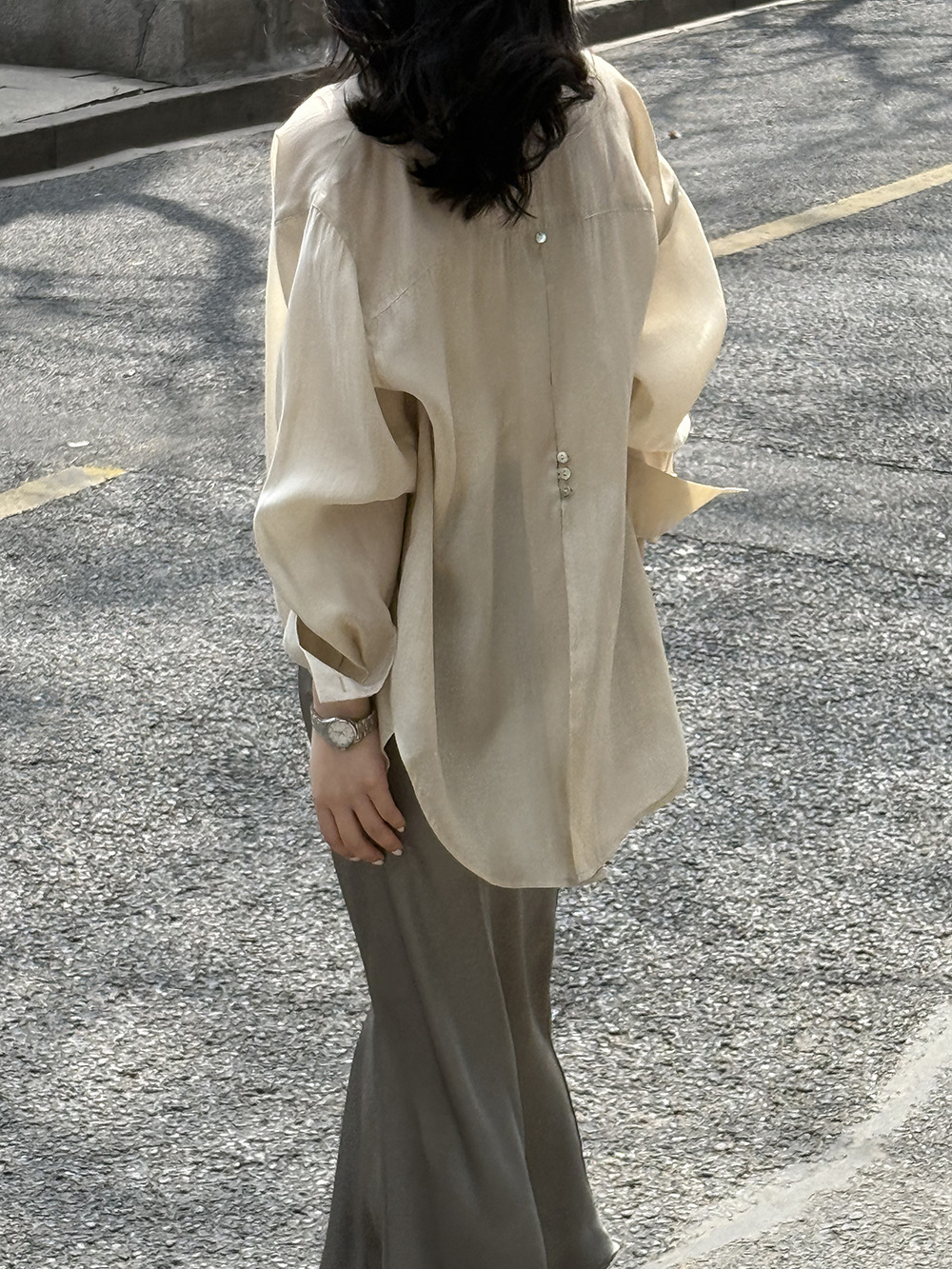 여성용 백 슬릿 텐셀 셔츠 여름 얇은 디자인 틈새 아우터 블라우스 탑 루즈한 자외선 차단 재킷