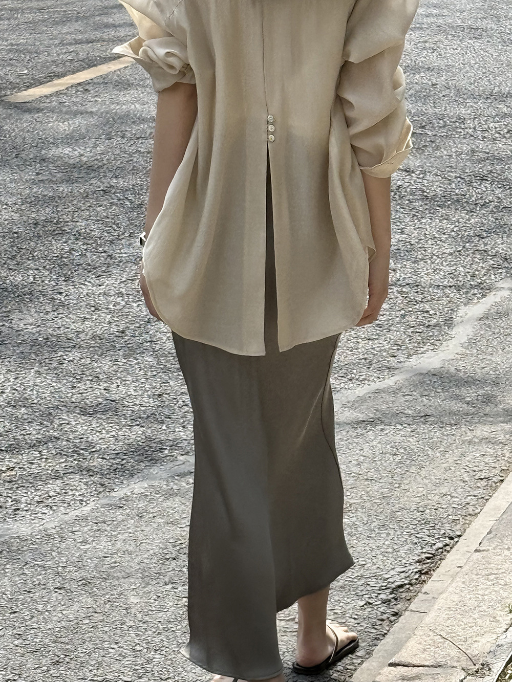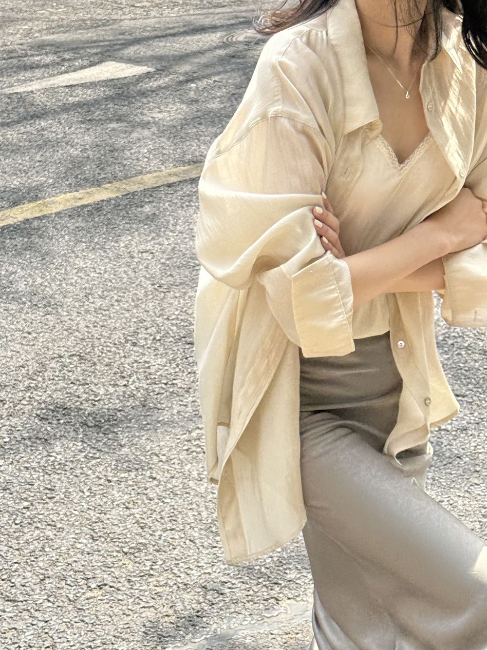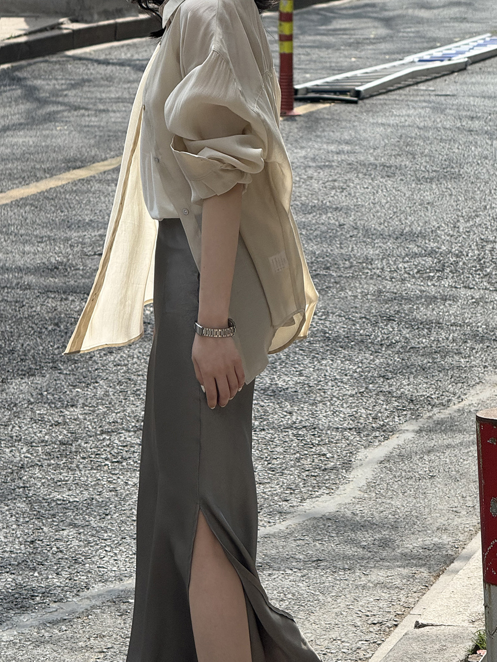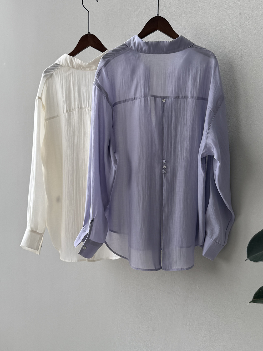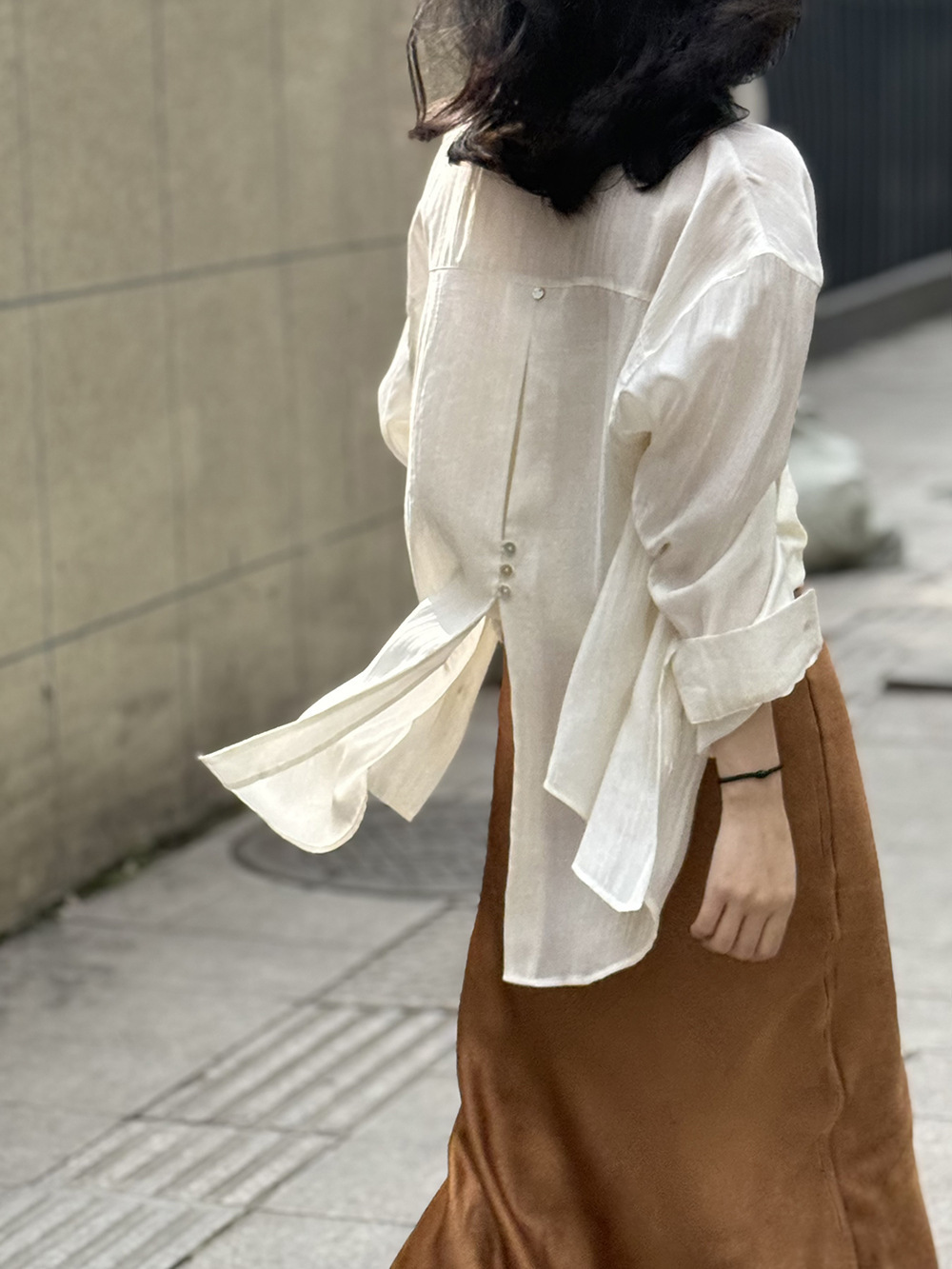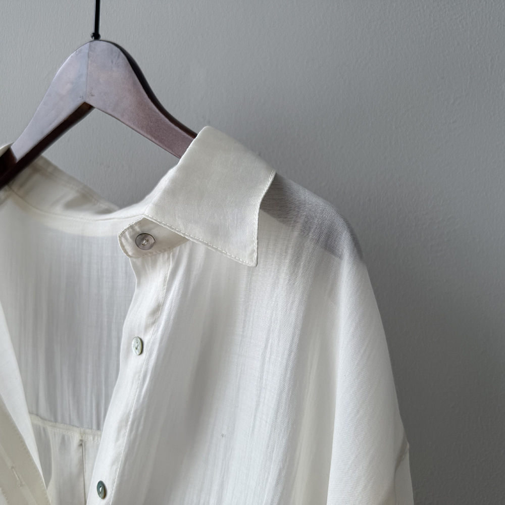 여성용 백 슬릿 텐셀 셔츠 여름 얇은 디자인 틈새 아우터 블라우스 탑 루즈한 자외선 차단 재킷