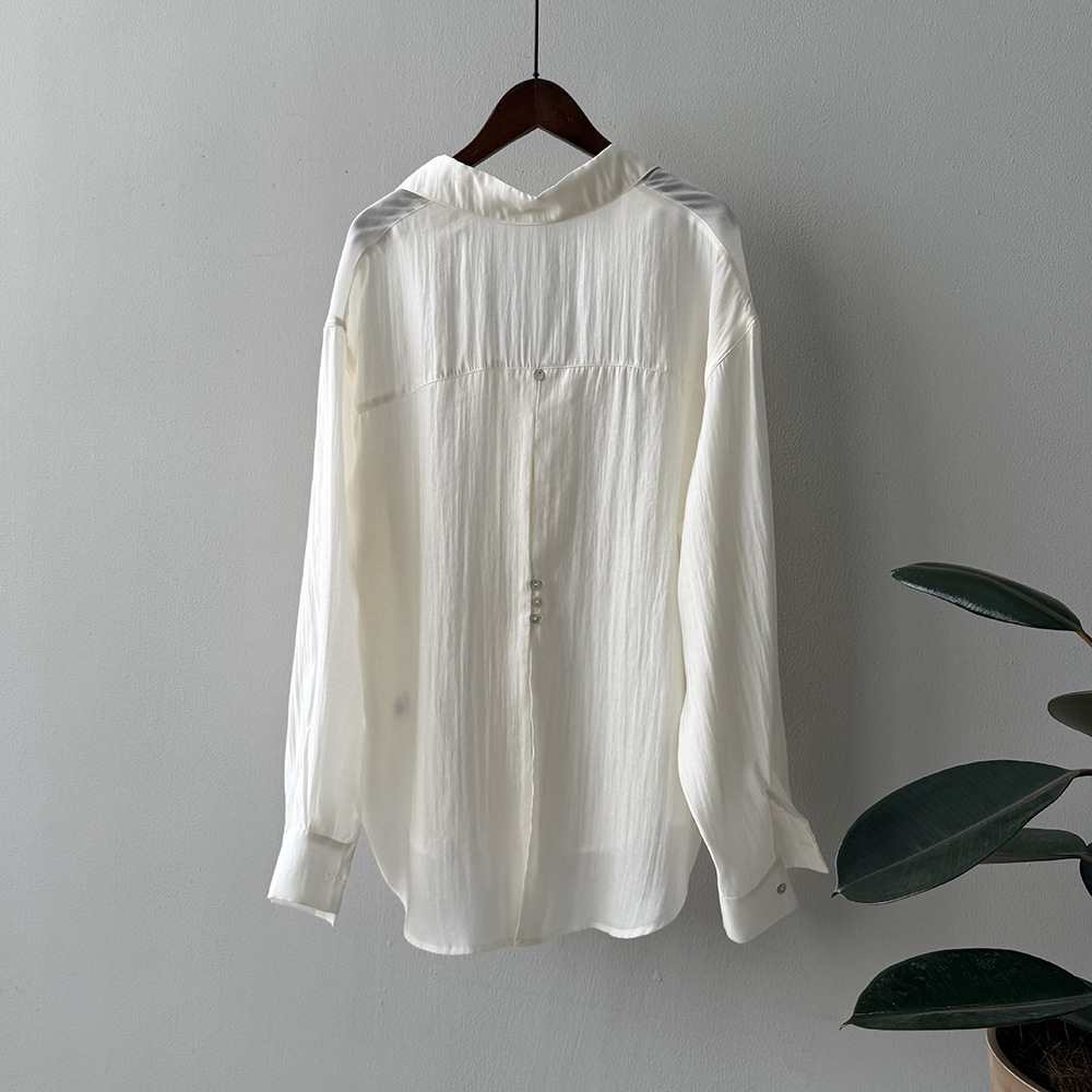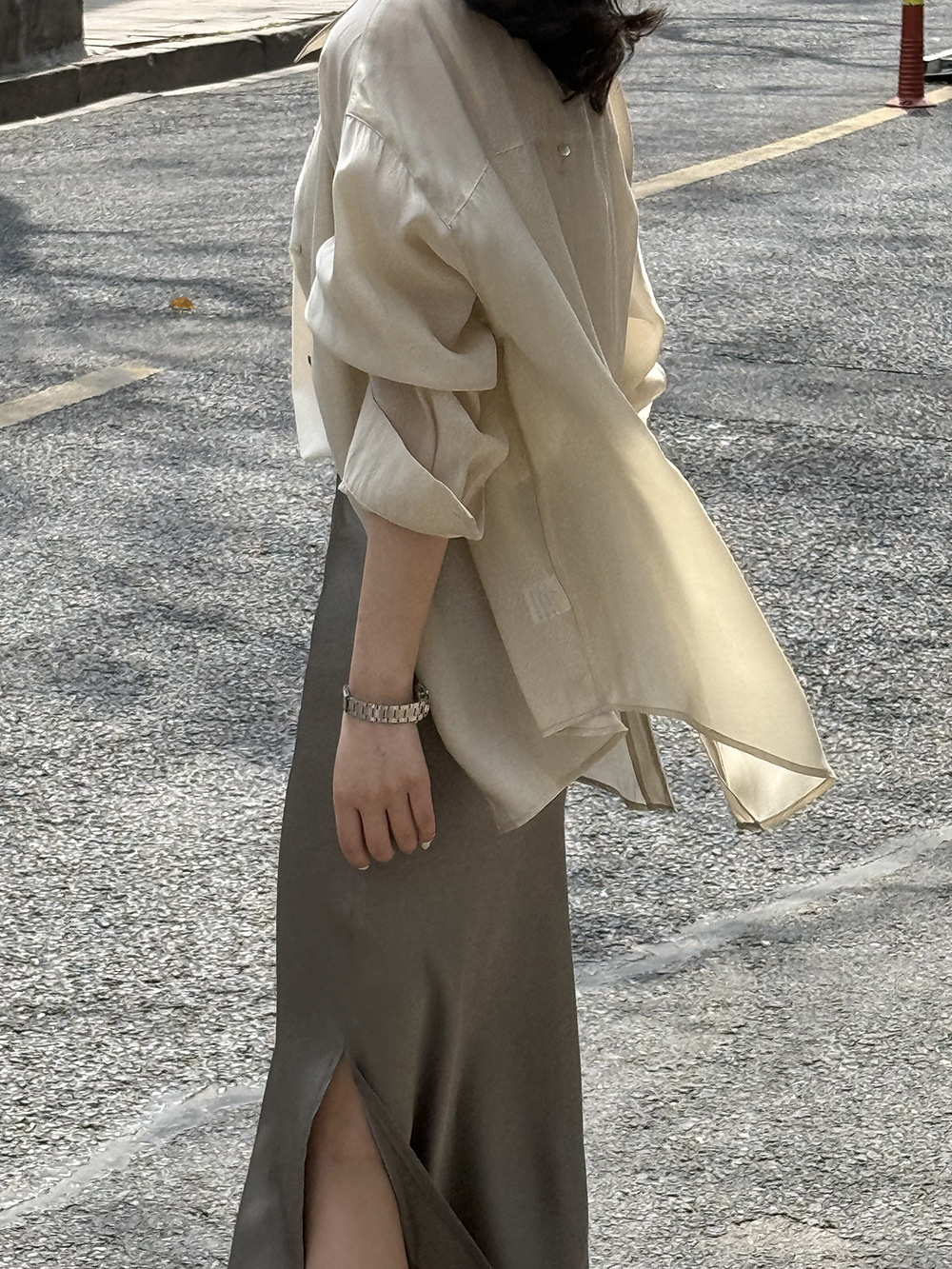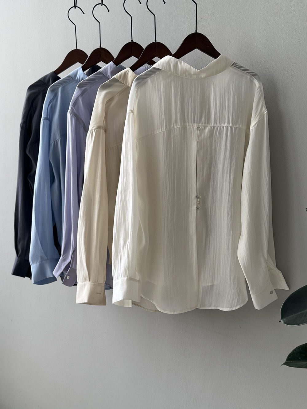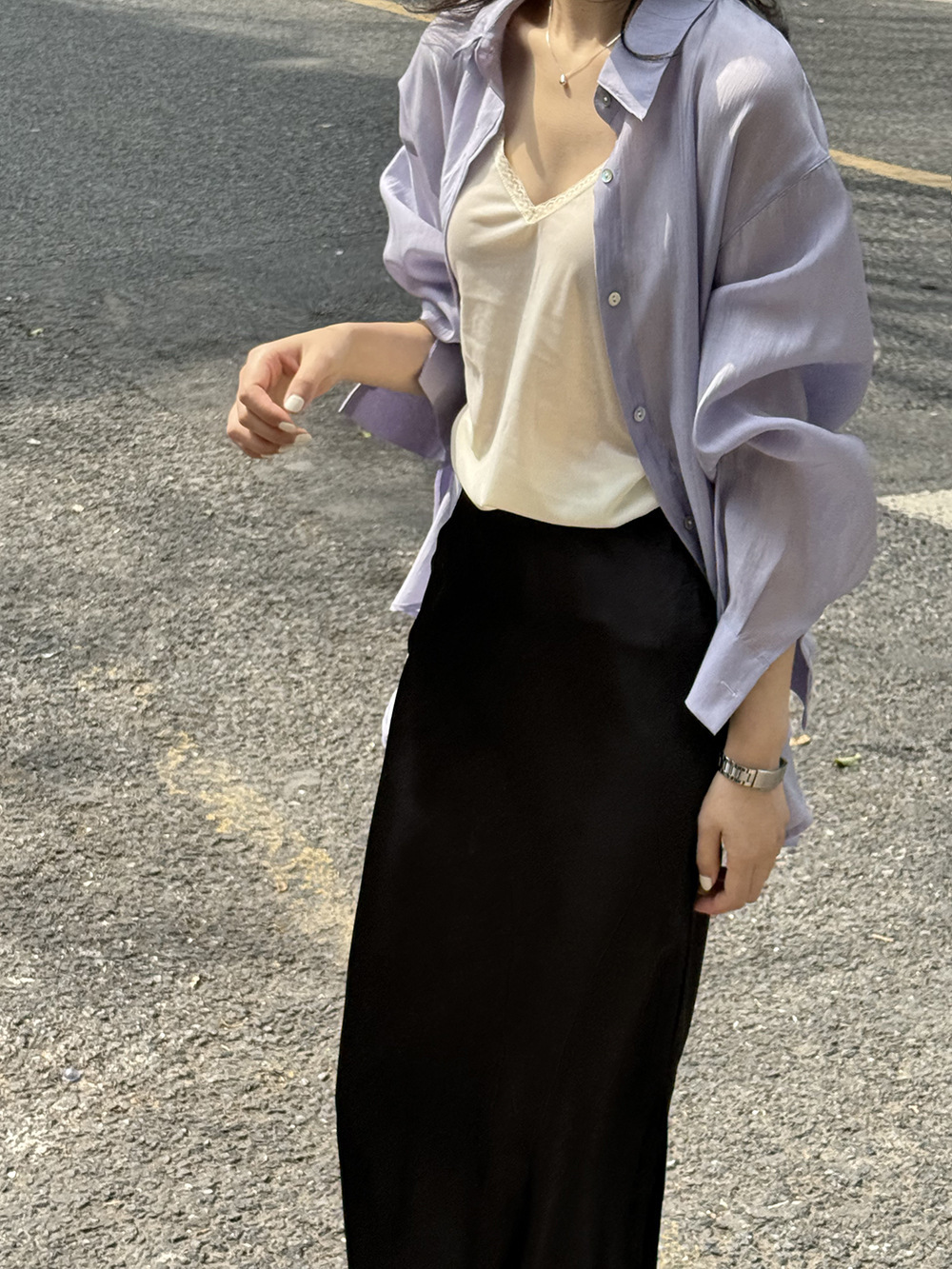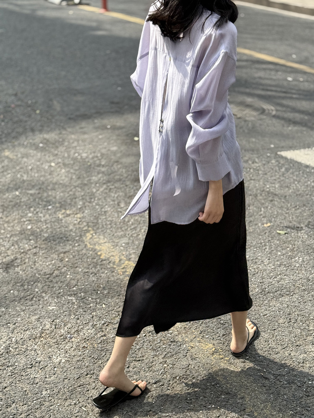 여성용 백 슬릿 텐셀 셔츠 여름 얇은 디자인 틈새 아우터 블라우스 탑 루즈한 자외선 차단 재킷