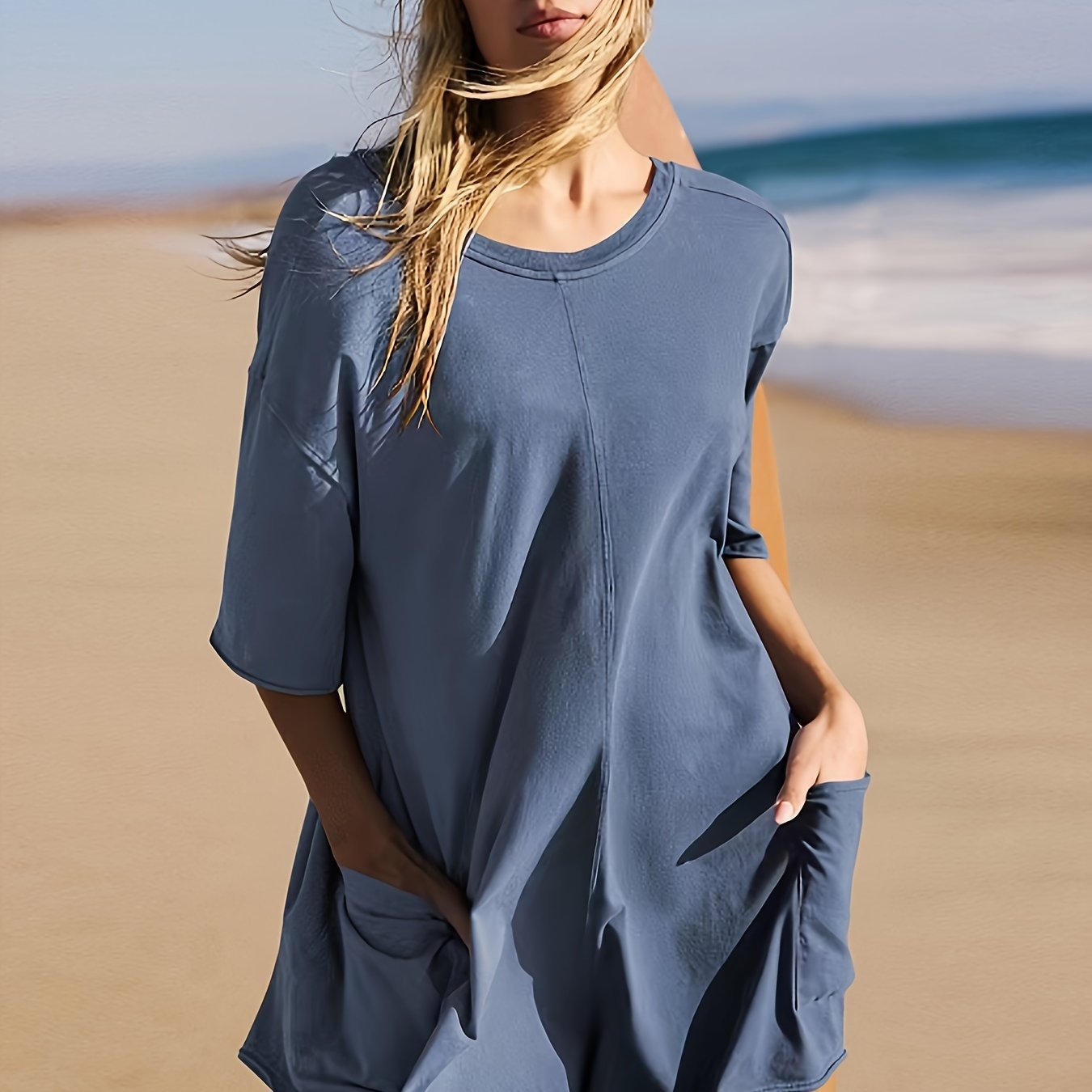 솔리드 컬러 롬퍼 점프수트 캐주얼 하프 슬리브 크루넥 크로스보더스토어 가기