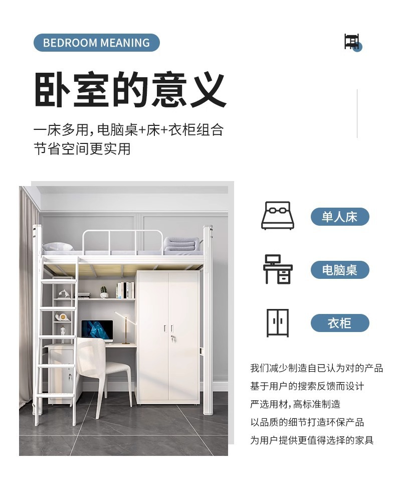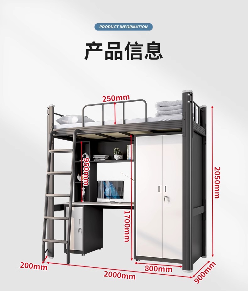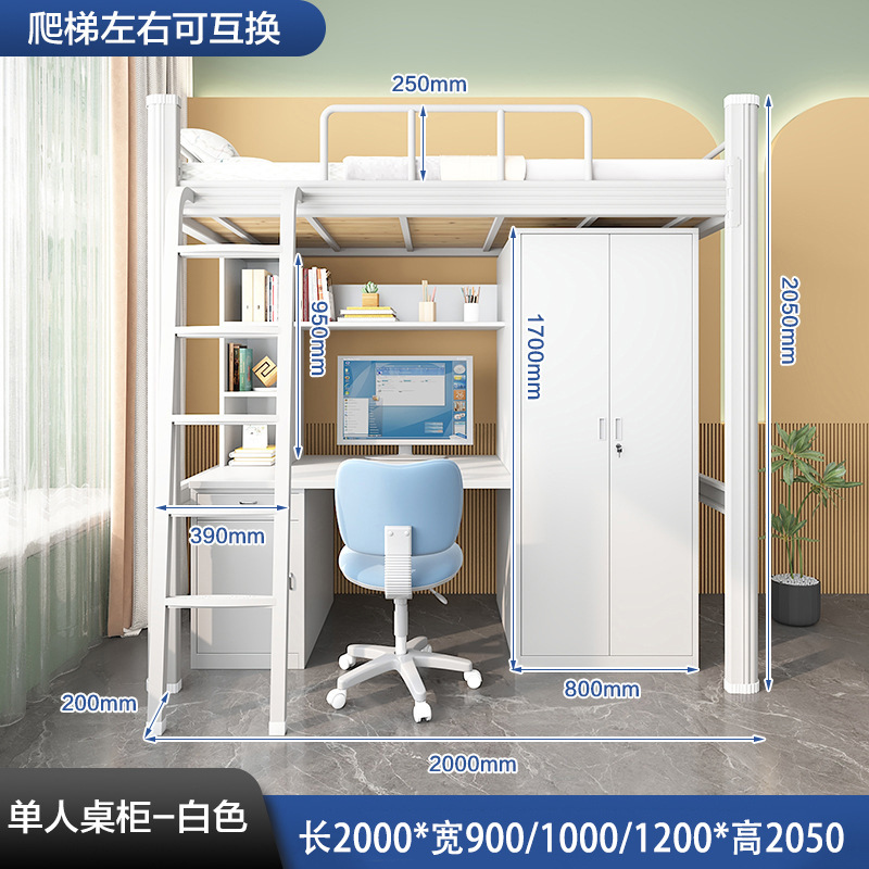 침대와 책상이 결합된 침대, 대학생 기숙사 침대, 직원 아파트 철제 침대, 1.2m 다기능 결합 침대