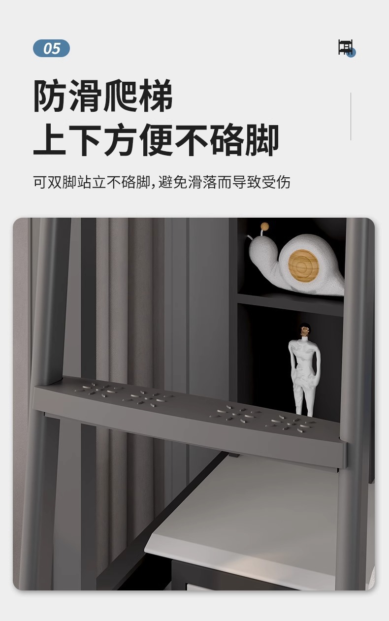 • 흰색 침대 프레임 이중 사다리 - 철제 콤비네이션 캐비닛 [다층 침대 보드 포함]