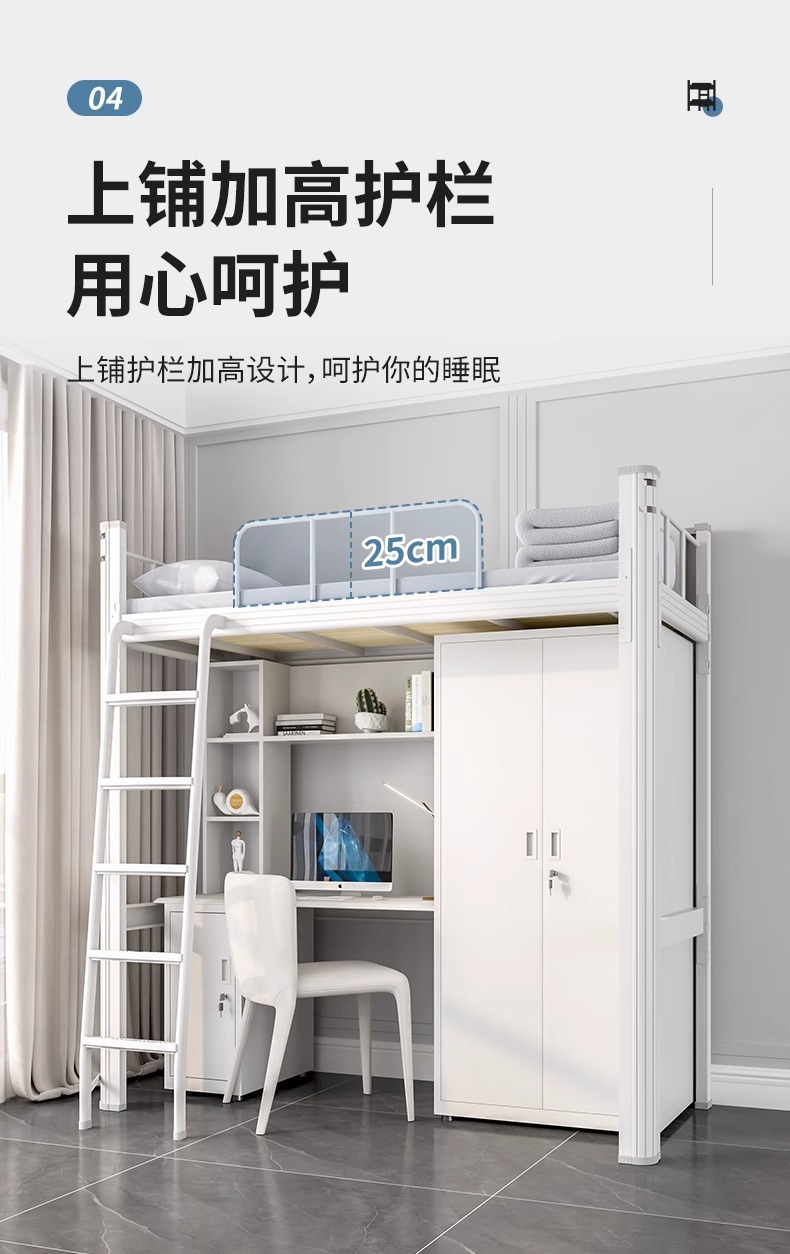 • 흰색 침대 프레임 - 강철 콤비네이션 캐비닛 [다층 침대 보드 포함]