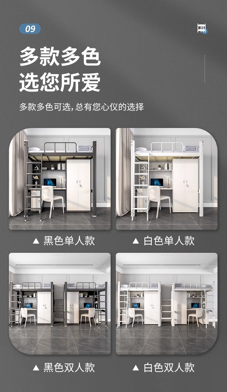 • 블랙 침대 프레임-스틸 콤비네이션 캐비닛 [다층 침대 보드 포함]