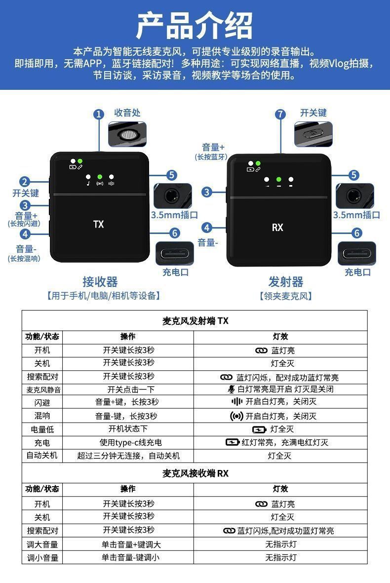 무선 라발리에 마이크, 라이브 방송 및 비디오 촬영, Little Bee 확성기, 소음 감소 카드, 1-2 마이크