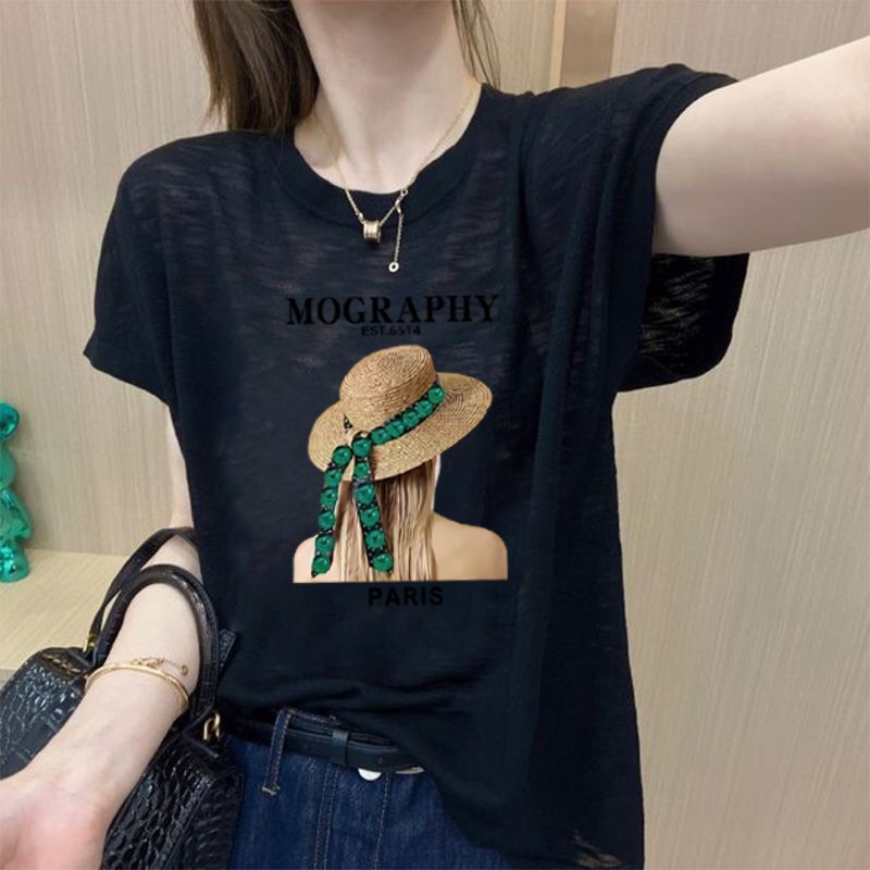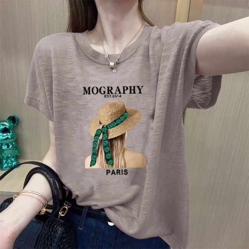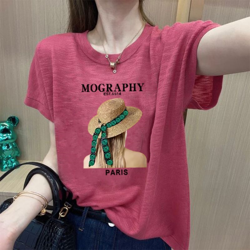 인기 2025 여름 신작 얼음 느낌 여성 반팔 티셔츠 탑 플러스 사이즈 여성 루즈 스몰 티셔츠스토어 가기