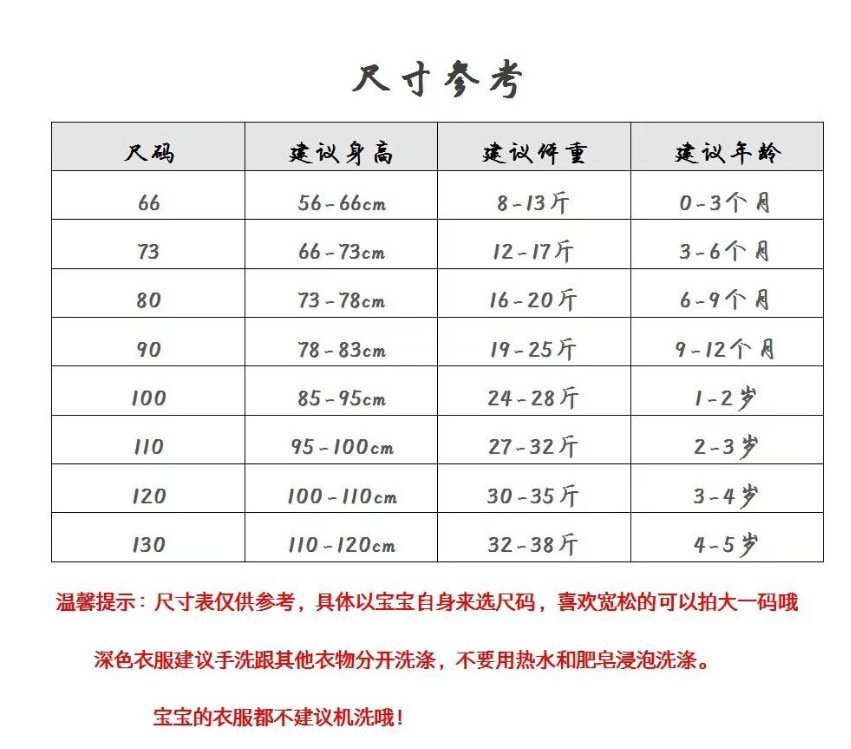【建议年龄】:适合 2Y-7T 宝宝穿,建议年龄仅供参考,请以实际尺寸为准