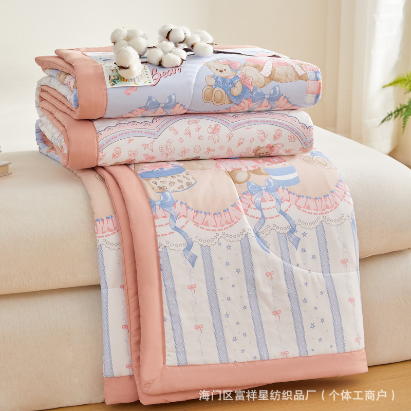 워시 코튼 여름 이불 에어컨 이불 더블 여름 얇은 이불 코어 기계 세탁 가능 어린이 인쇄 여름 이불 선물 이불스토어 가기