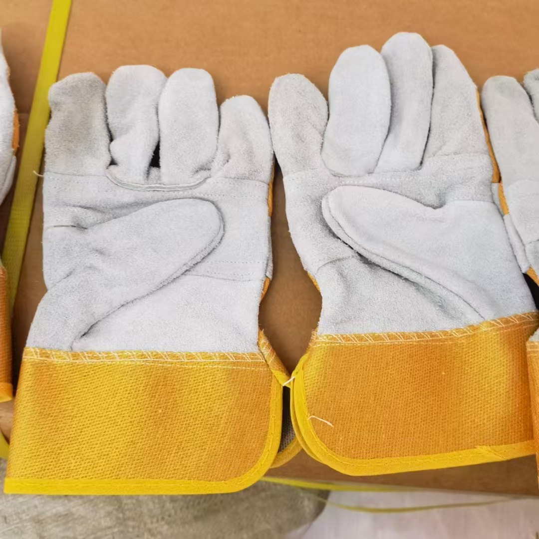 소가죽 용접 장갑, 화상 방지 및 내마모성, 천연 노란색 고무, 전장 용접 장갑, 단열 용접 광부 미끄럼 방지 장갑