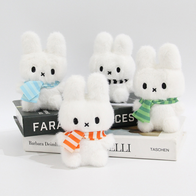 스트라이프 스카프 미피 토끼 봉제 인형 펜던트 가방 인형 열쇠 고리 펜던트 슈퍼 귀여운 미니 귀여운 토끼