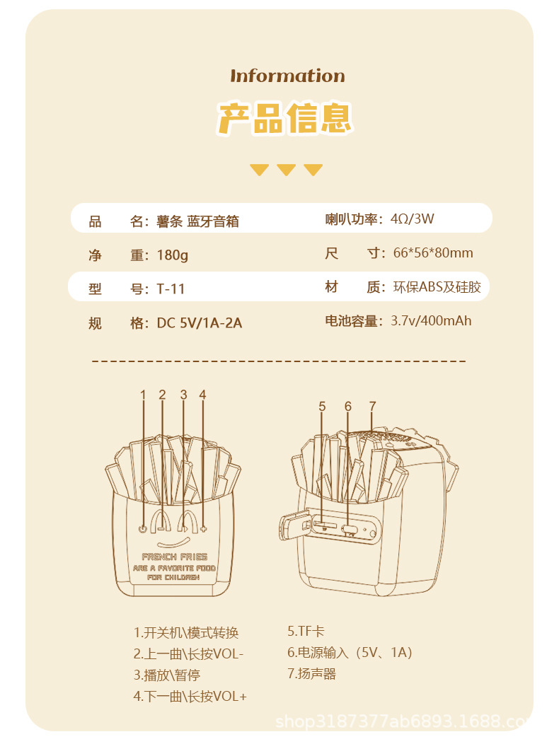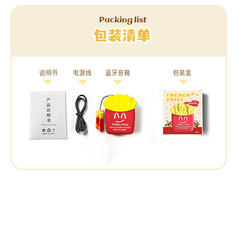어린이 오디오 카와이 귀여운 감자 튀김 블루투스 스피커 미니 휴대용 소형 크리 에이 티브 크로스 보더 생일 선물 팬스토어 가기