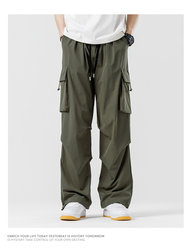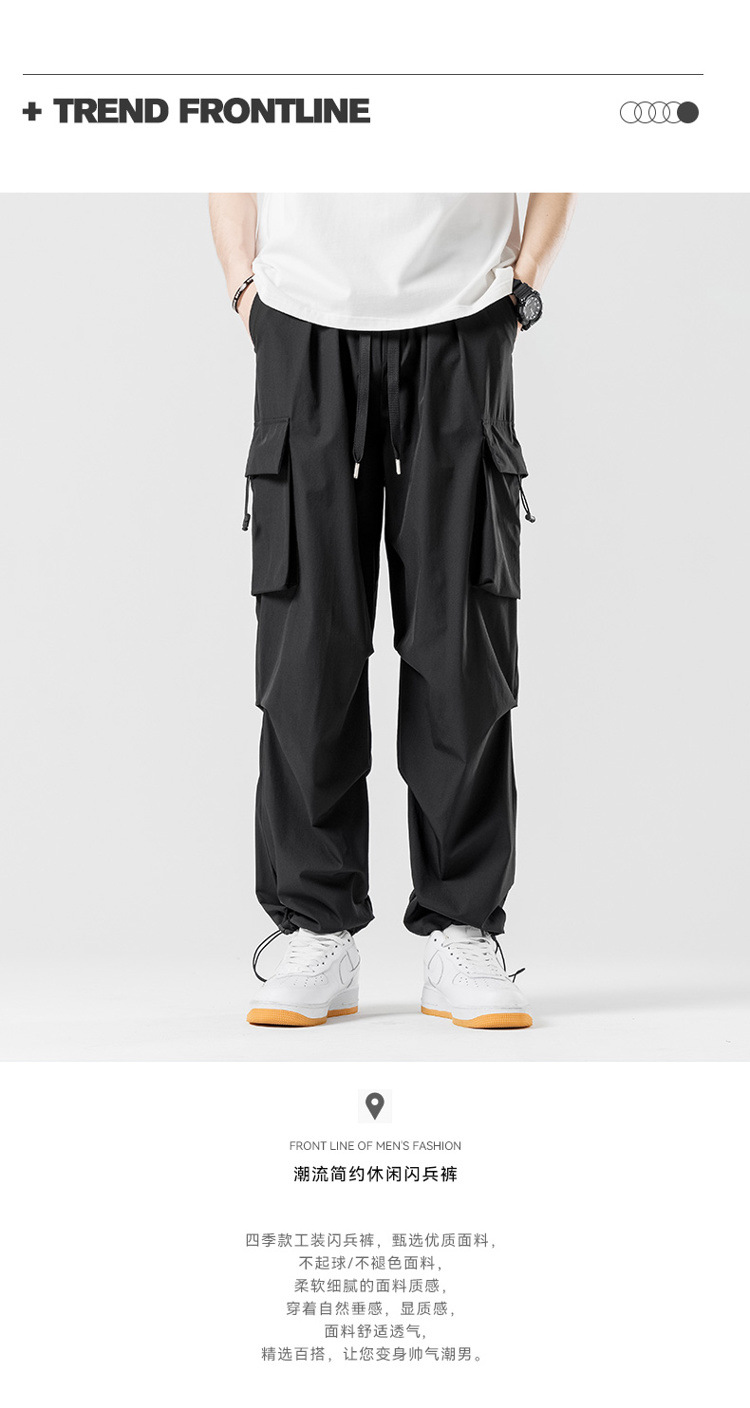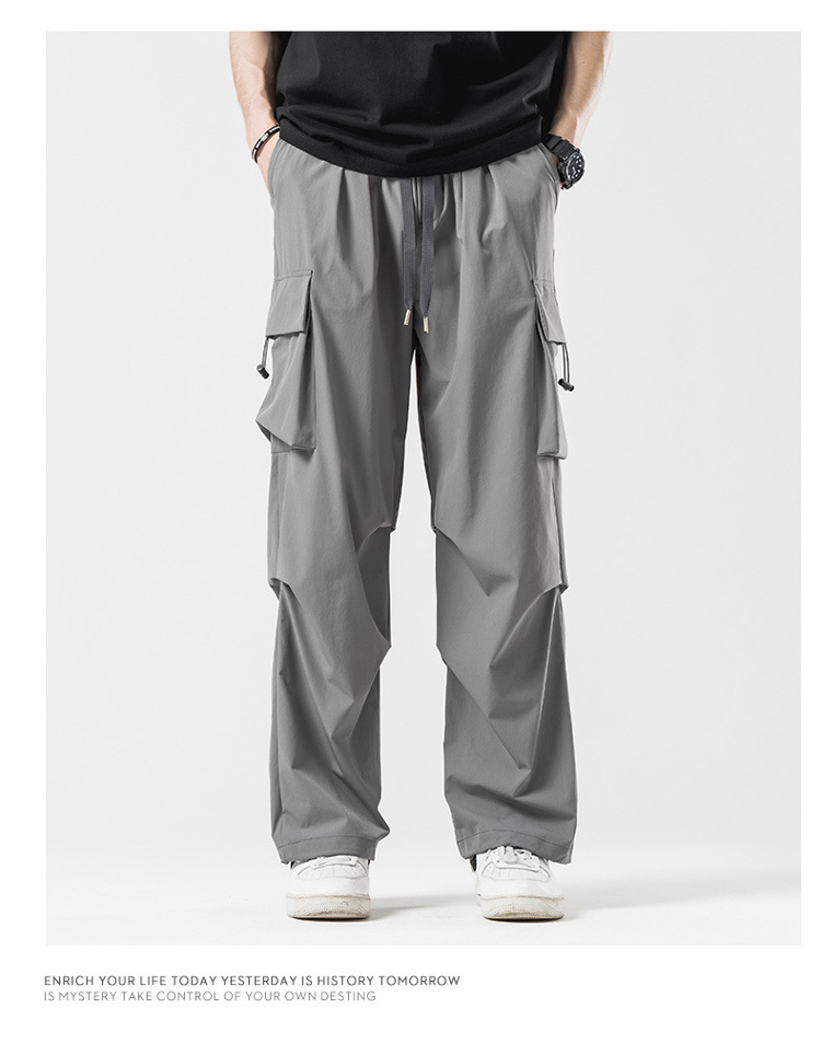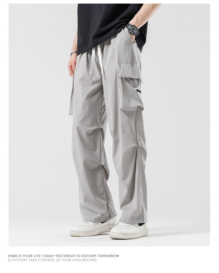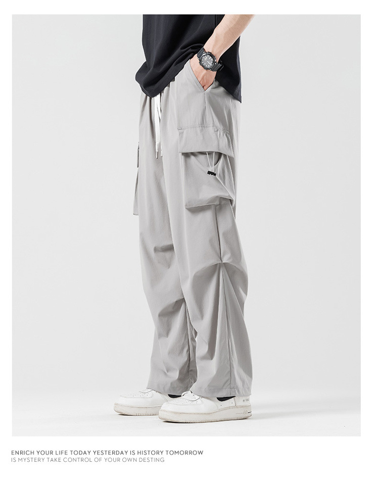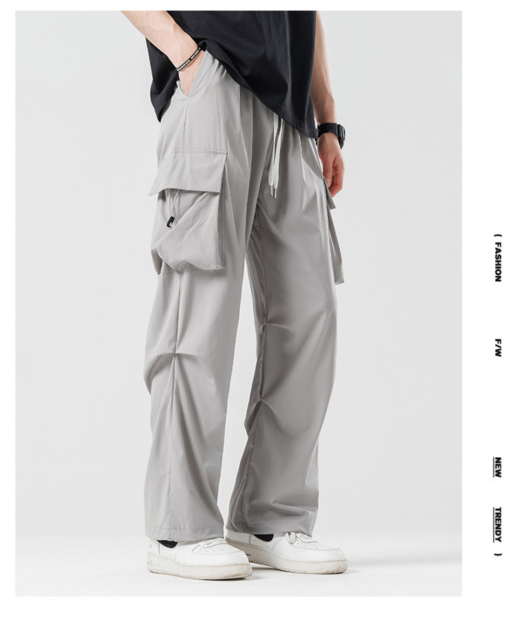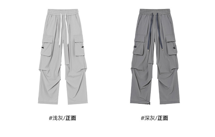 남성용 여름 얇은 미국 공수복 바지, 커플용 아이스 실크 충전 바지, 같은 스타일의 스트레이트 레그 루즈 스포츠 캐주얼 바지스토어 가기