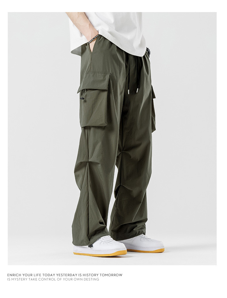 남성용 여름 얇은 미국 공수복 바지, 커플용 아이스 실크 충전 바지, 같은 스타일의 스트레이트 레그 루즈 스포츠 캐주얼 바지