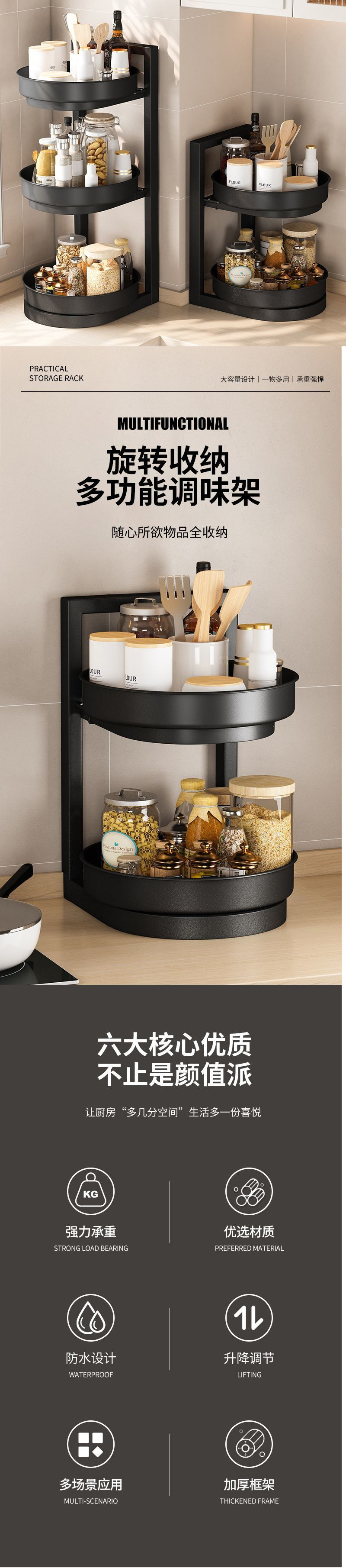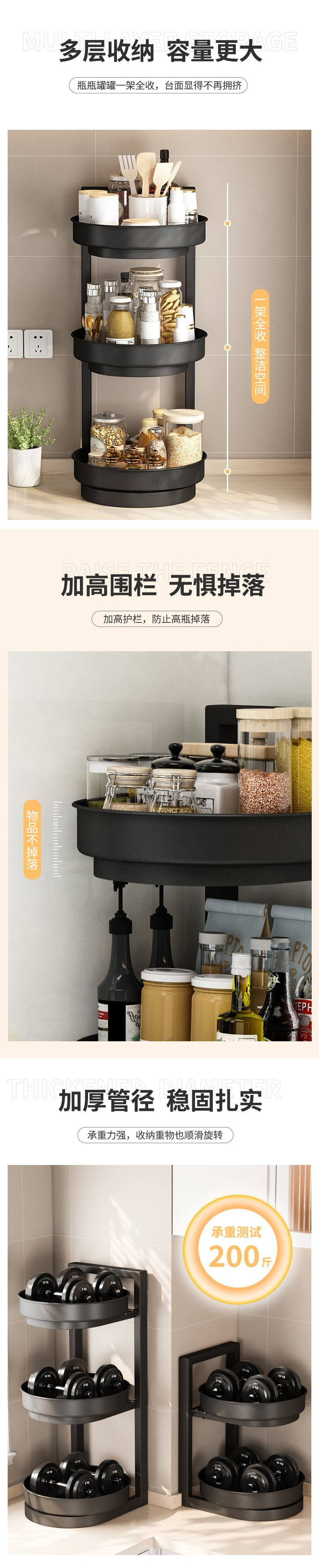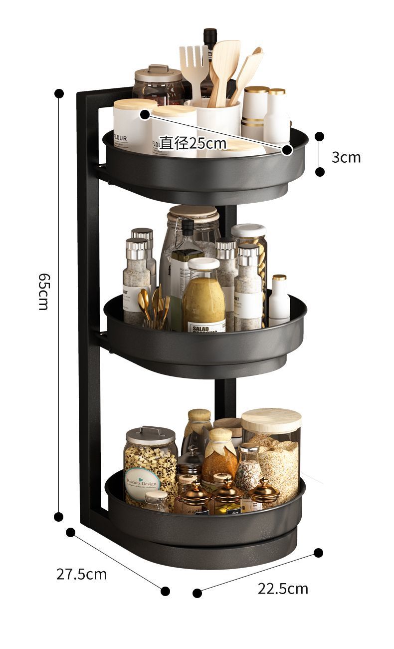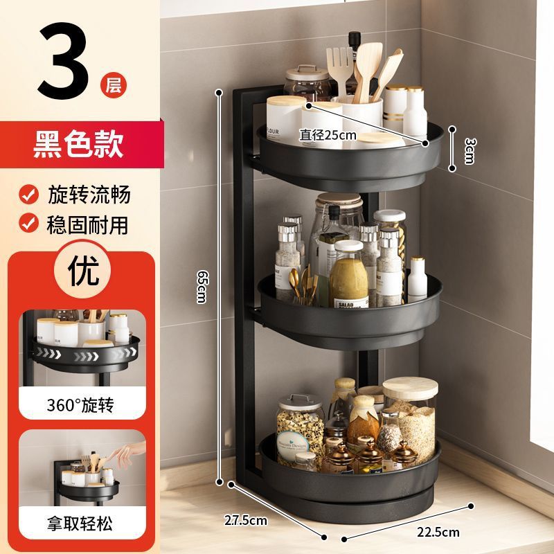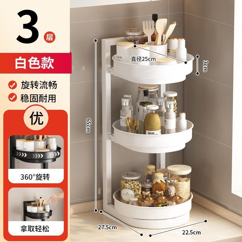 새로운 회전 조미료 랙 주방 보관 랙 리프팅 3 층 오일 소금 소스 식초 조리대 다기능 보관 랙 새로운스토어 가기