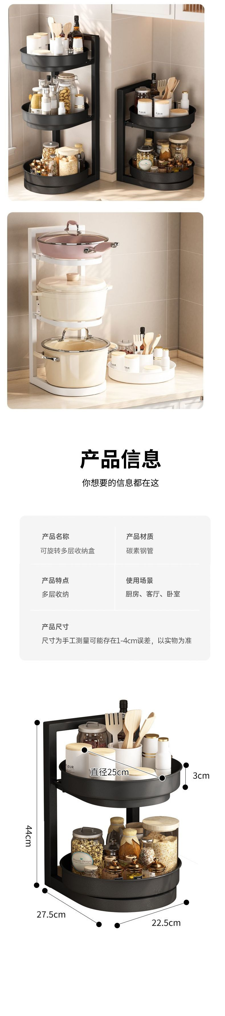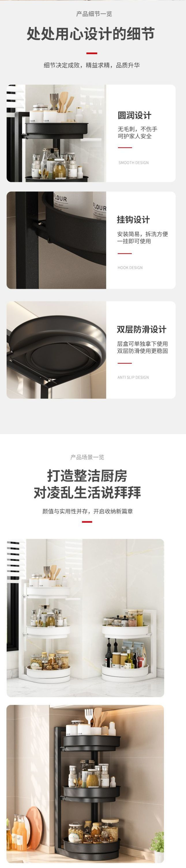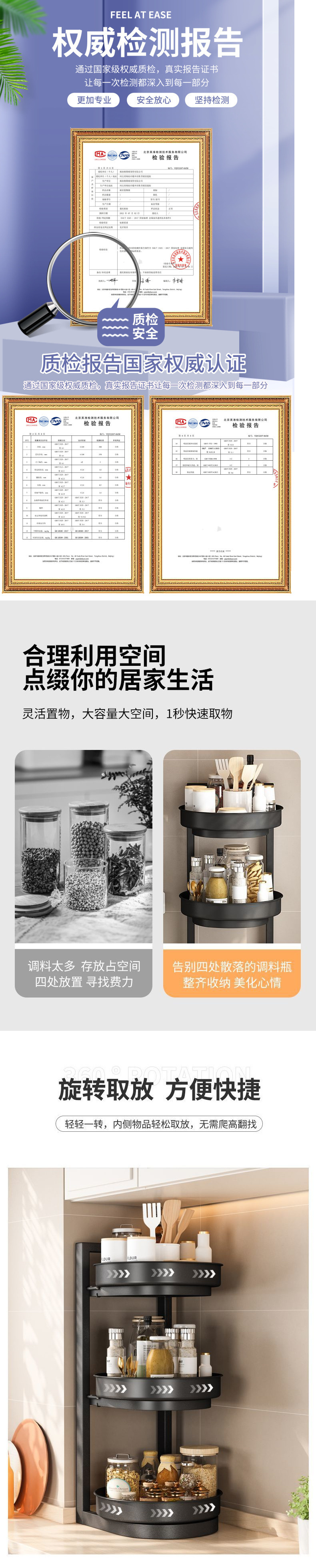 새로운 회전 조미료 랙 주방 보관 랙 리프팅 3 층 오일 소금 소스 식초 조리대 다기능 보관 랙 새로운스토어 가기
