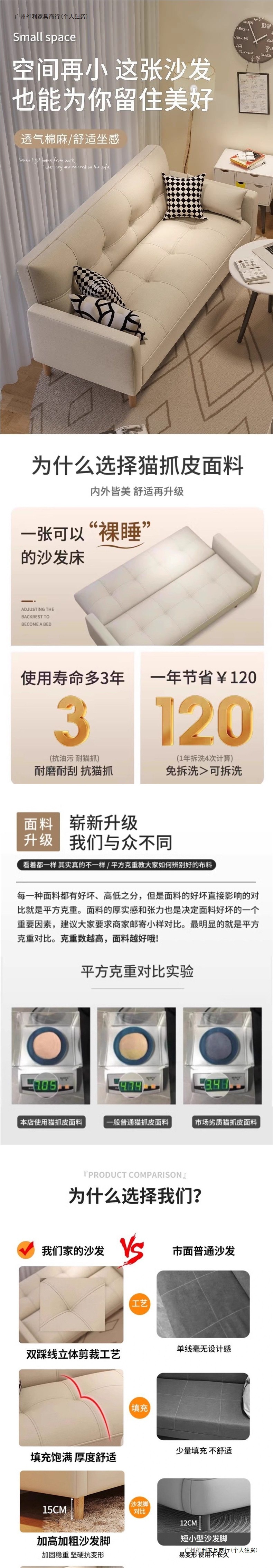 패브릭 소파, 심플하고 모던한 소형 소파 베드, 거실 임대실, 다기능 접이식 소파 베드, 이중 용도스토어 가기