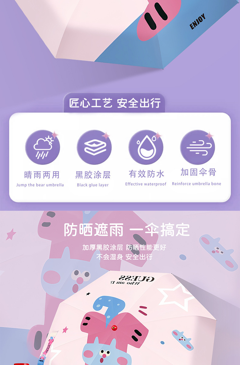 귀여운 빨간 부츠 수동 우산, 비가 오나 눈이 오나, 자외선 차단 및 자외선 차단, 어린이 우산, 비닐 파라솔, 태양 우산