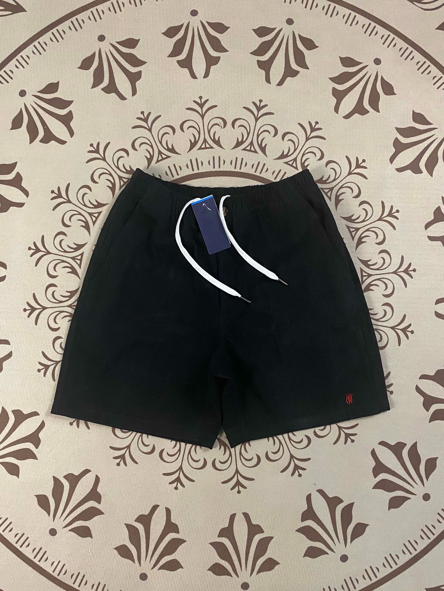 RL 러프 포니 로고 여름 순수 코튼 캐주얼 반바지 남성용 느슨한 5 점 통기성 커플 지퍼 탄성 바지