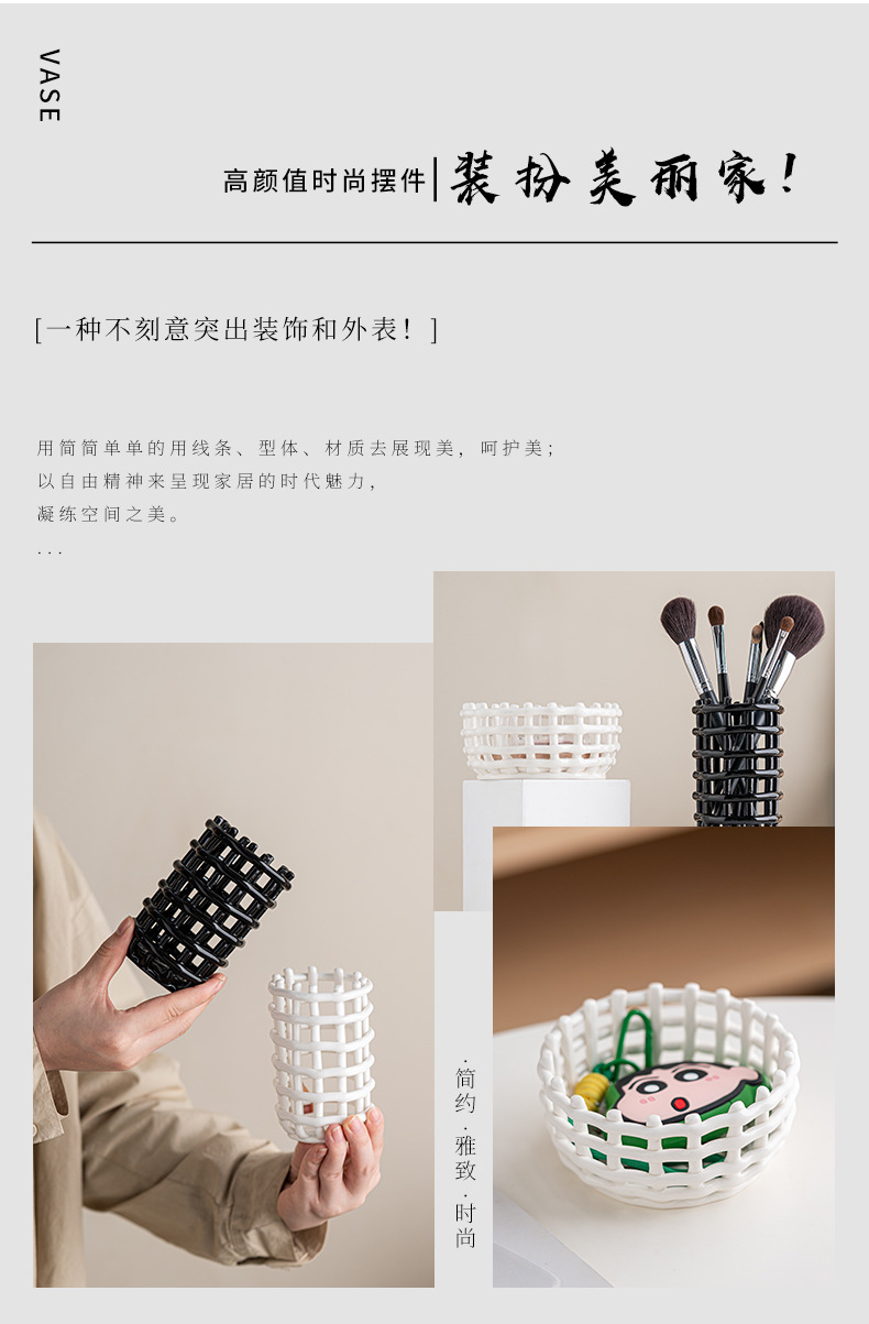 현대 모조 수공예품 세라믹 메이크업 튜브 펜 홀더 데스크탑 스토리지 장식품 홈 소프트 장식품 도매