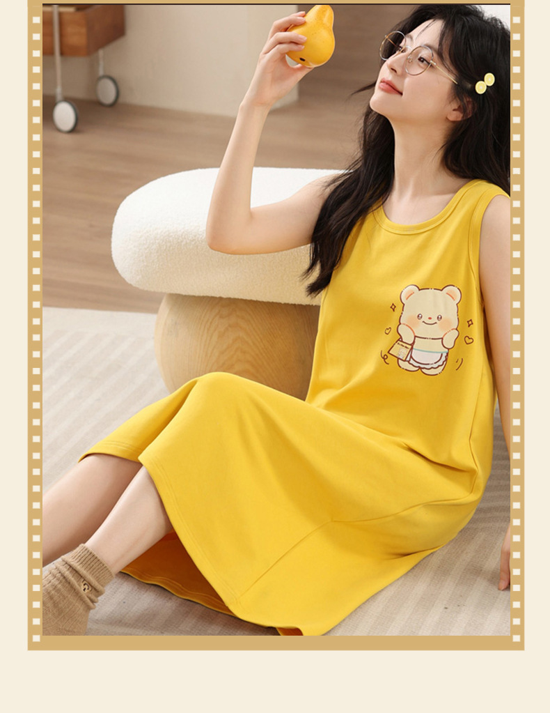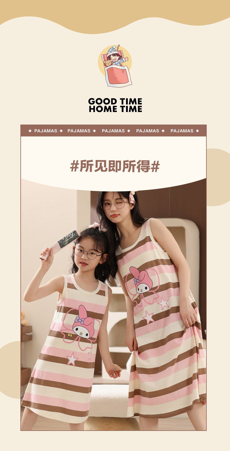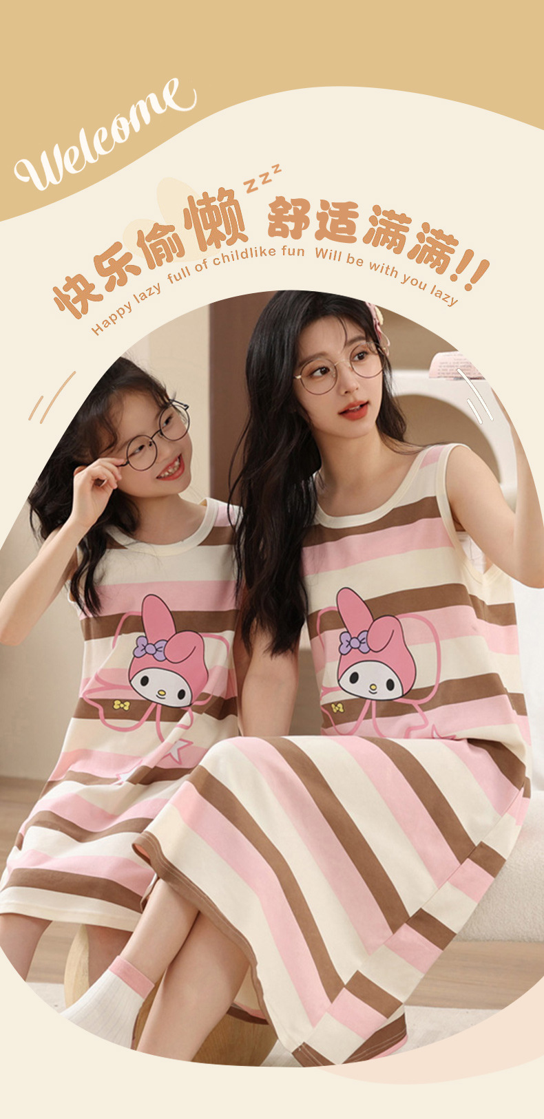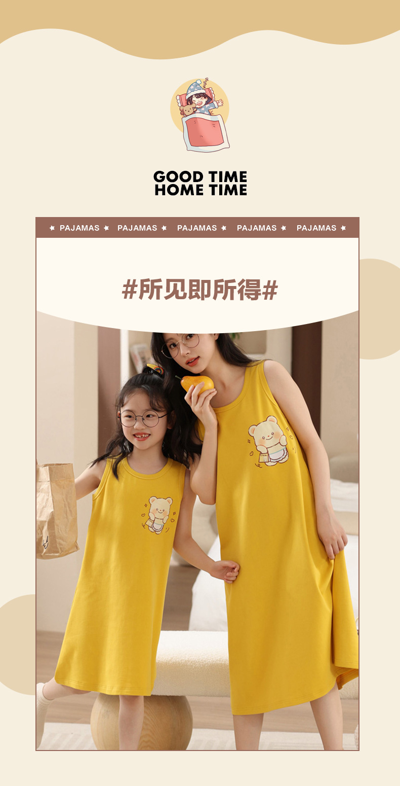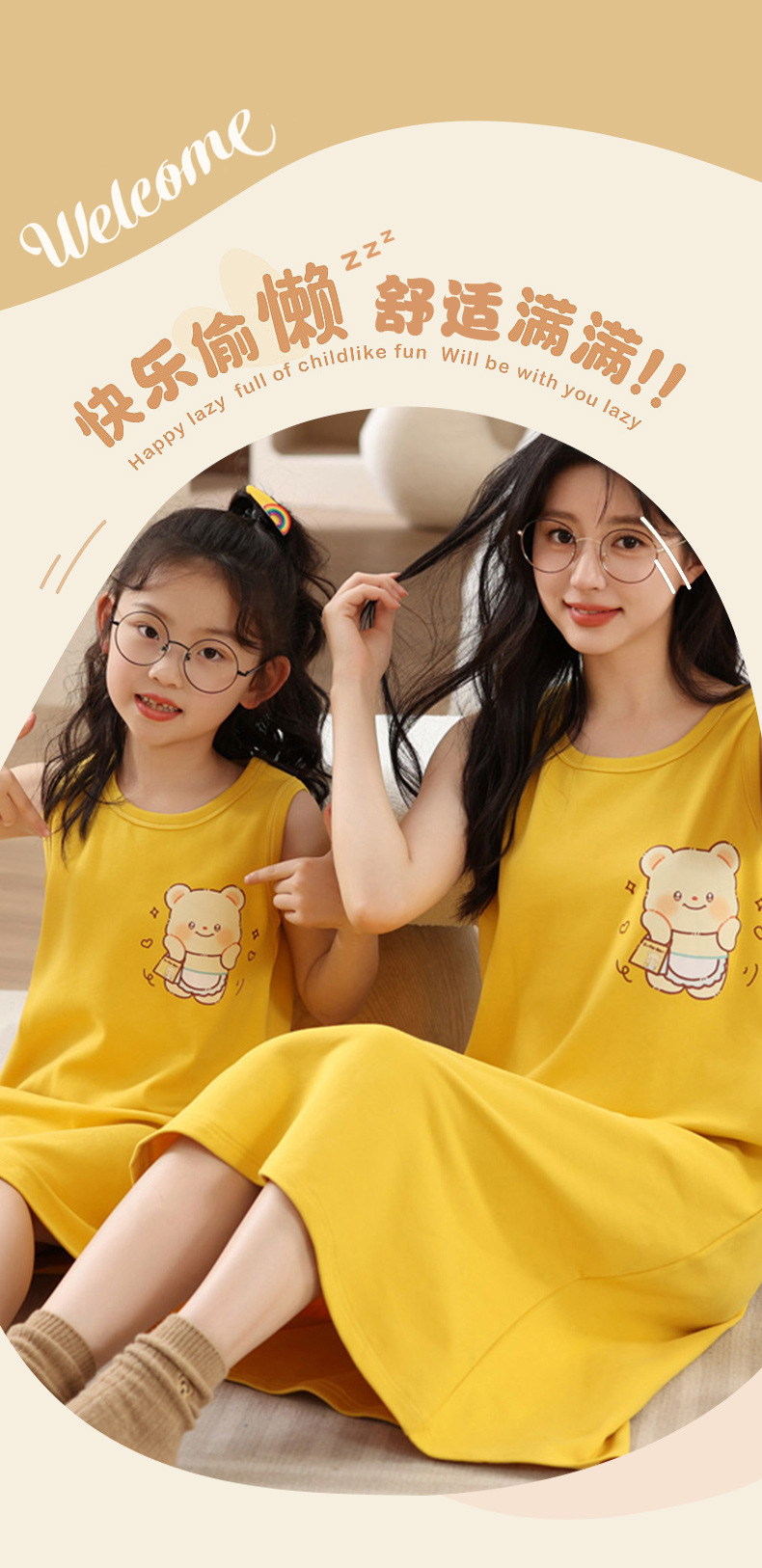 어머니와 딸 조끼 민소매 만화 여름 새로운 스타일 코튼 귀여운 원피스 잠옷 드레스 성인 가슴 패드 홈 드레스스토어 가기
