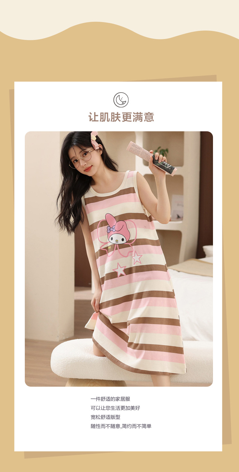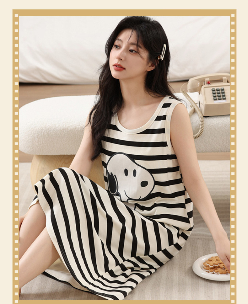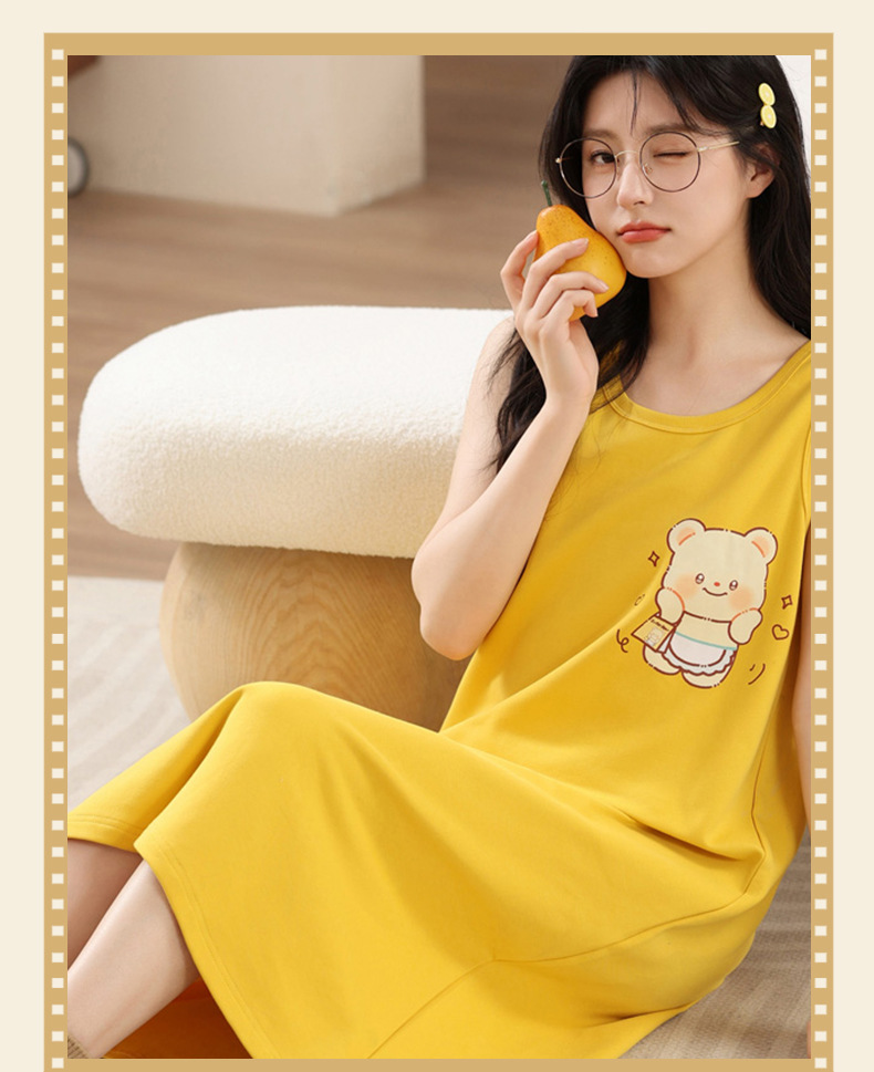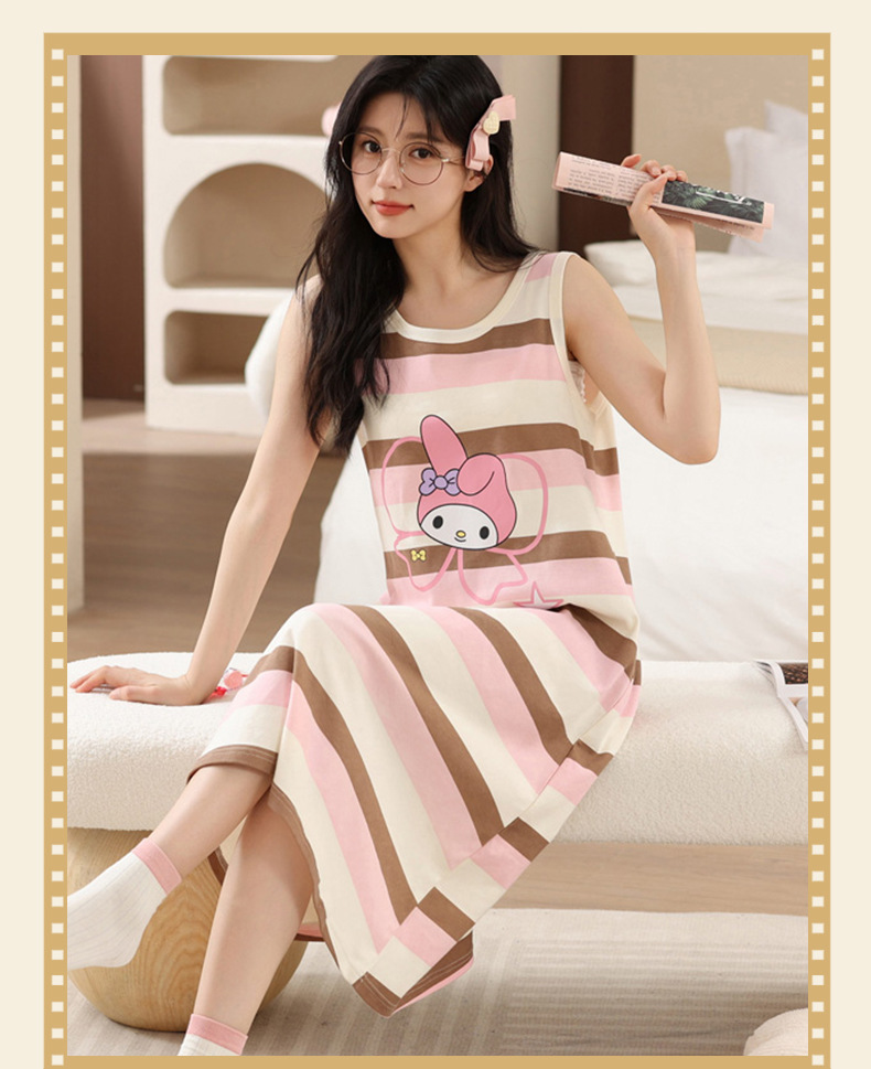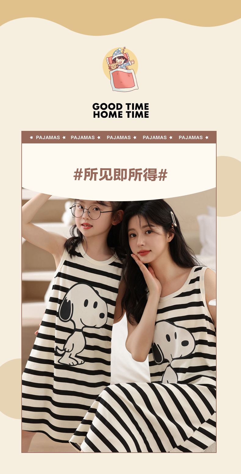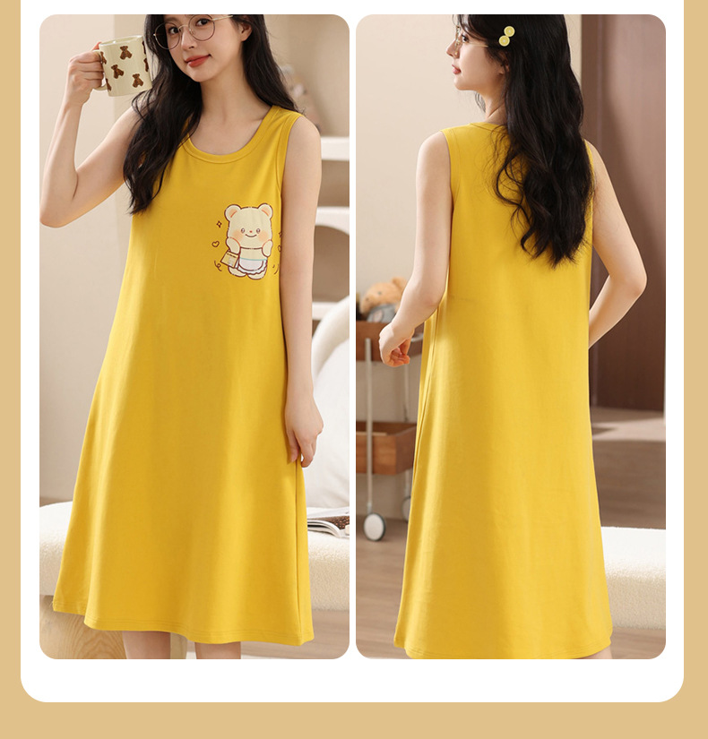 어머니와 딸 조끼 민소매 만화 여름 새로운 스타일 코튼 귀여운 원피스 잠옷 드레스 성인 가슴 패드 홈 드레스스토어 가기