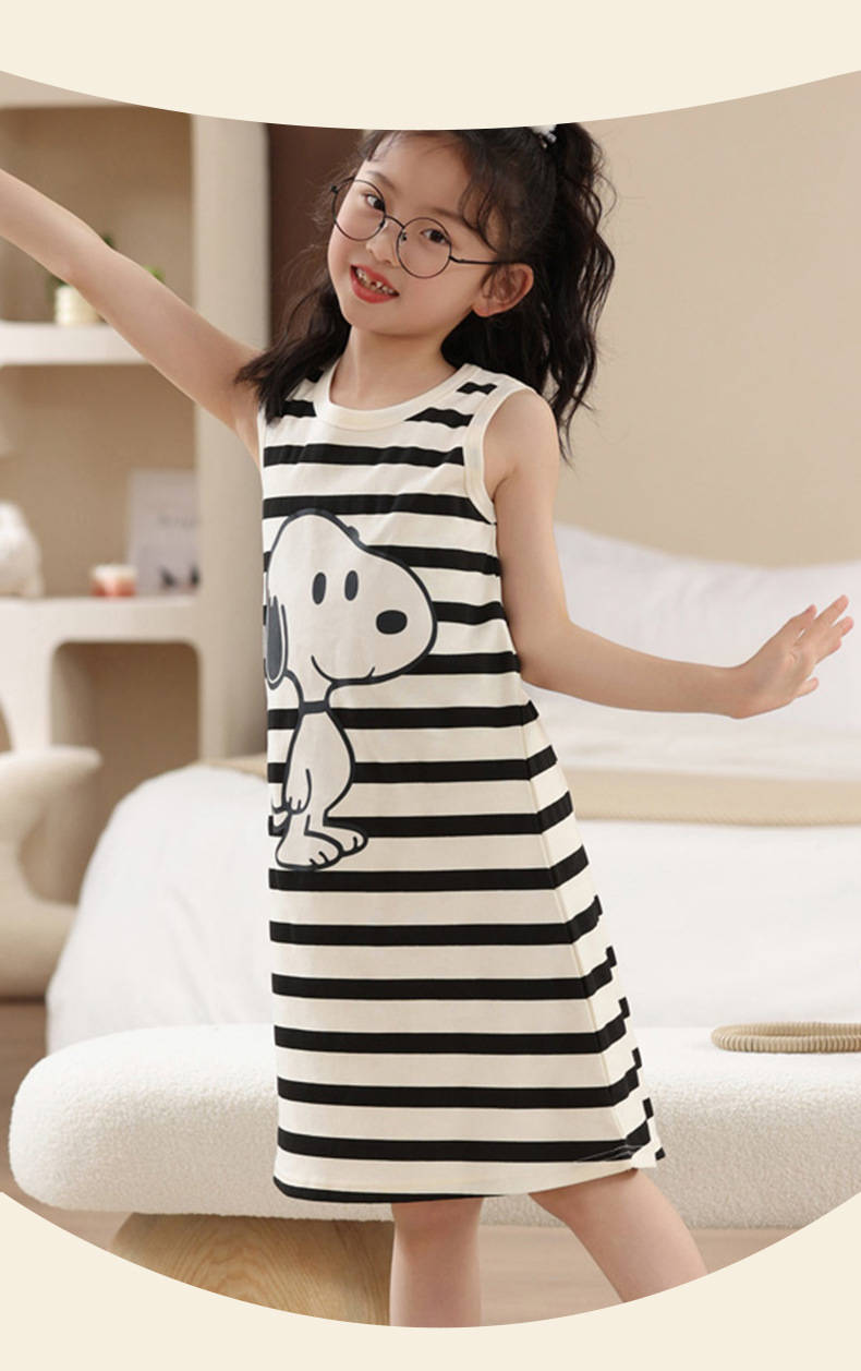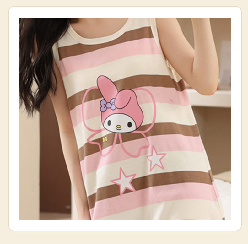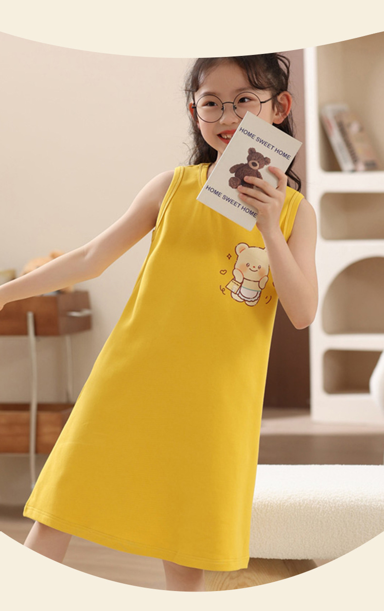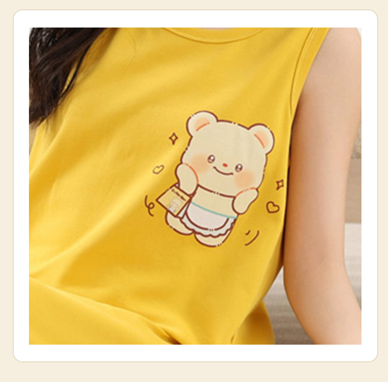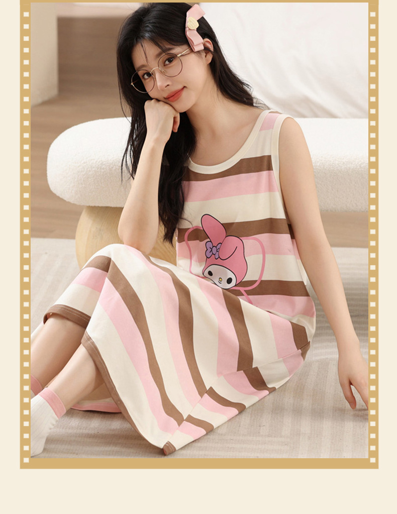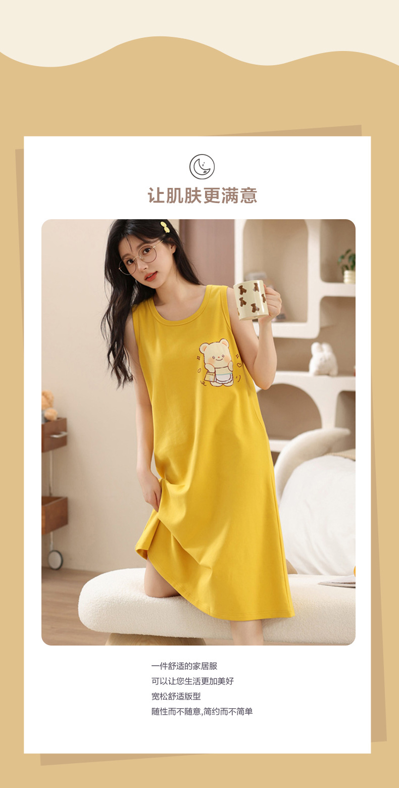 어머니와 딸 조끼 민소매 만화 여름 새로운 스타일 코튼 귀여운 원피스 잠옷 드레스 성인 가슴 패드 홈 드레스스토어 가기