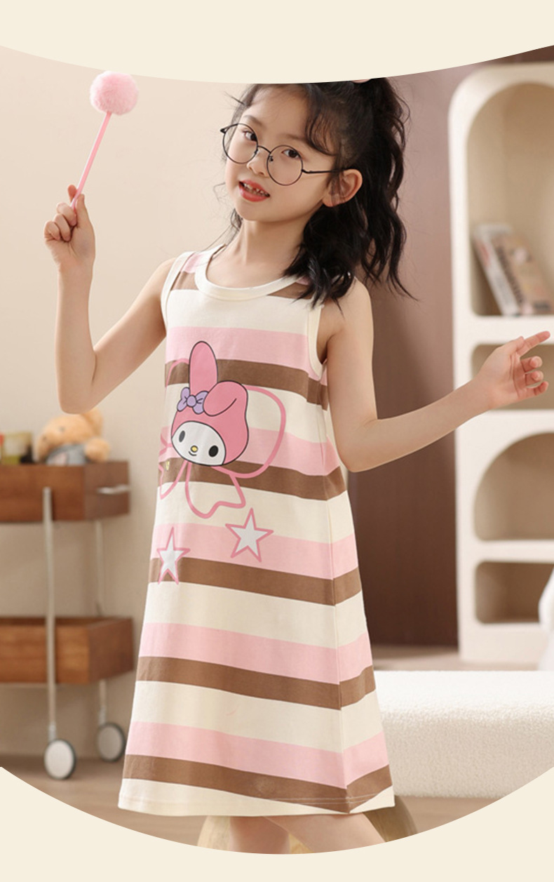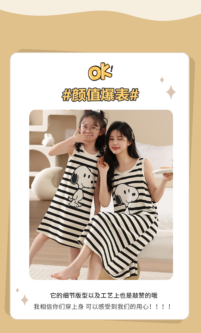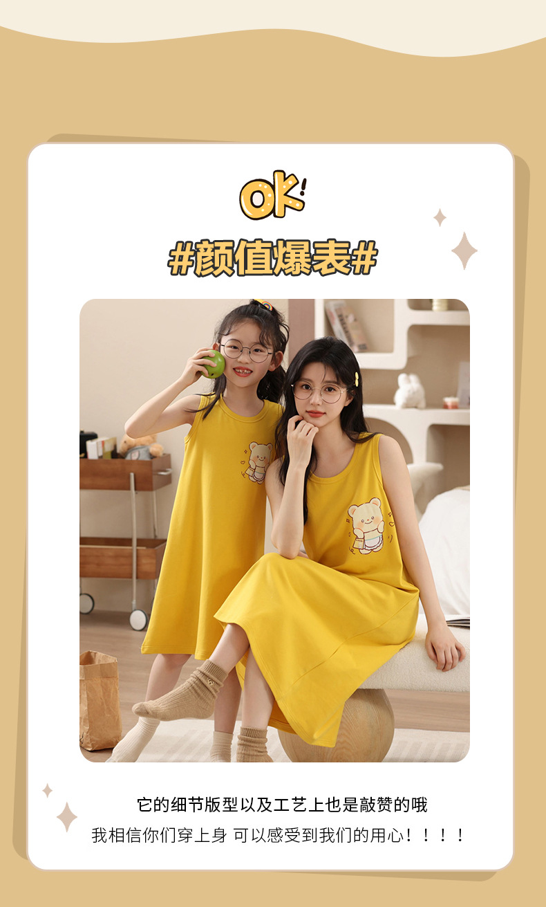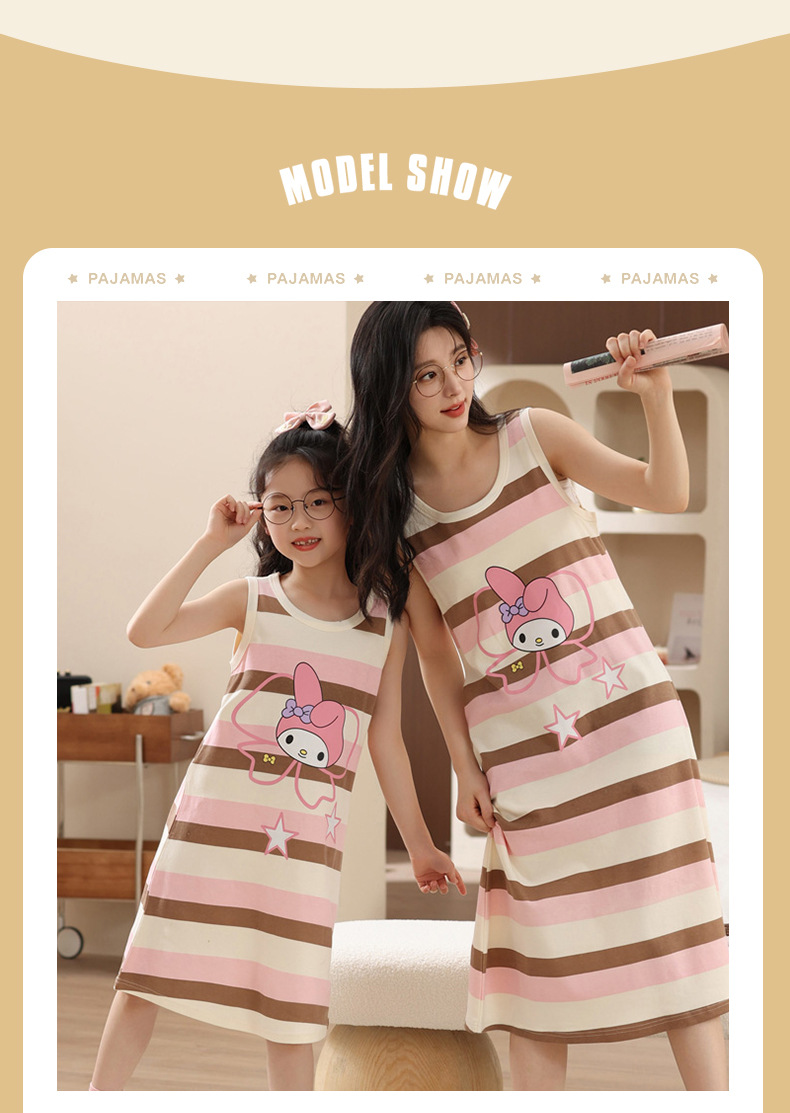 어머니와 딸 조끼 민소매 만화 여름 새로운 스타일 코튼 귀여운 원피스 잠옷 드레스 성인 가슴 패드 홈 드레스