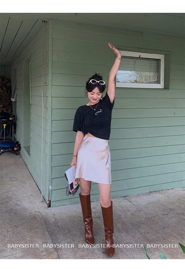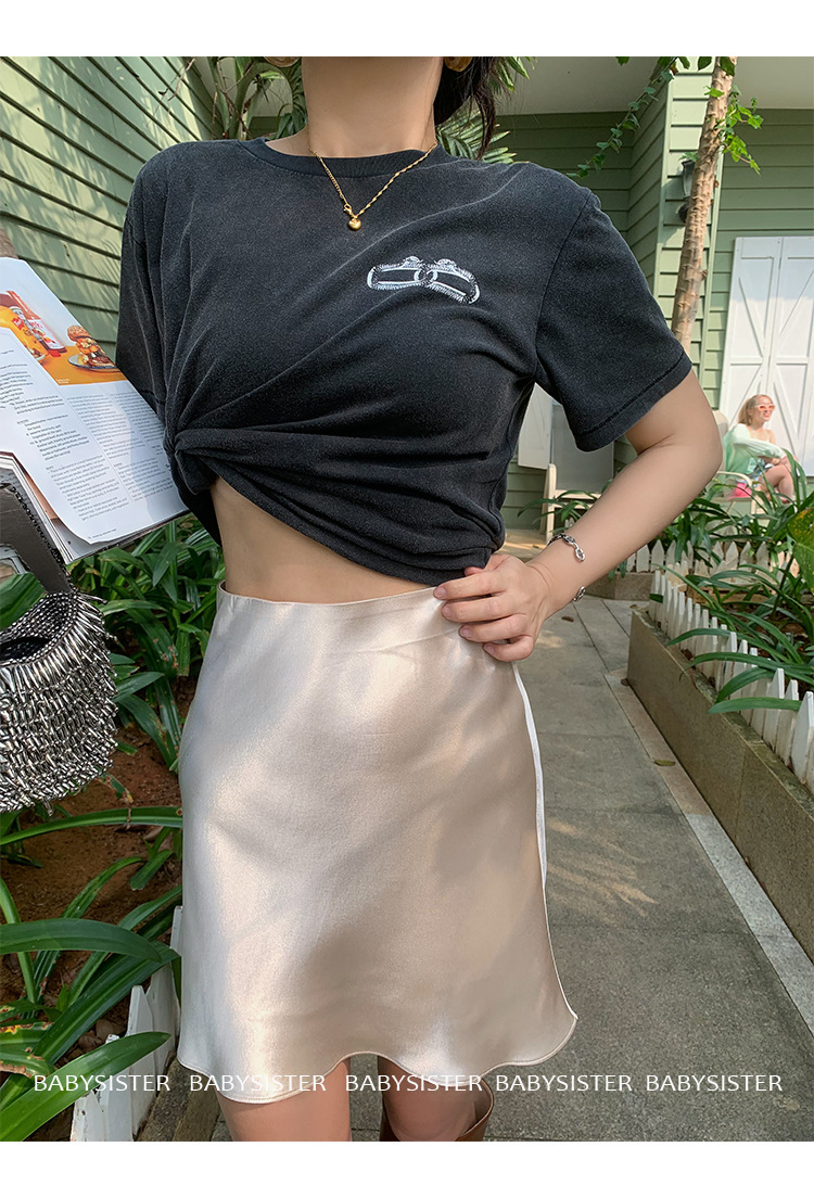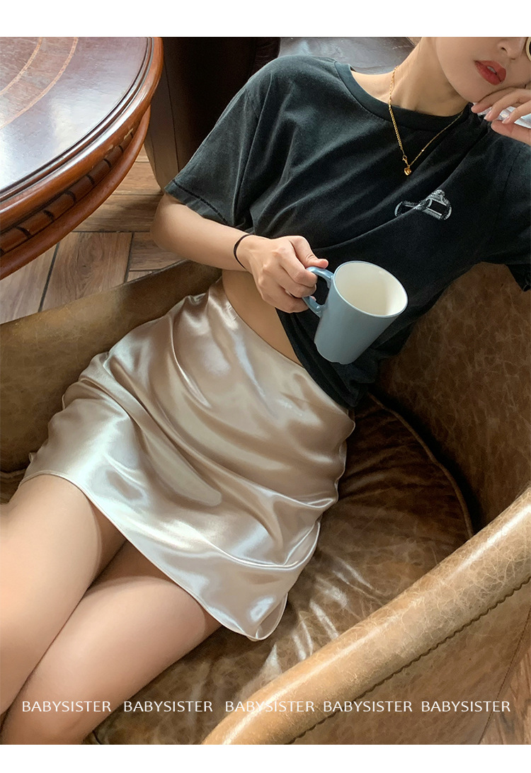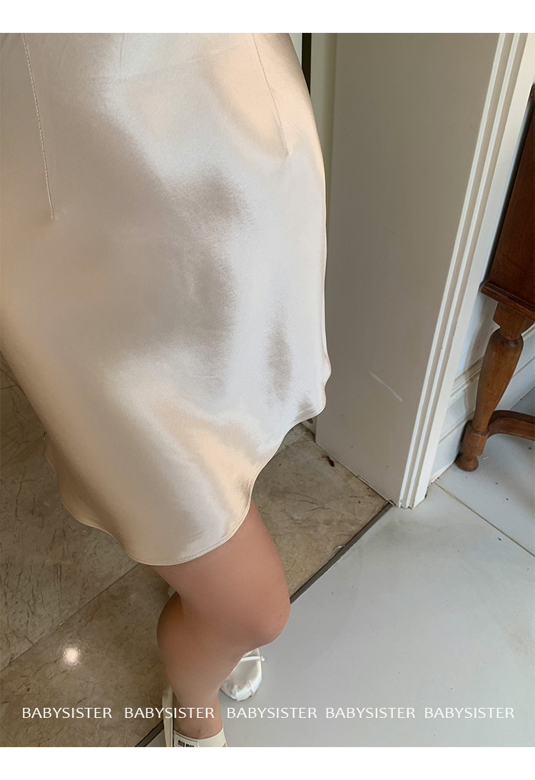 통기성이 좋고 슬림한 피쉬테일 진주빛 삼아세테이트 새틴 힙 스커트 여름 신상 하이웨이스트 A라인 스커트스토어 가기